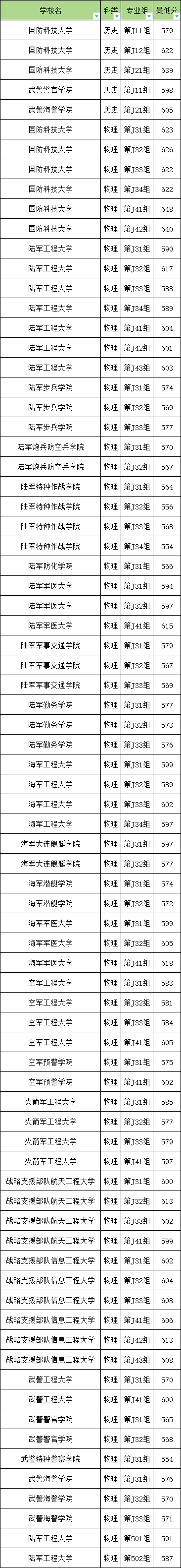 而军校在江西历史类的最低录取分数线则是579分,因此江西历史类考生最低579分可以上军校。