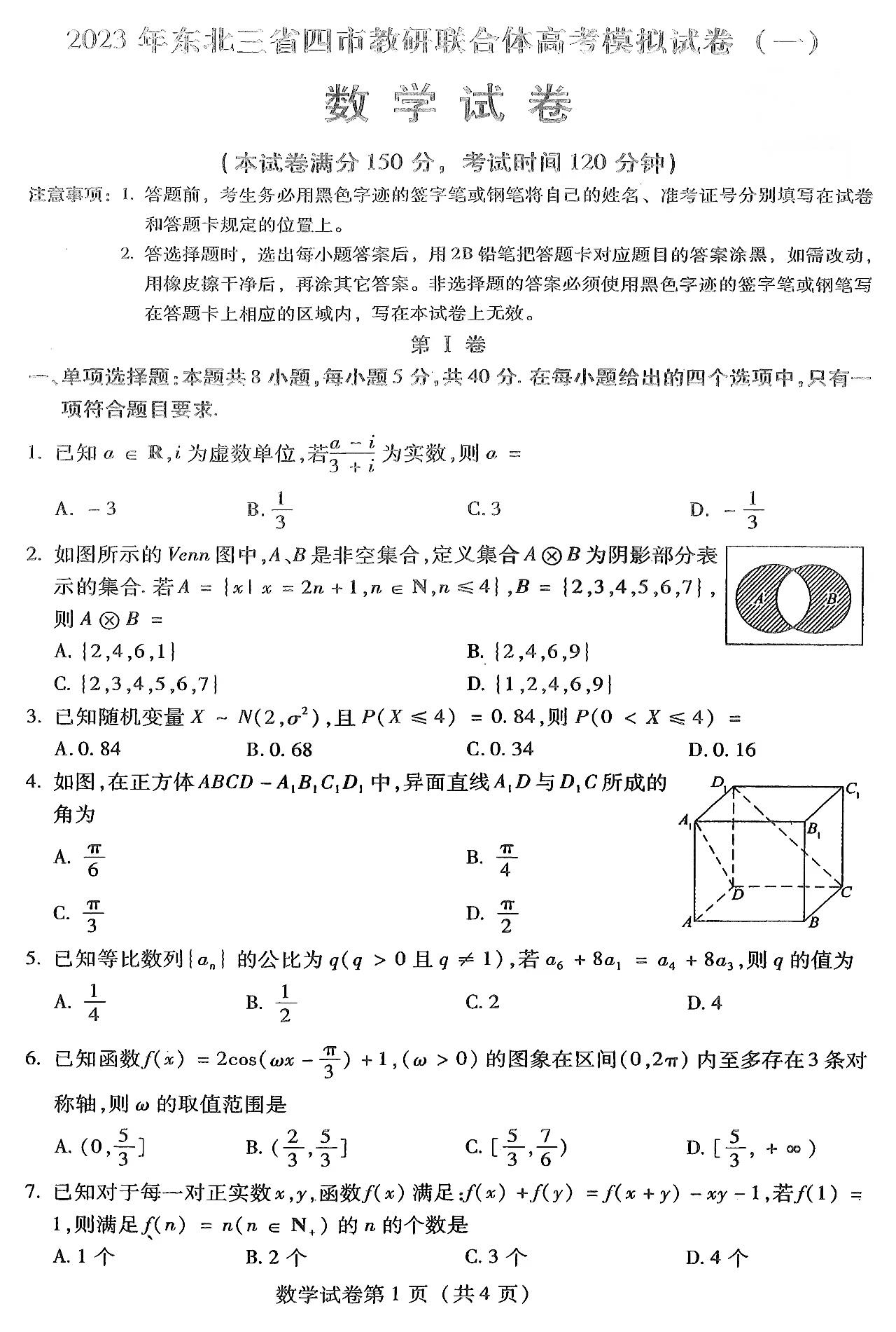 2023东北三省四市一模将于2023年4月11日进行考试,考试结束后本文将更新2023东北三省四市一模数学答案及试卷,下文为小编收集整理的2023东北三省四市一模数学试题及参考答案,一起来看看2023东北三省四市一模数学试卷答案吧!