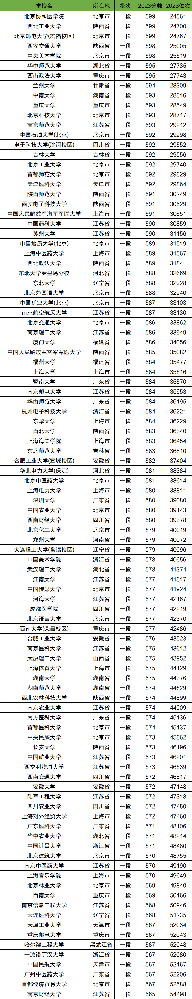 以下为2023年在山东省550到600分的全国大学名单(山东省以外)。