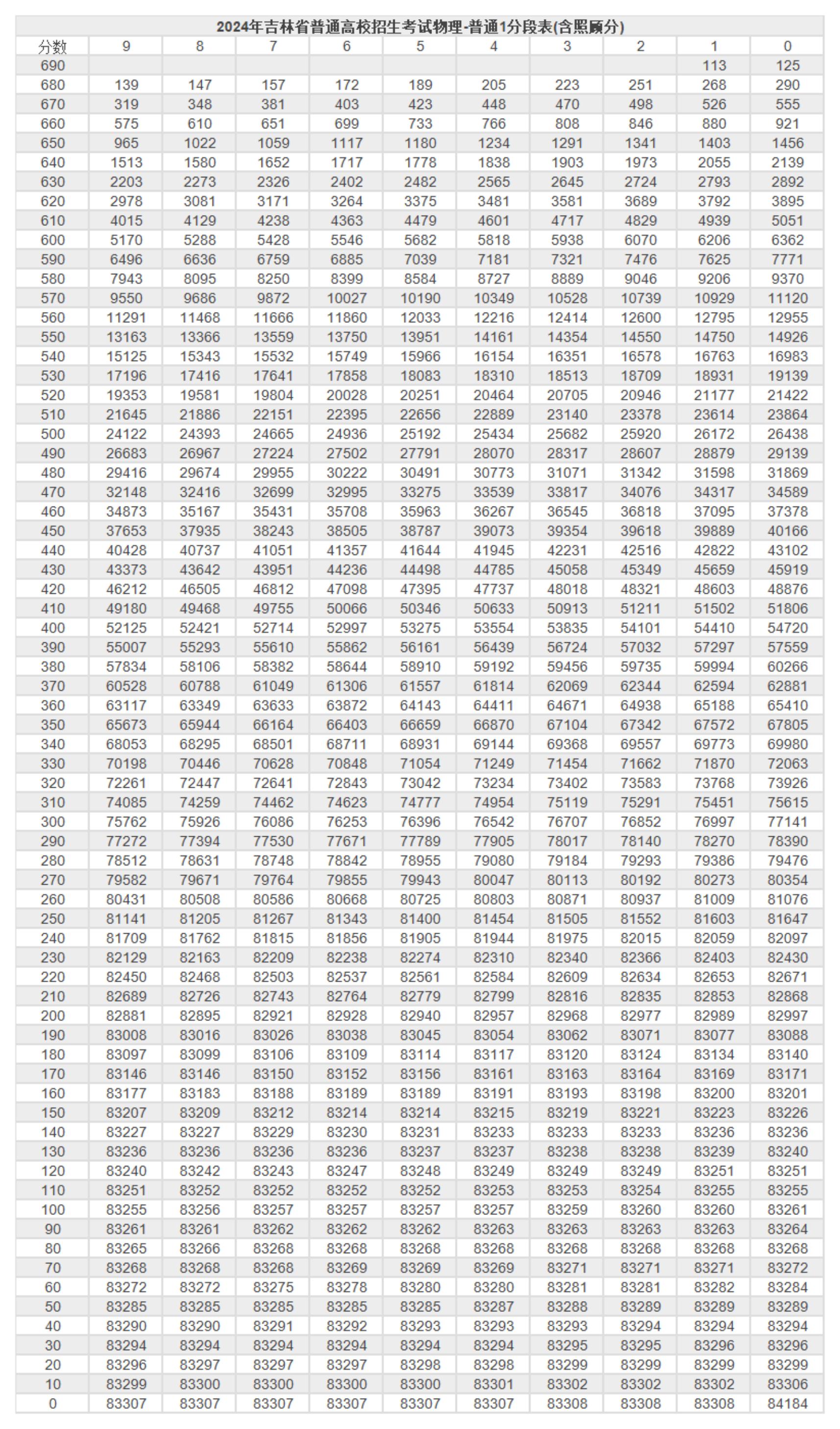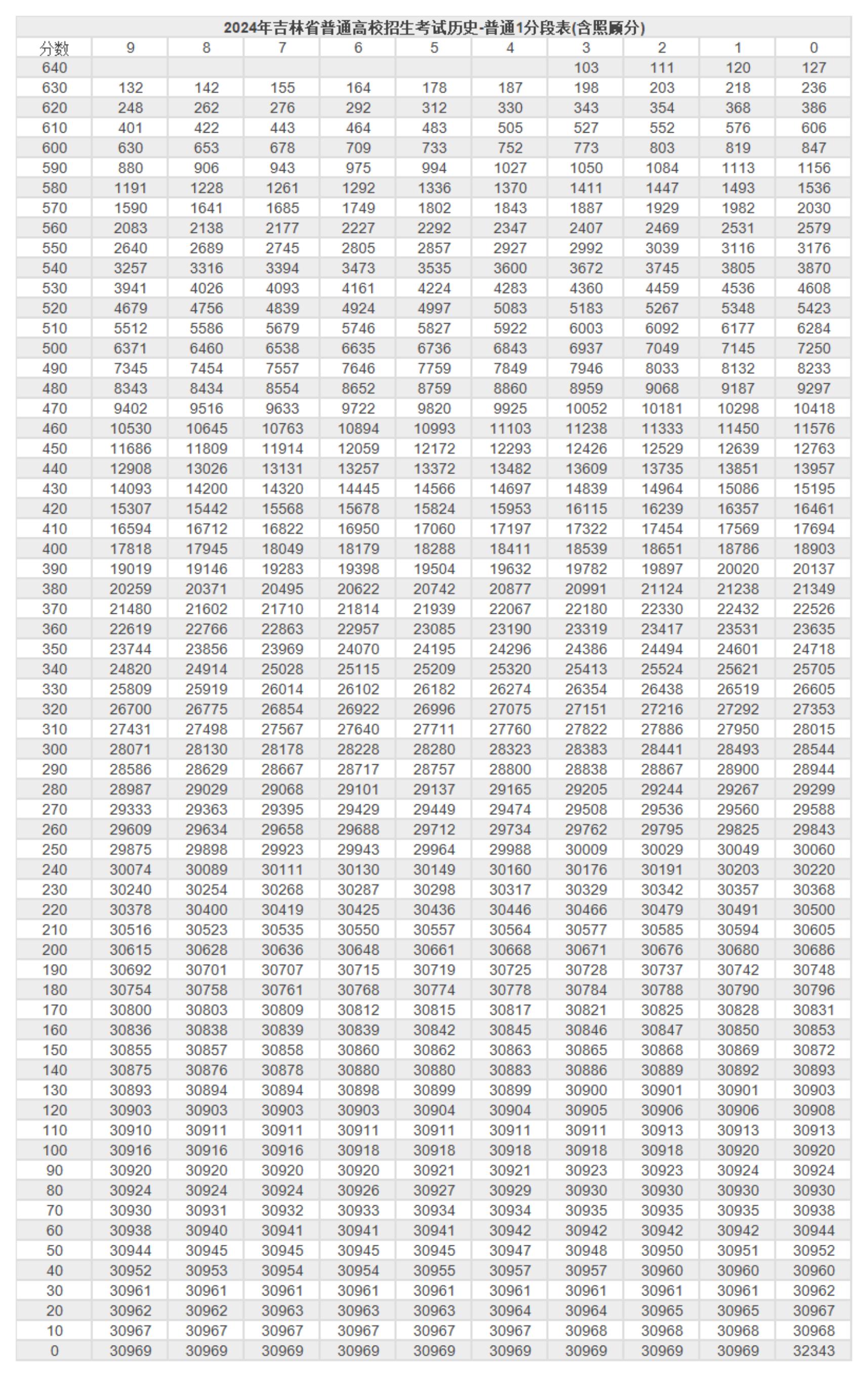 二、2024吉林高考一分一段表