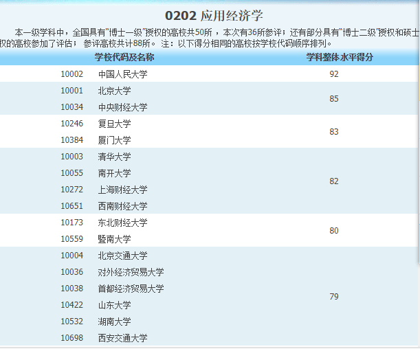 最后是应用经济学,虽然这门学科是东北如今最好的学科,但是在当时评选的时候,得分还是比不过人大、北大和中财这些院校。