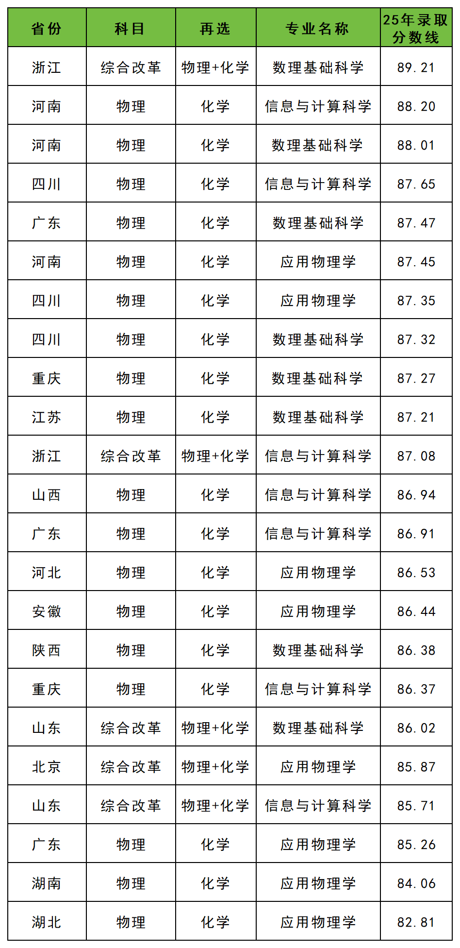 数据显示,电子科技大学强基录取分数线基本在85分以上,其中分数上89分的省份有浙江(数理基础科学89.21分)。