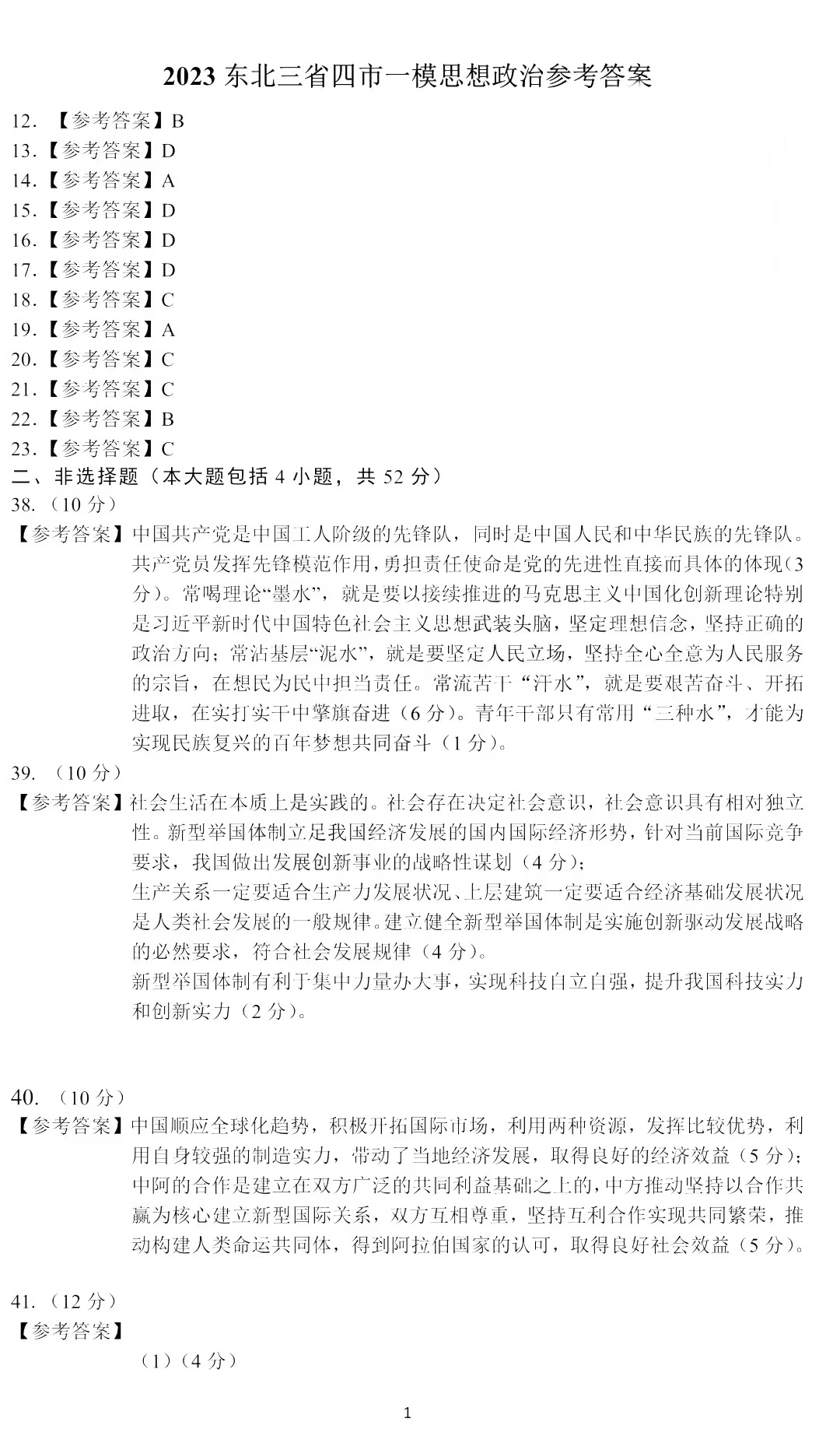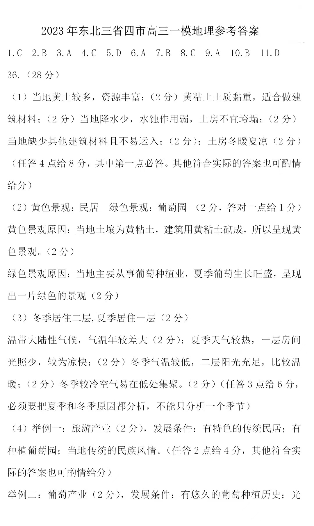 2023东北三省四市一模其他科目试卷及答案解析汇总:https://www.gk100.com/read_210320041.htm(点击查看)