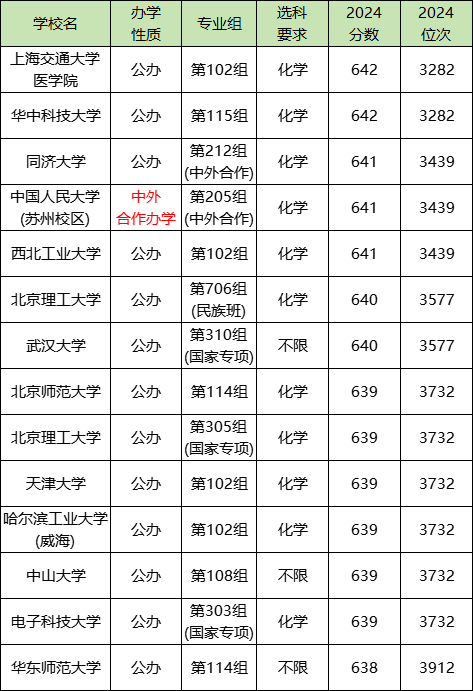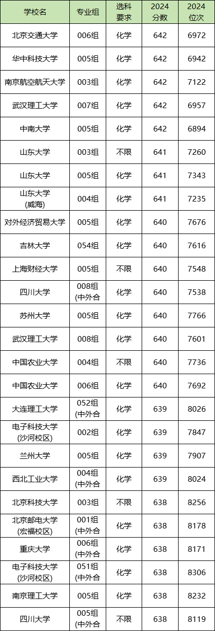 另外省外比较好的有中国农业大学(004组)640分、电子科技大学(002组)639分等。