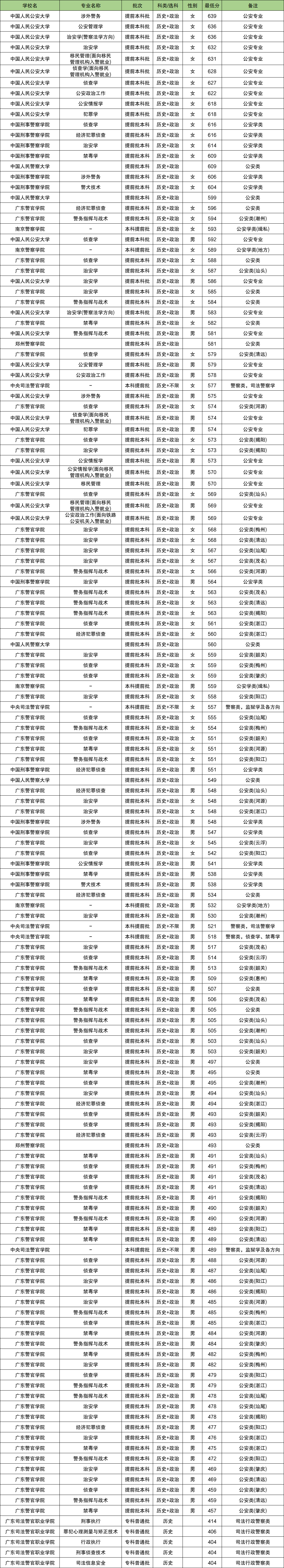 广东物理类最低425分、历史类最低考404分才能上警校,很多学生和家长关心2025年广东考警校需要多少分,想知道广东有哪些公安大学在招生,以及广东警校2024录取分数线情况。