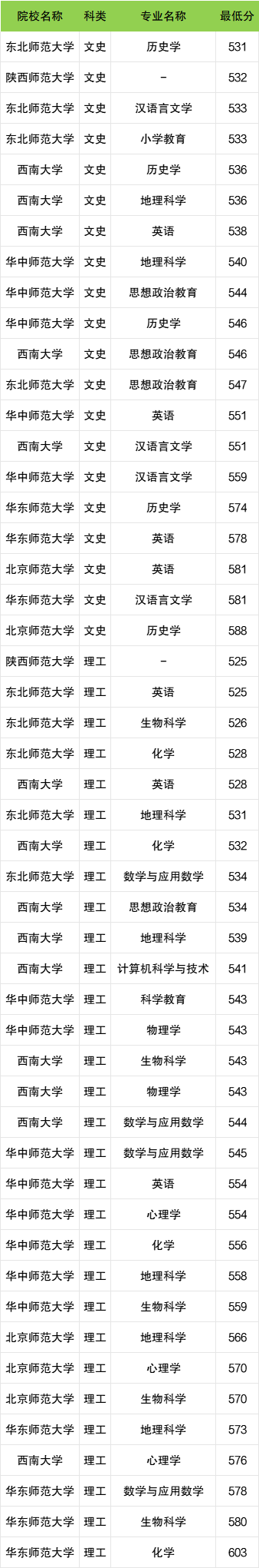 理工类招生分数范围在525分~603分之间,其中收分最低的院校为陕西师范大学。