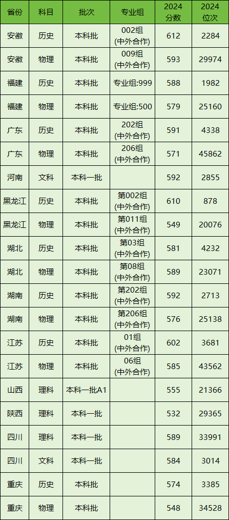 2024年大连海事大学统招中外合作录取分数线位于532分到612分之间,各省最低分如下表所示。