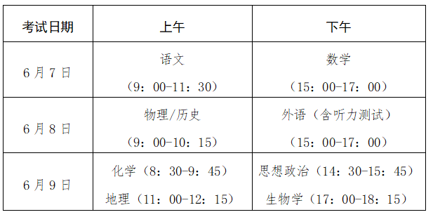 2025年福建高考采用“3+1+2”模式,除了语数外三科考试时间与全国统考时间一致,其余考试科目时间由各地省市自行安排,时间与2024年一致。具体高考科目时间安排表如下:
