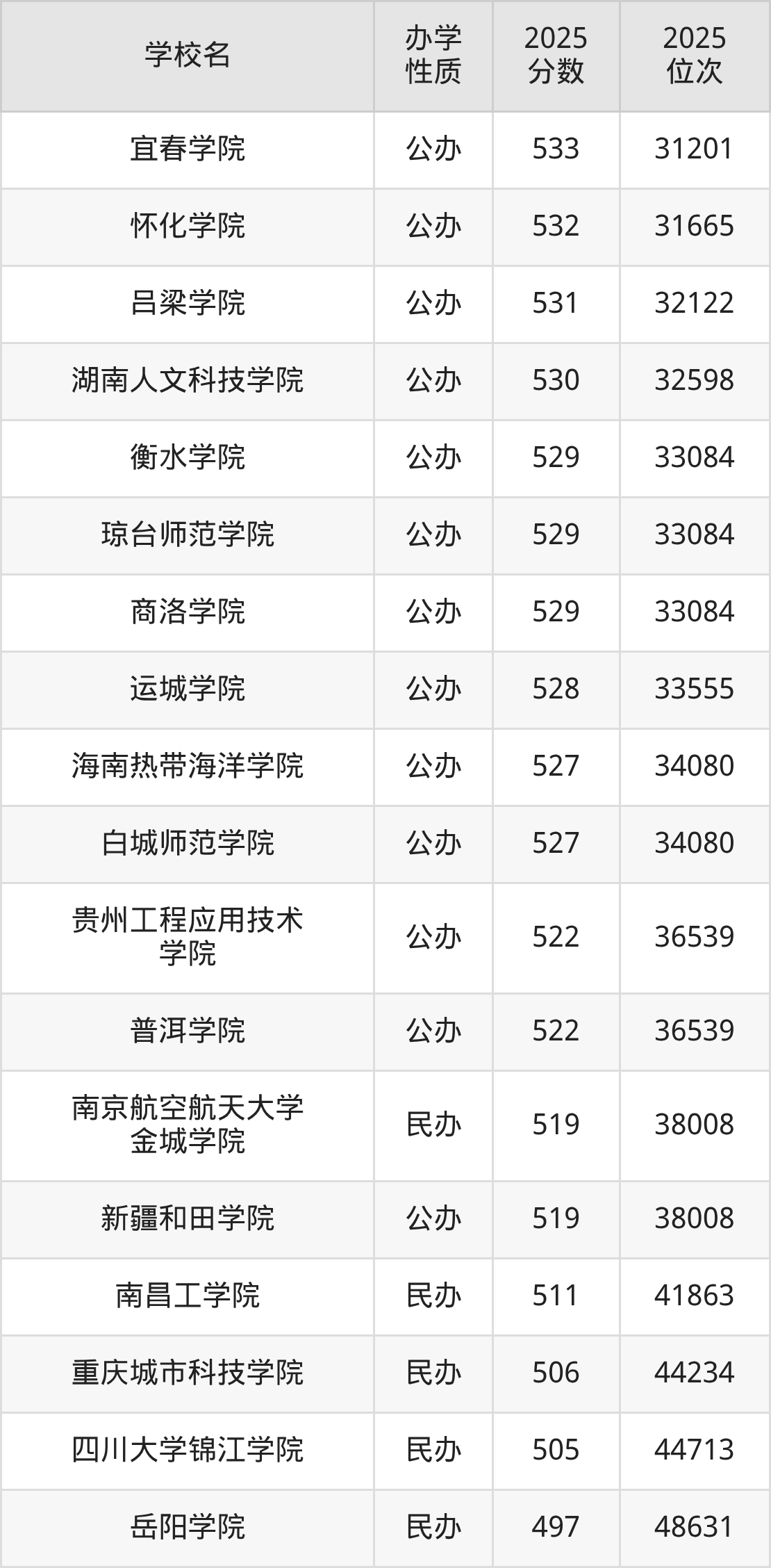 在历史类二本招生的思想政治教育大学有38所,录取分数线最低的是岳阳学院,2025年最低分497分,位次是48631名。录取分数线最高的是南京晓庄学院,2025年最低分571分。最低分公办二本思想政治教育大学为新疆和田学院,2025年最低分519分。