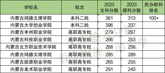 下表为内蒙古自治区所有民办学校分数线及全国排名。
