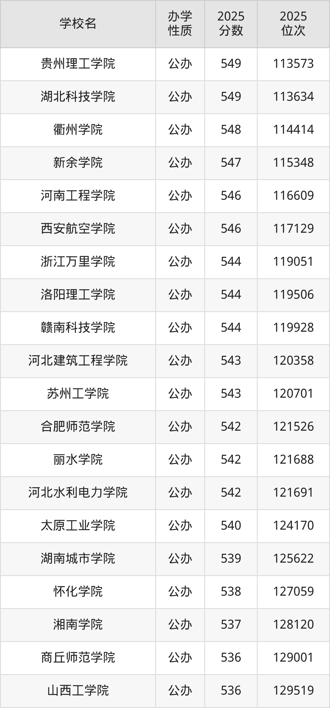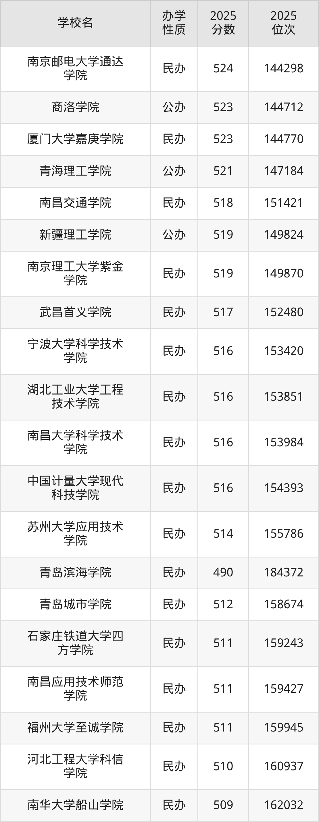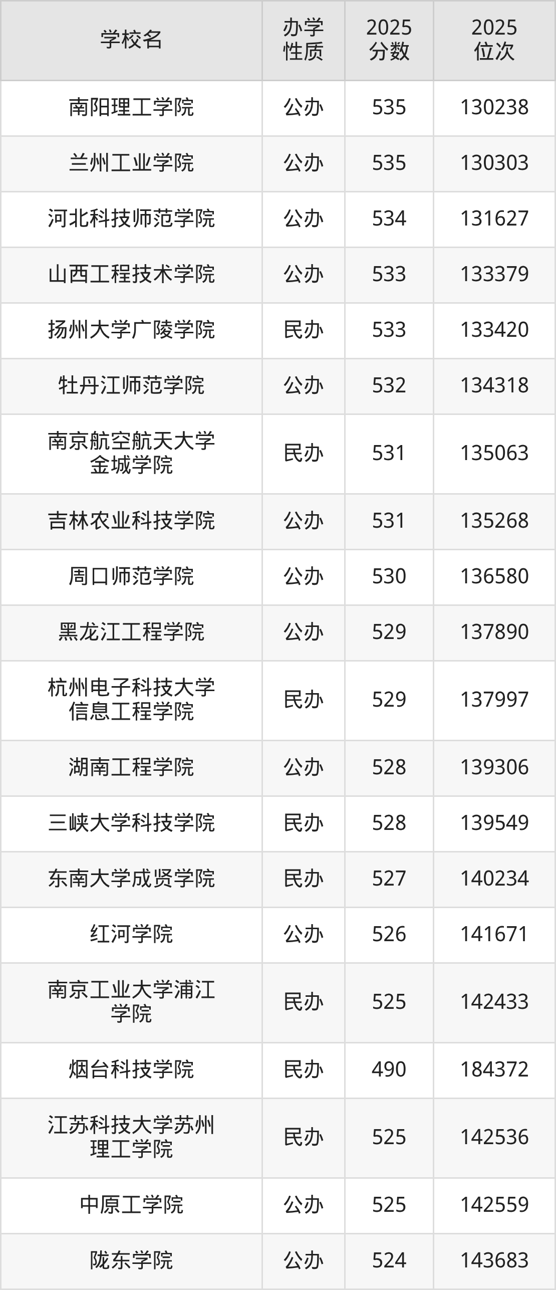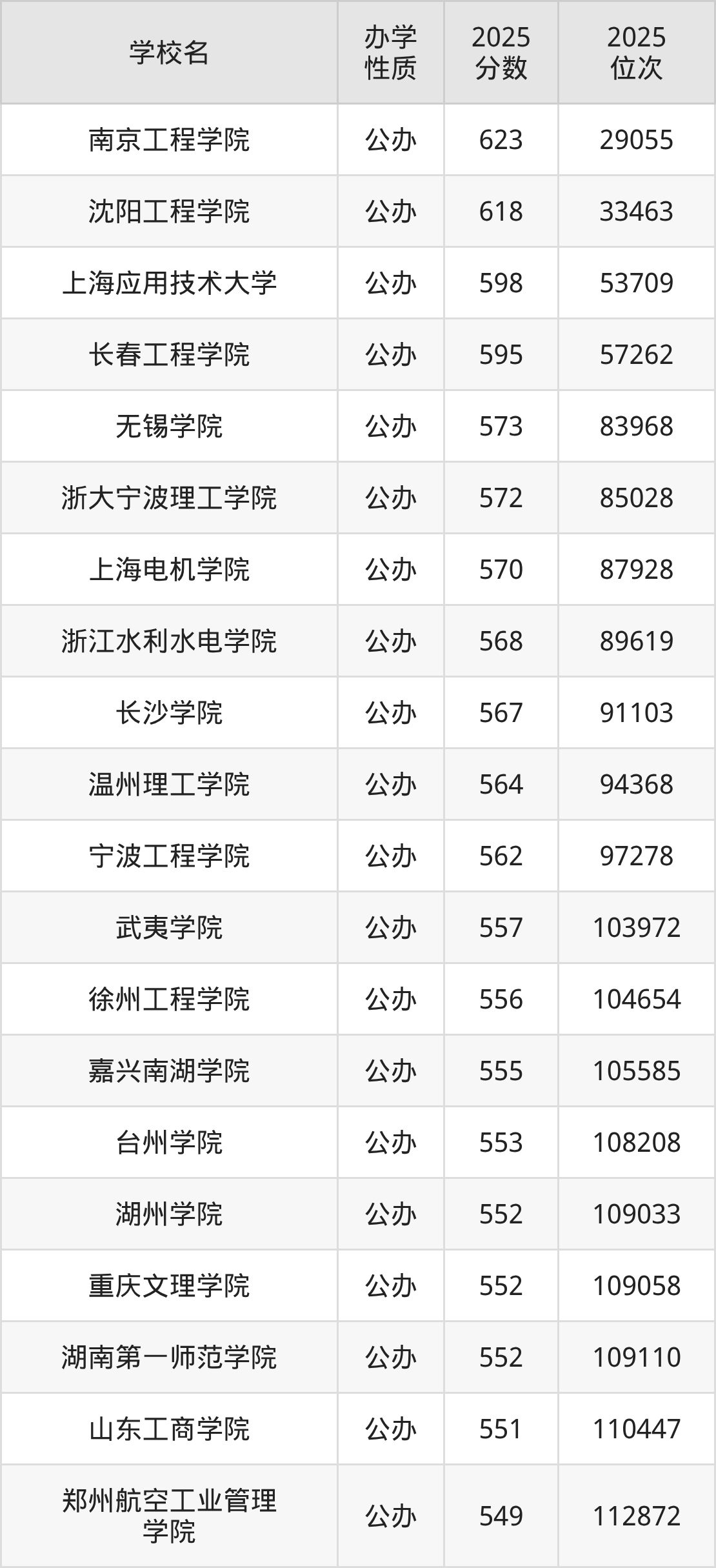 在二本招生的电气工程及其自动化大学有123所,录取分数线最低的是重庆移通学院,2025年最低分473分,位次是201167名。录取分数线最高的是南京工程学院,2025年最低分623分。最低分公办二本电气工程及其自动化大学为新疆理工学院,2025年最低分519分。