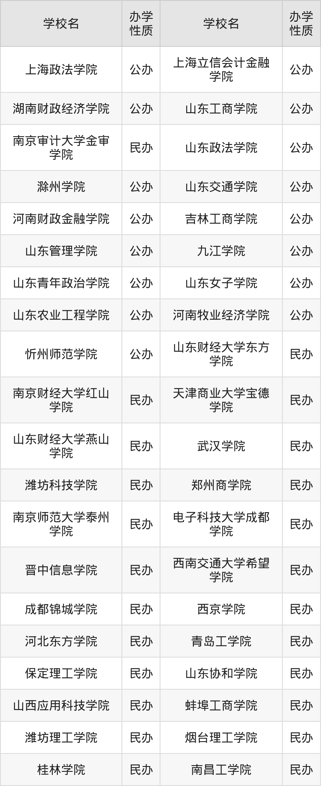 公办二本审计学大学有:上海政法学院、上海立信会计金融学院、湖南财政经济学院、山东工商学院、山东政法学院、滁州学院、山东交通学院、河南财政金融学院、吉林工商学院、山东管理学院等;