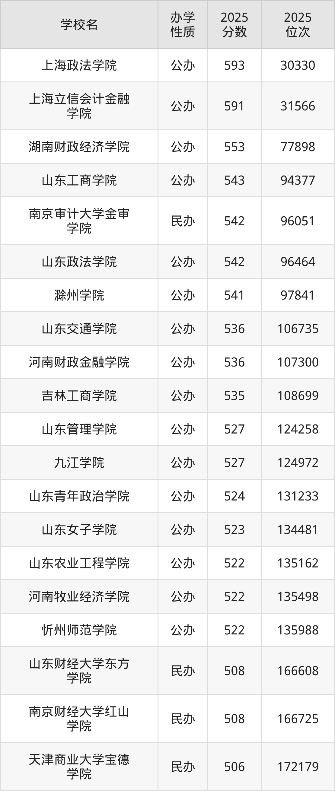 招审计学的二本大学有上海政法学院、上海立信会计金融学院、湖南财政经济学院、山东工商学院、南京审计大学金审学院等。2025年二本审计学专业录取分数线最低为:490分,完整名单排名及分数线一览表如下文所示。