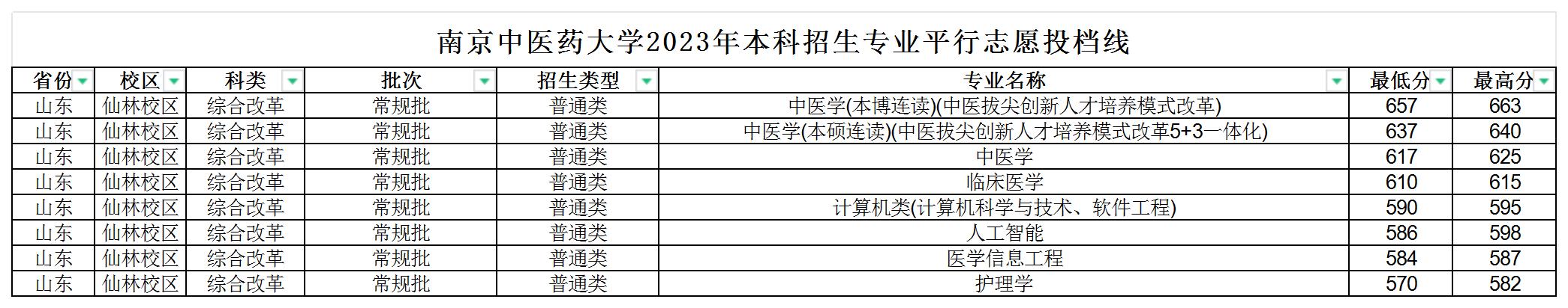 一、南京中医药大学普通类分数线