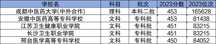 450分左右能上的医科大学只有5所,其中文科能够上的医科大学包含安徽中医药高等专科学校、江苏卫生健康职业学院、邢台医学高等专科学校等,都在高职专科批进行录取,非常适合高考位次排名在8万名左右的考生选择,是450分左右这个阶段同学们最值得填报的几所医科大学。