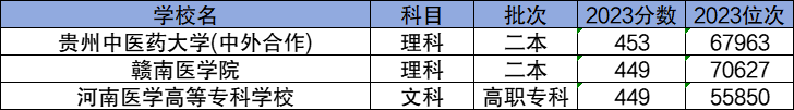 理科只有2所大学在该分数段进行录取,为贵州中医药大学(中外合作)和赣南医学院,非常适合高考位次在6万7千名至7万名左右的学生选择。
