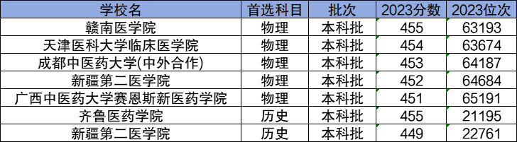 历史科目类中能上的大学只有2所,为齐鲁医药学院和新建第二医学院,最低分为449分和455分,比较适合位次排名在2万名左右的考生选择。