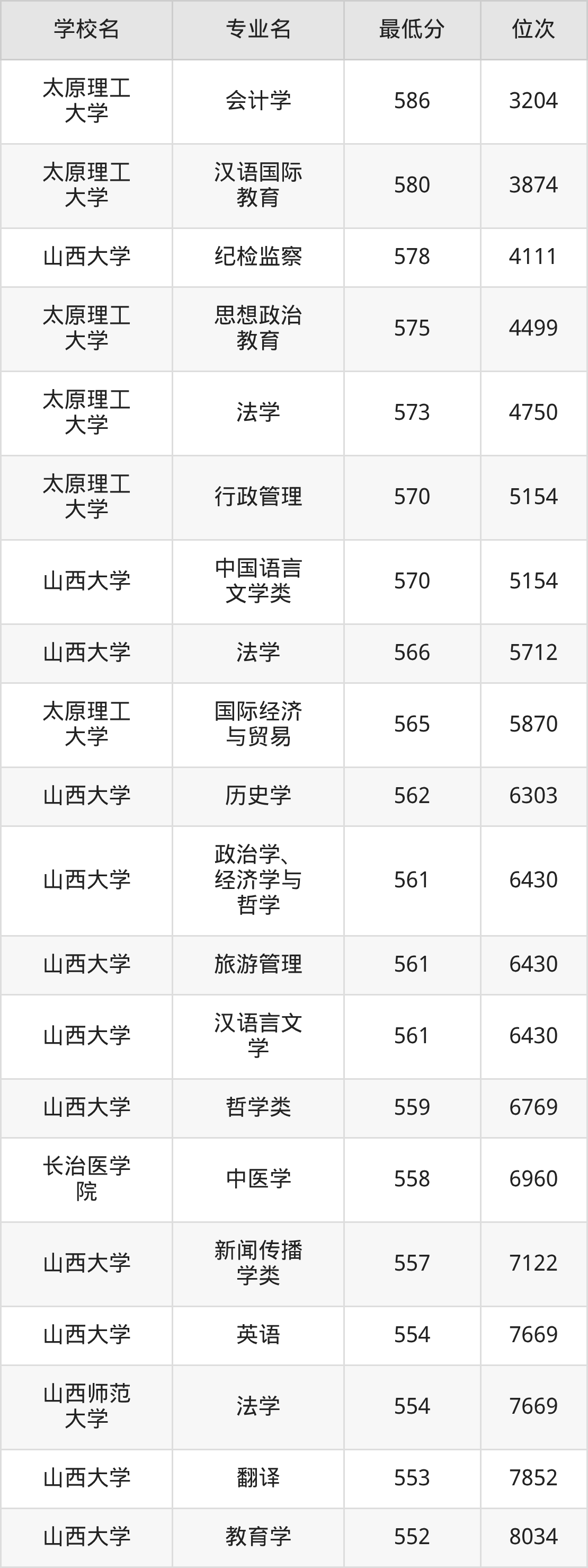 二、山西公办本科录取分数线(历史类)