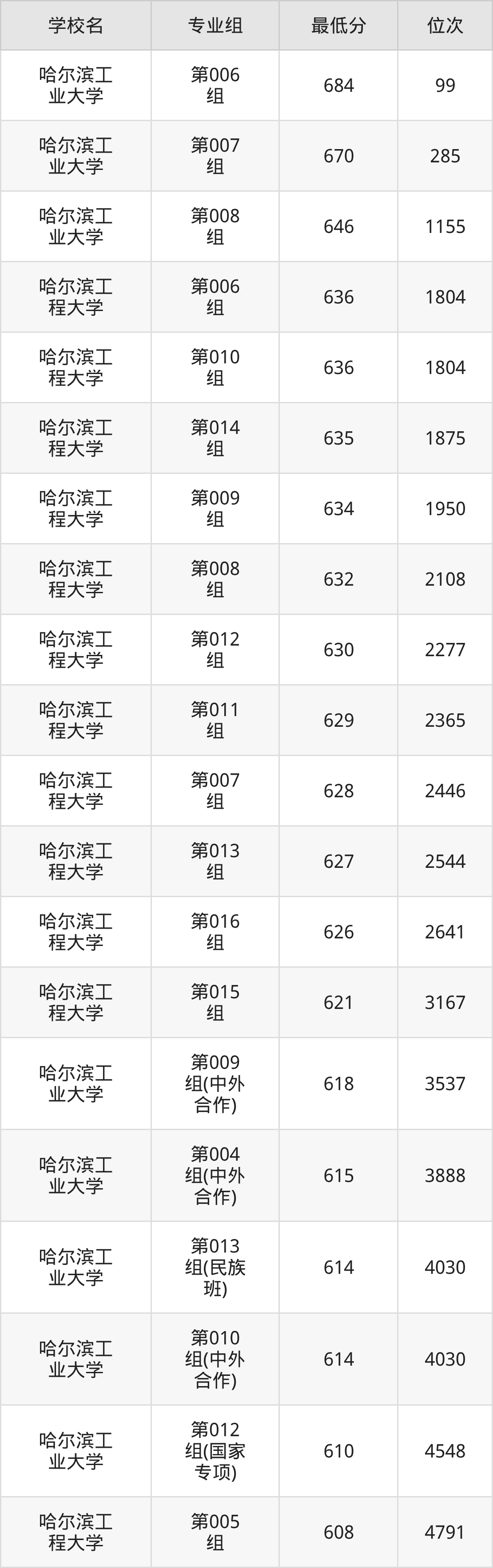(4)哈尔滨工业大学:2025年公办本科分数线602分,位次是771名,招生专业组有1个,最低为第001组。