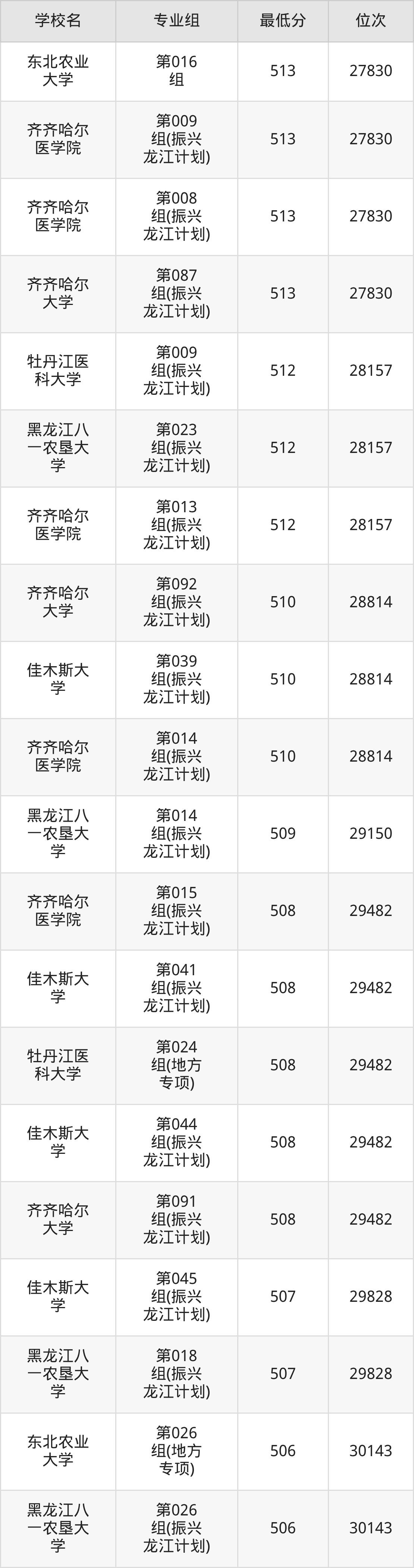 (1)牡丹江医科大学:2025年公办本科分数线409分到572分,位次区间是66122名到11398名,招生专业组有23个,最低为第003组、最高为第013组(振兴龙江计划)。