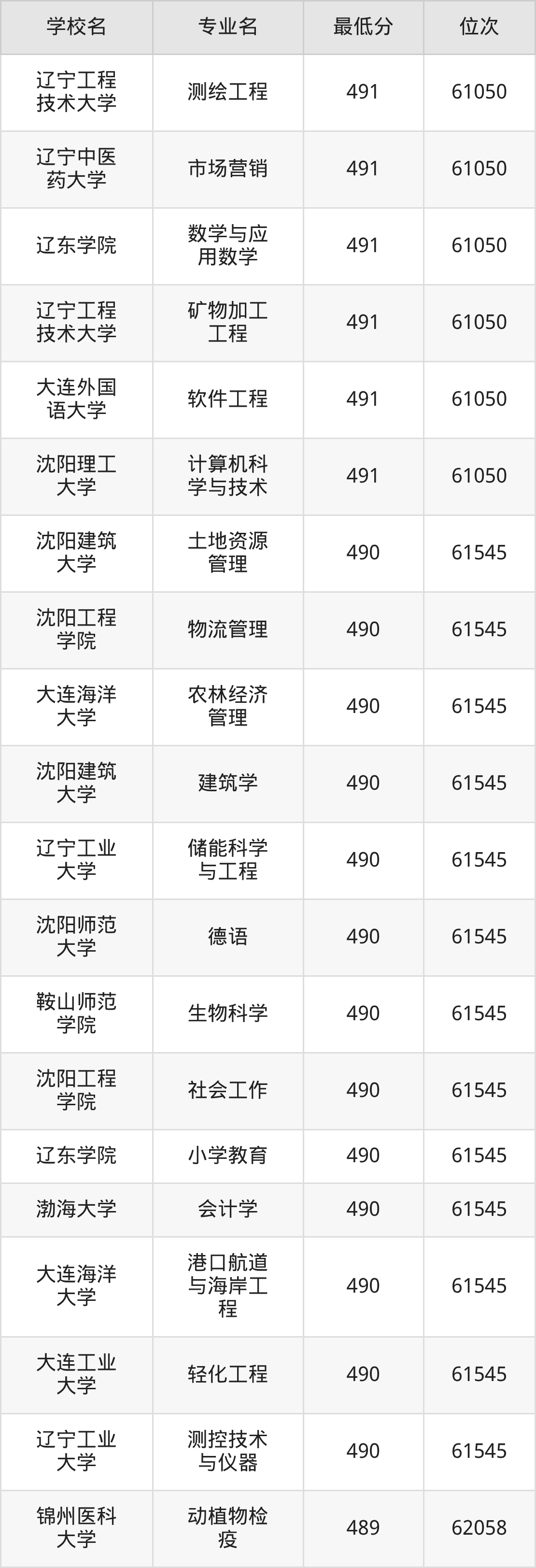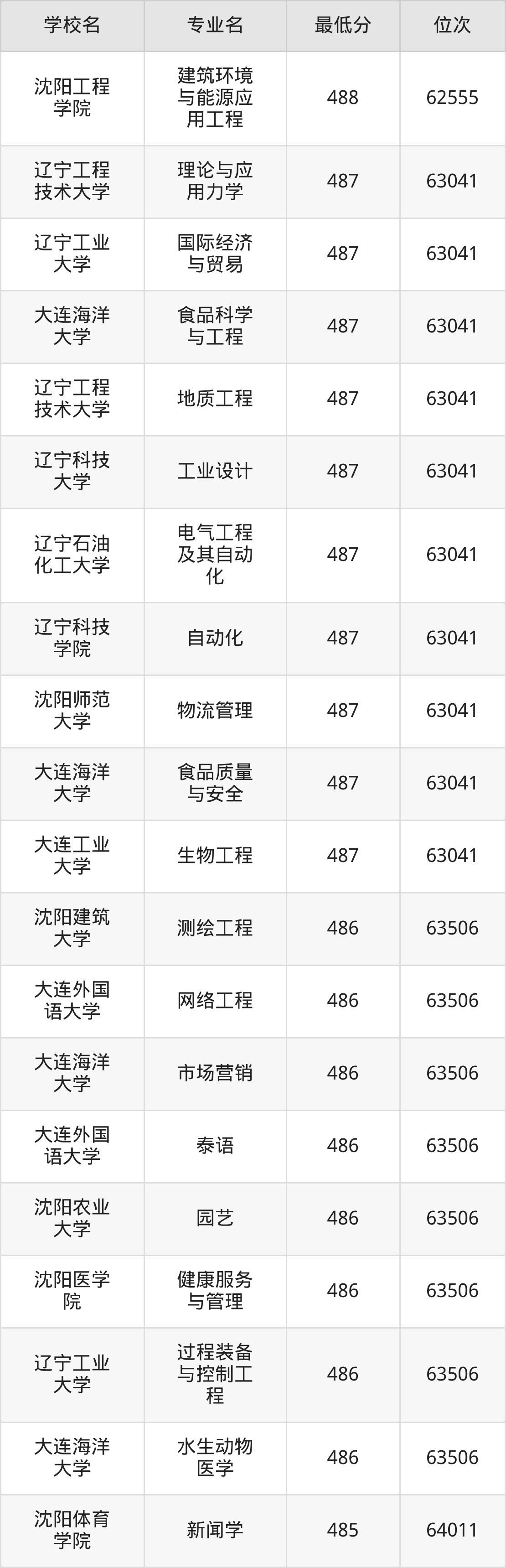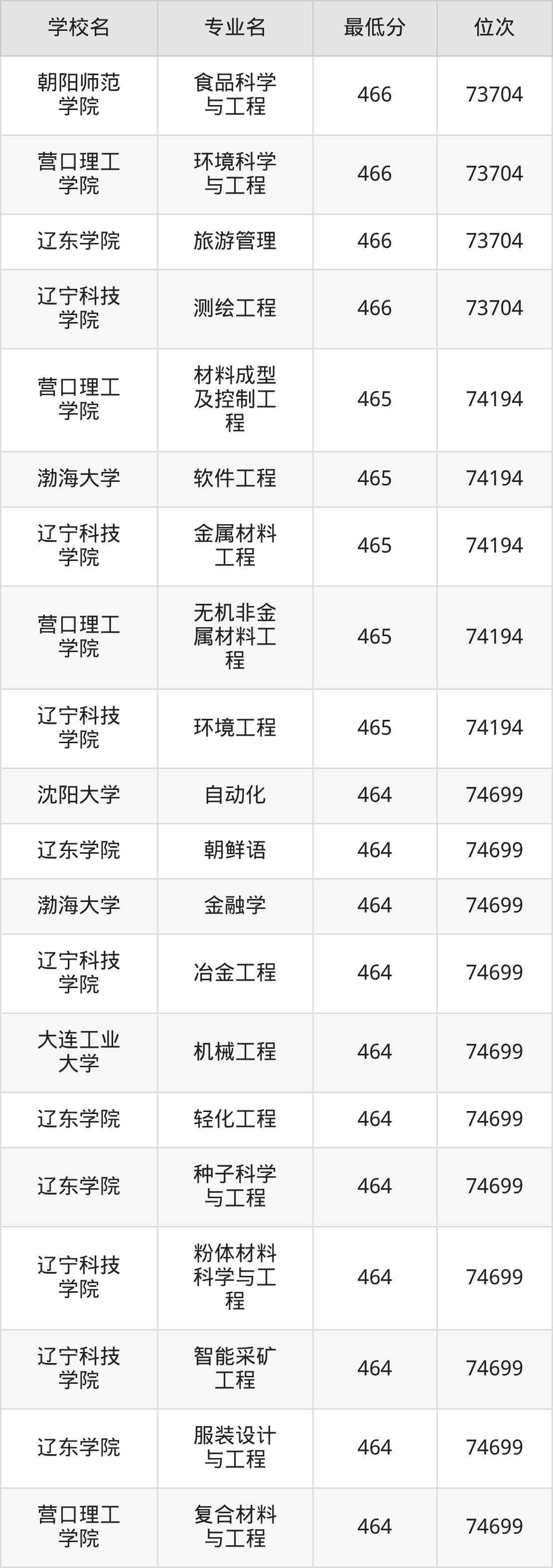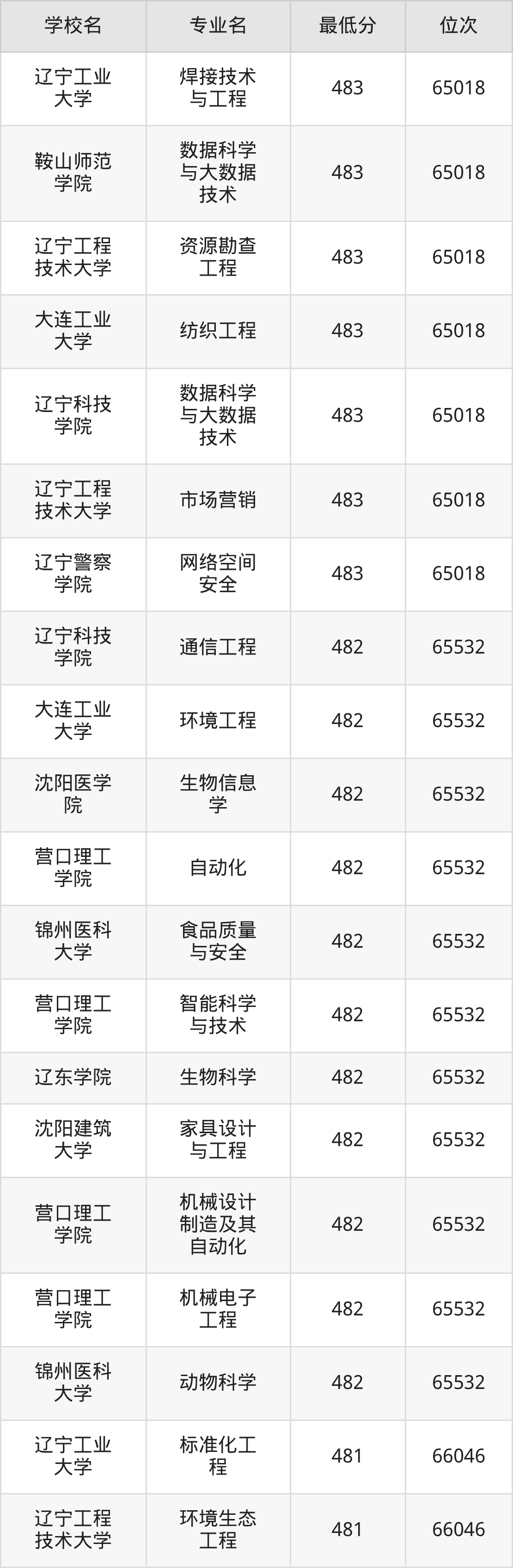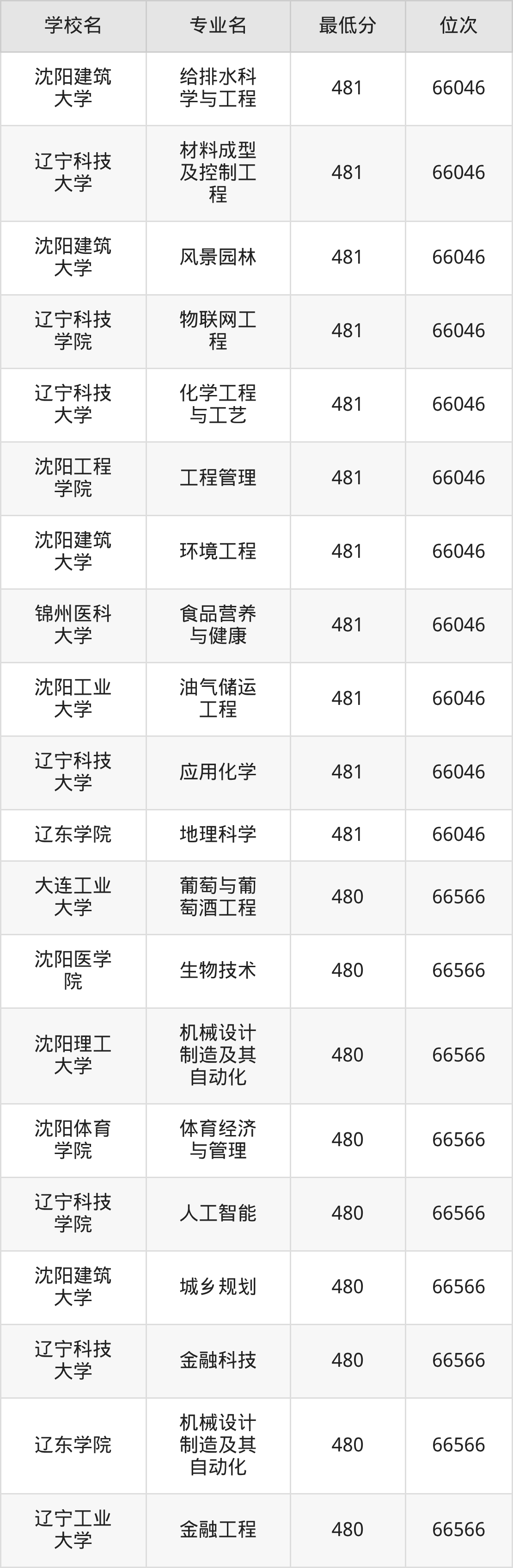 (4)辽宁工程技术大学:2025年公办本科分数线471分到565分,位次区间是71067名到26382名,招生专业有58个,最低为土木工程、最高为电气工程及其自动化。