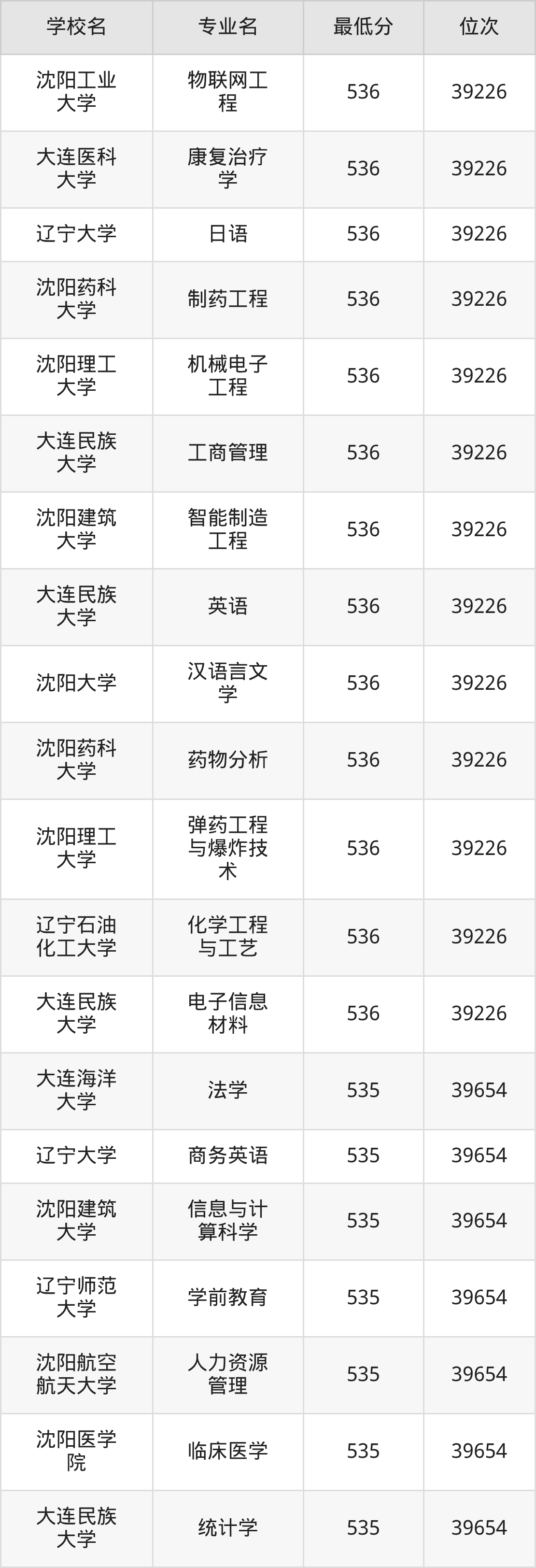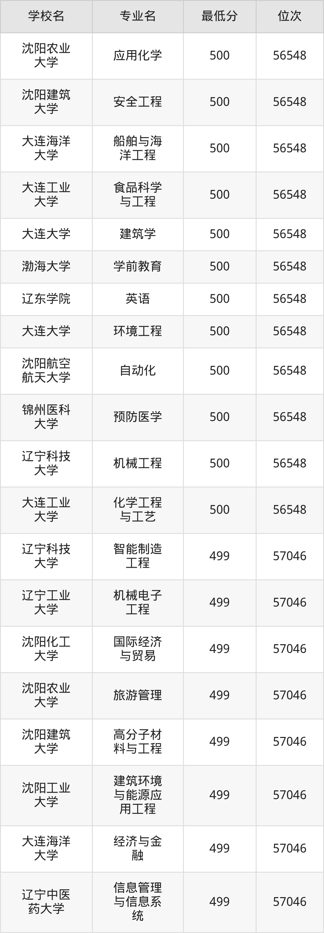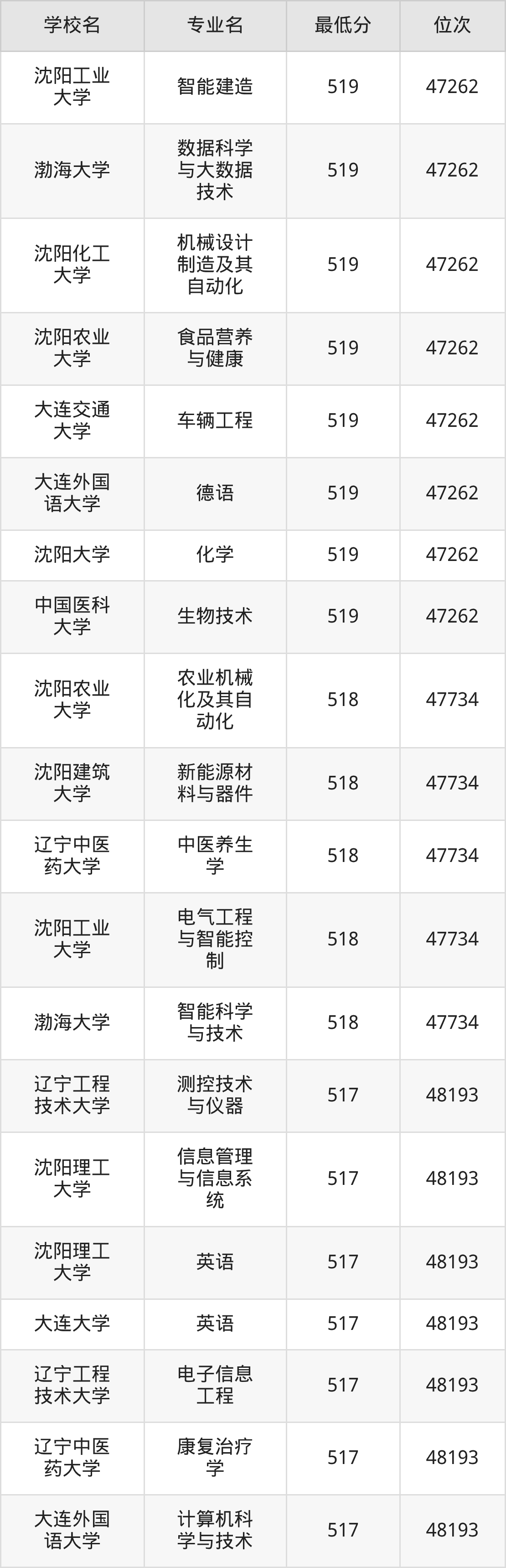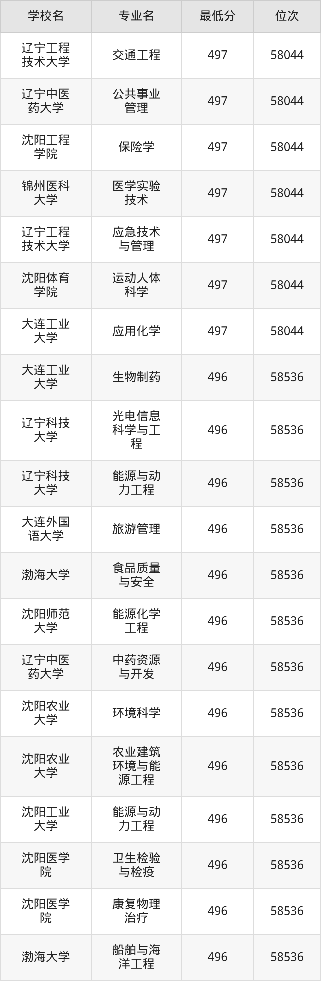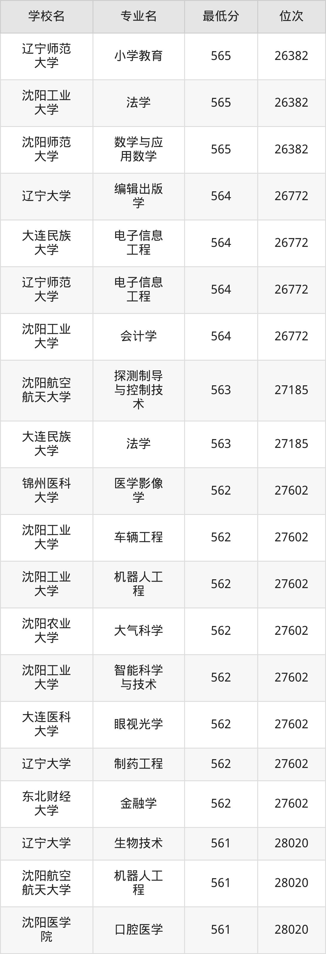 (3)辽宁中医药大学:2025年公办本科分数线437分到571分,位次区间是26916名到4523名,招生专业有11个,最低为护理学、最高为中医学。