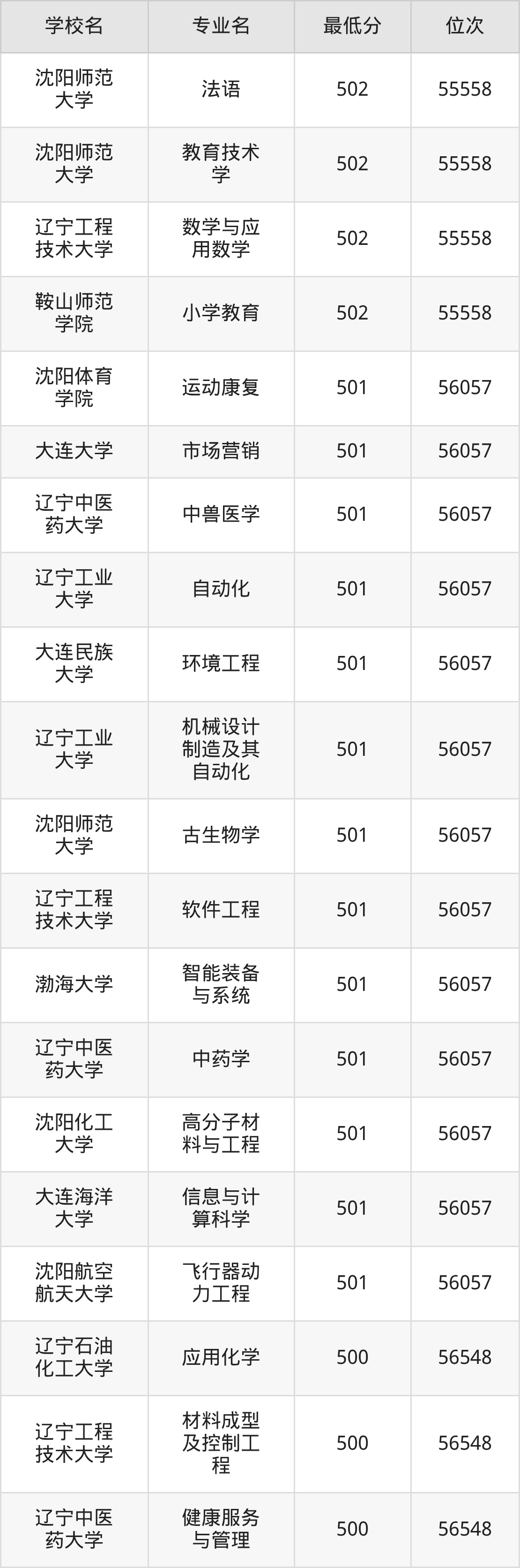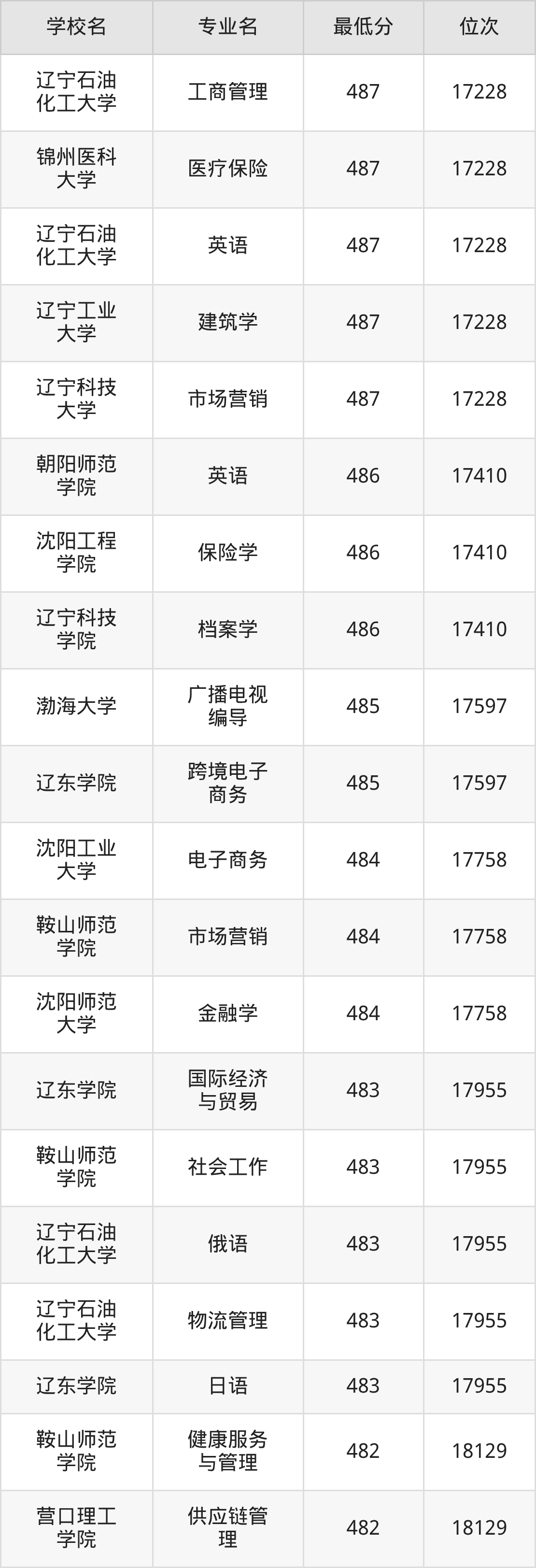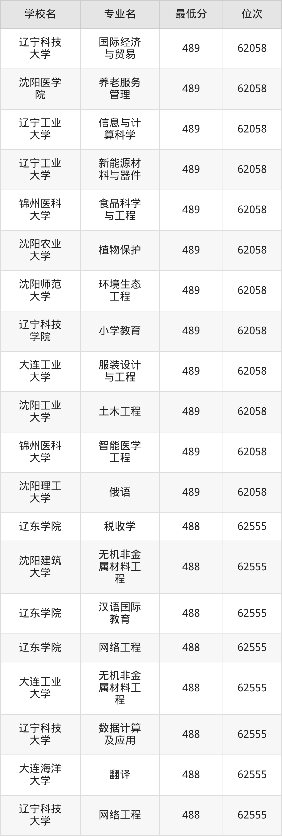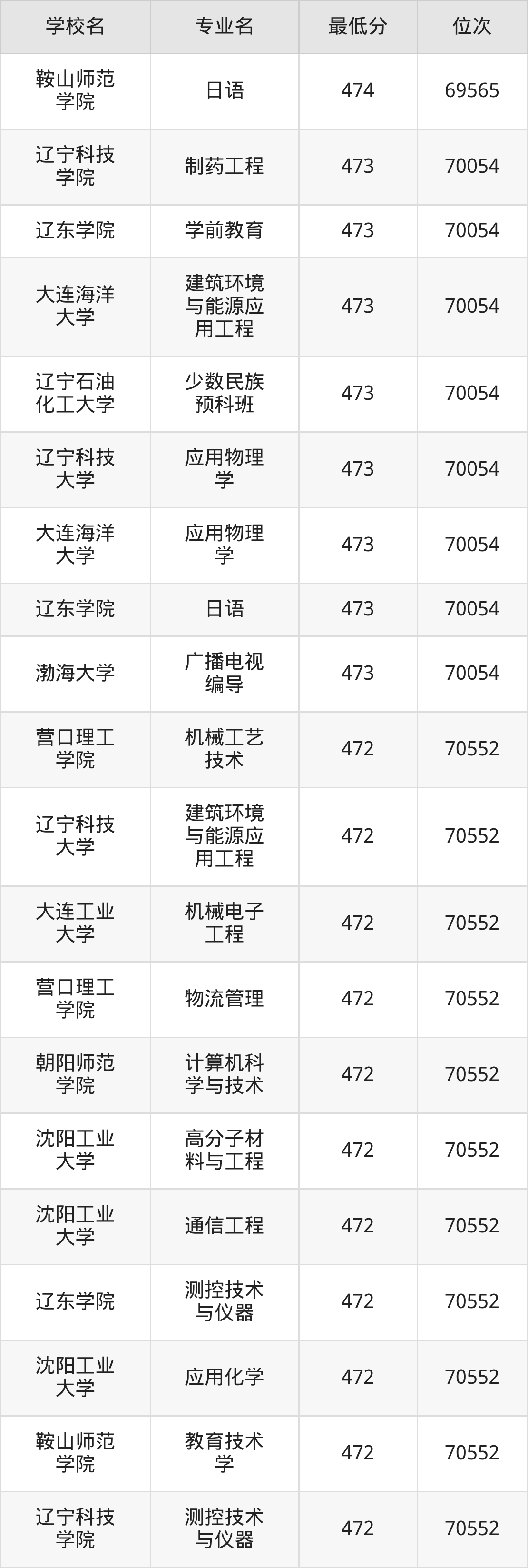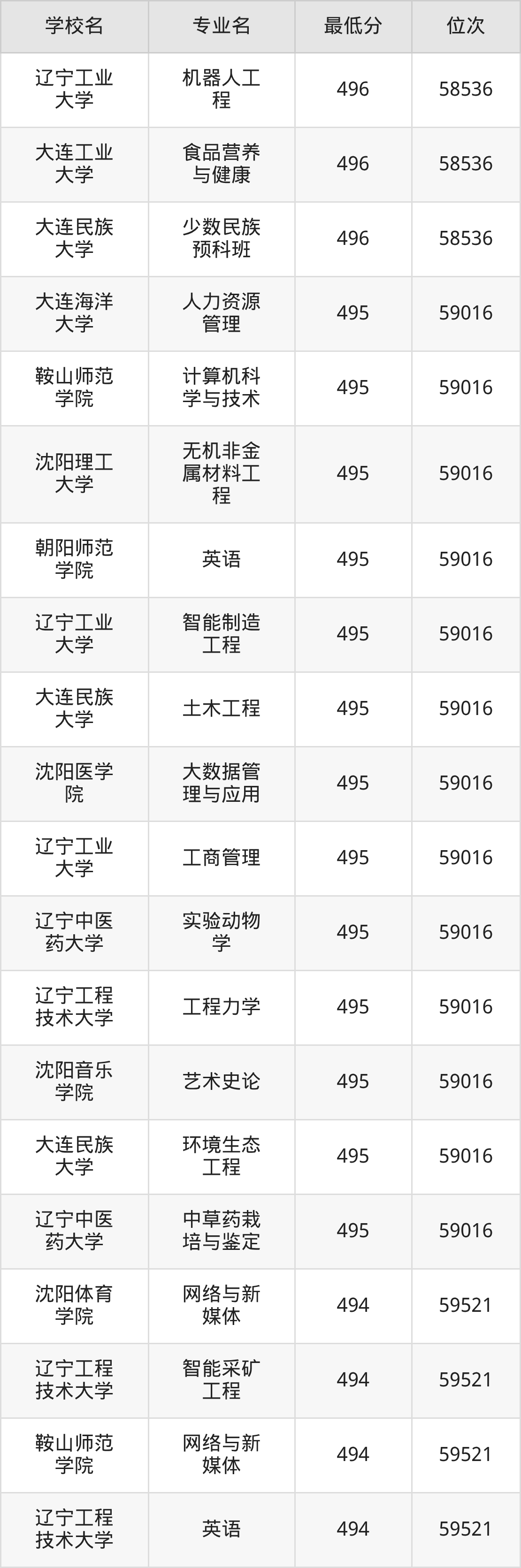 (3)辽宁中医药大学:2025年公办本科分数线437分到571分,位次区间是26916名到4523名,招生专业有11个,最低为护理学、最高为中医学。