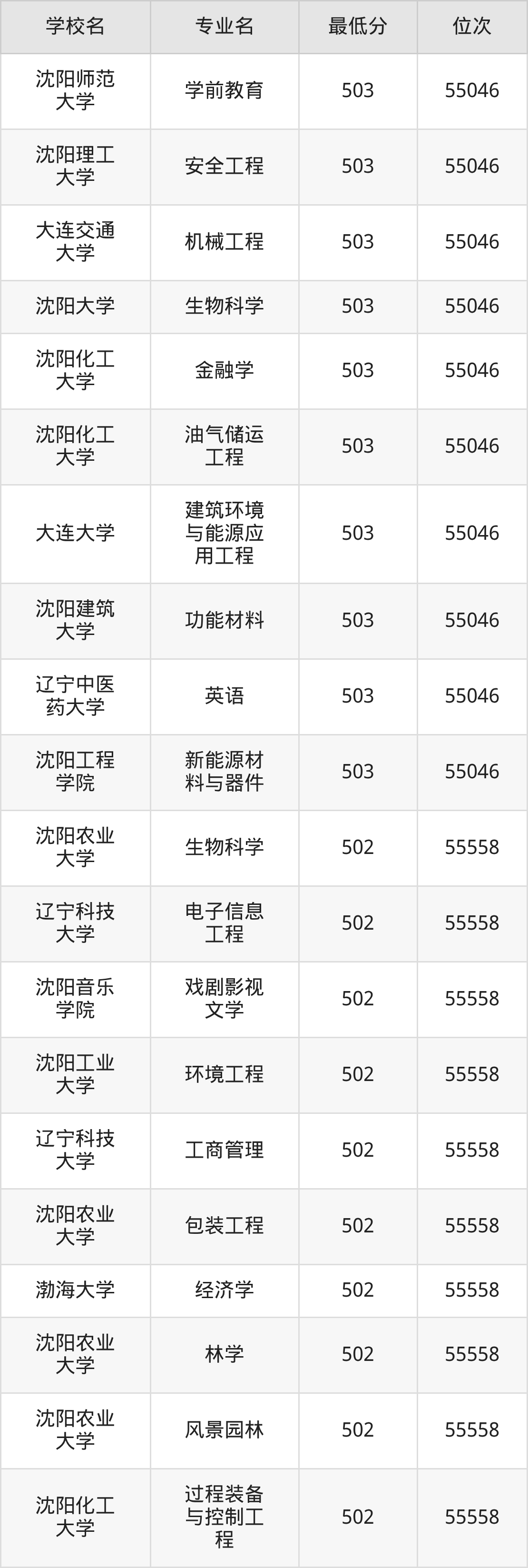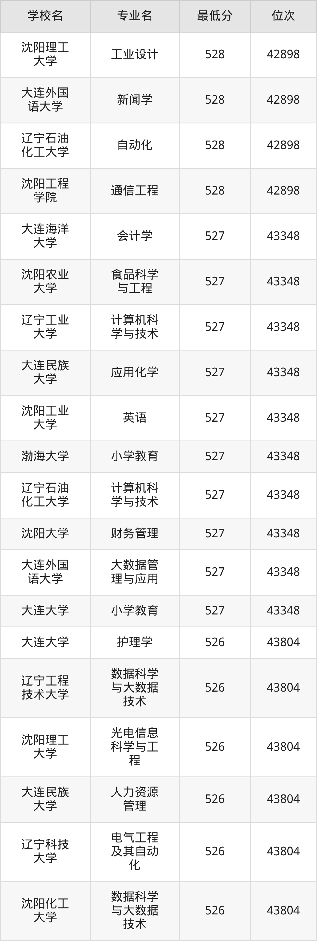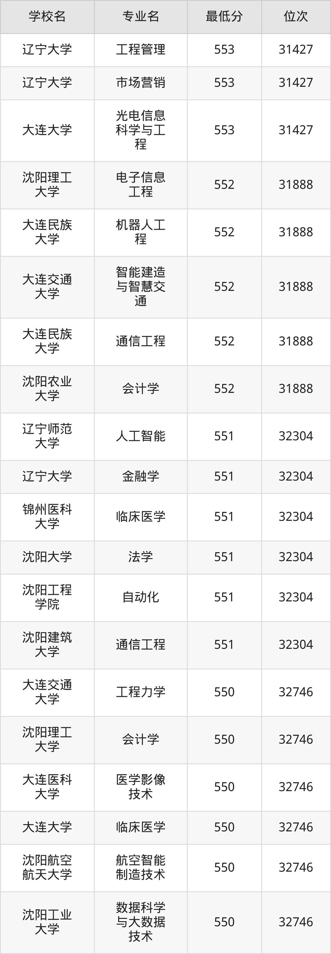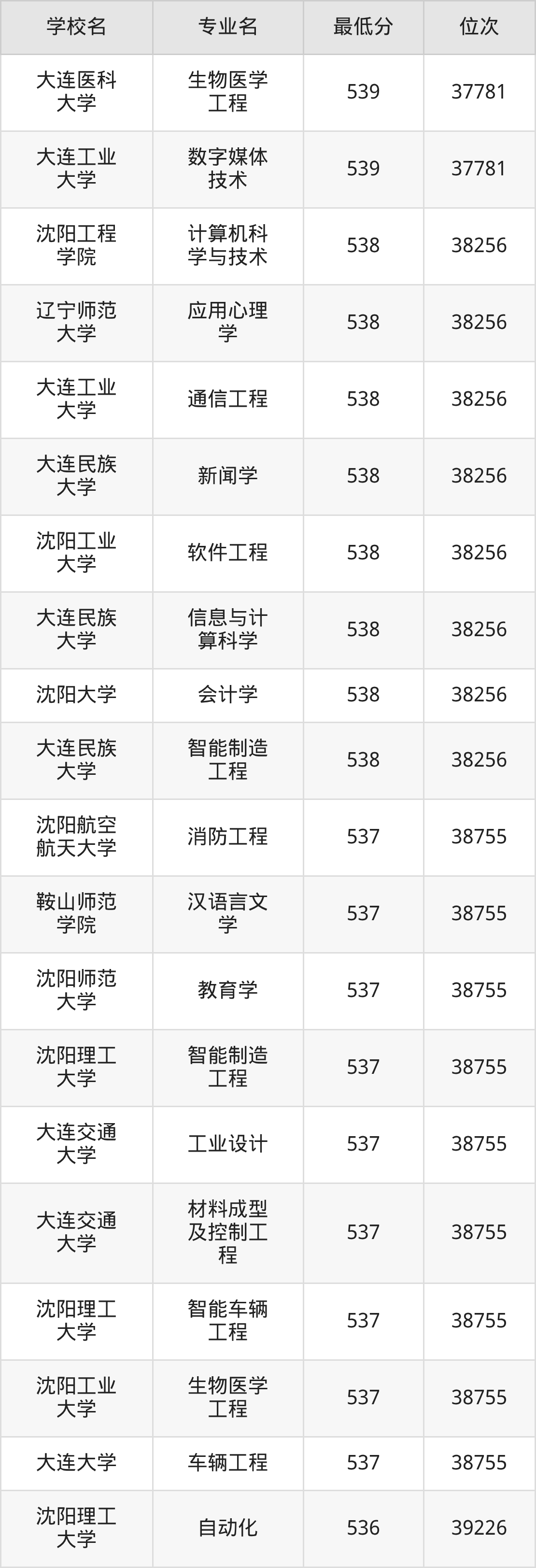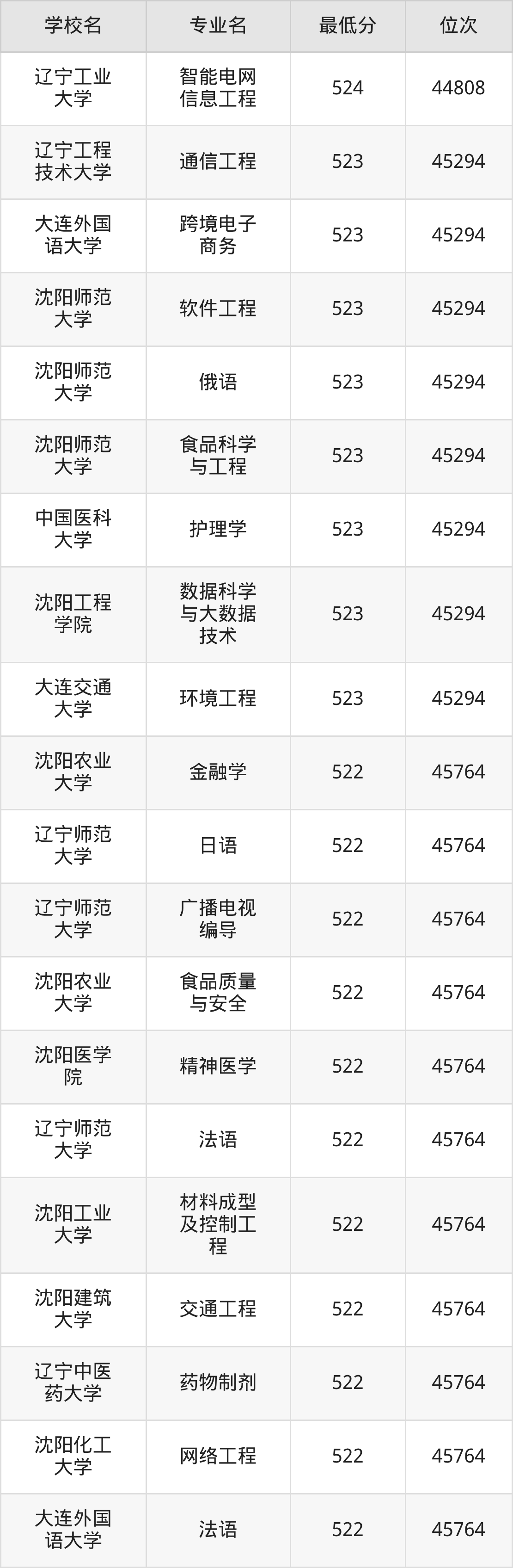(6)沈阳大学:2025年公办本科分数线532分到555分,位次区间是9530名到6368名,招生专业有8个,最低为金融学、最高为法学。