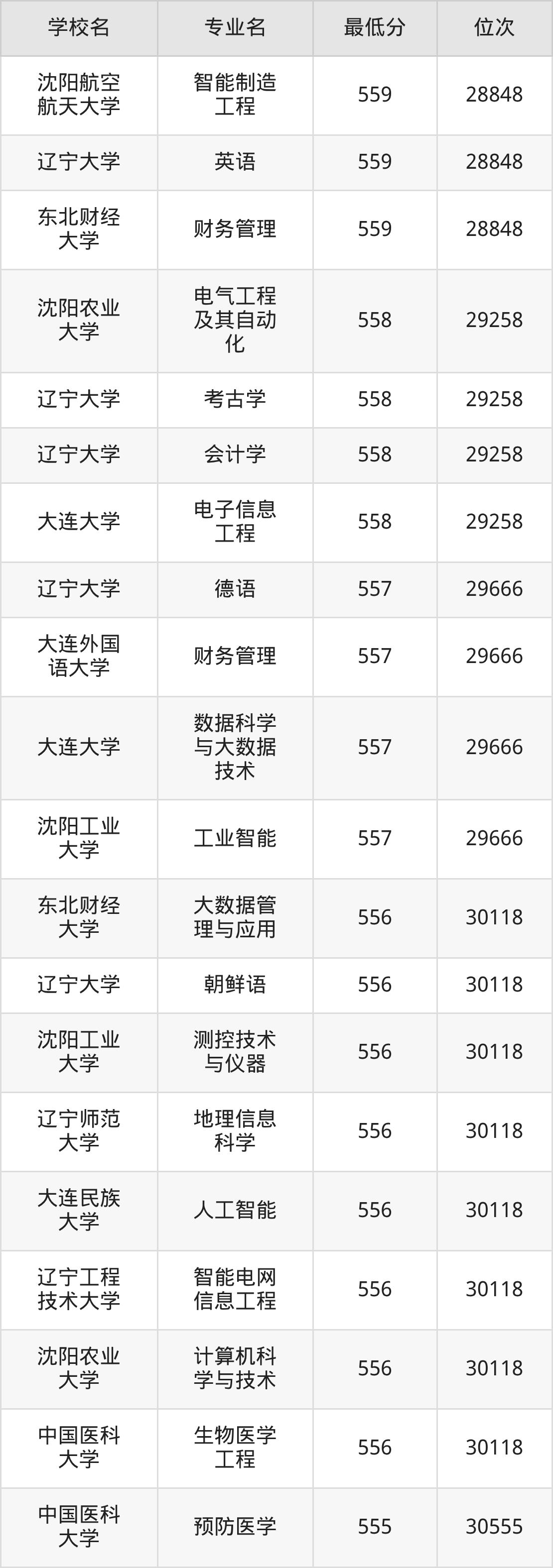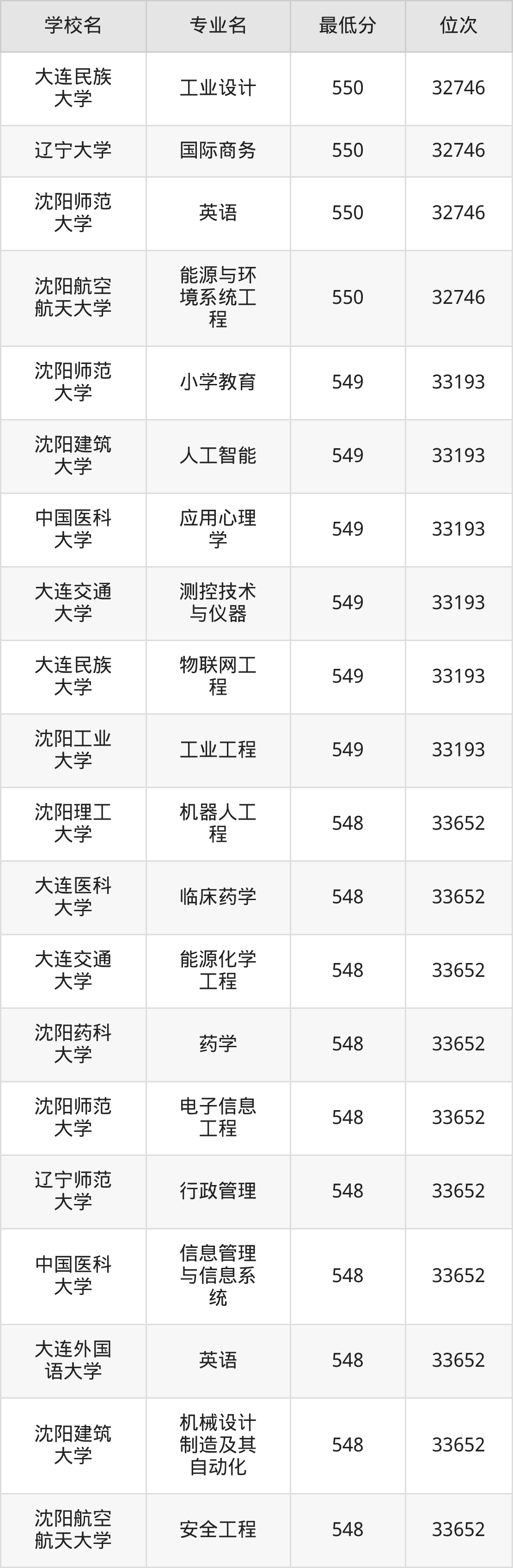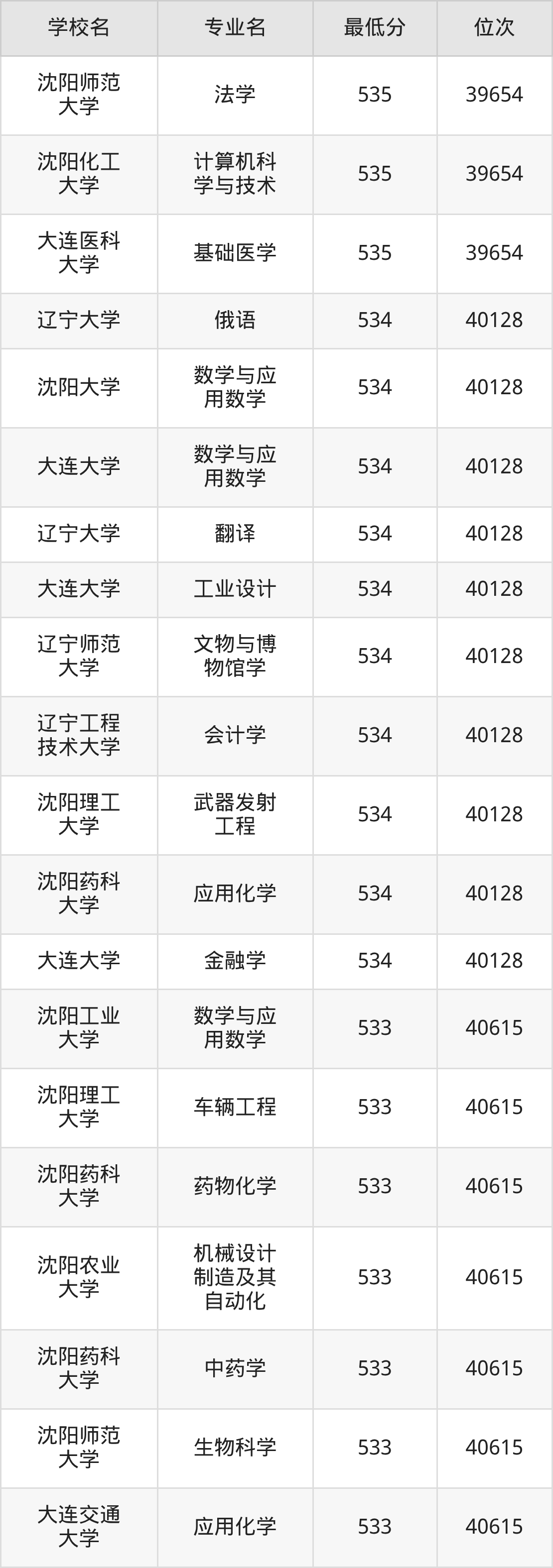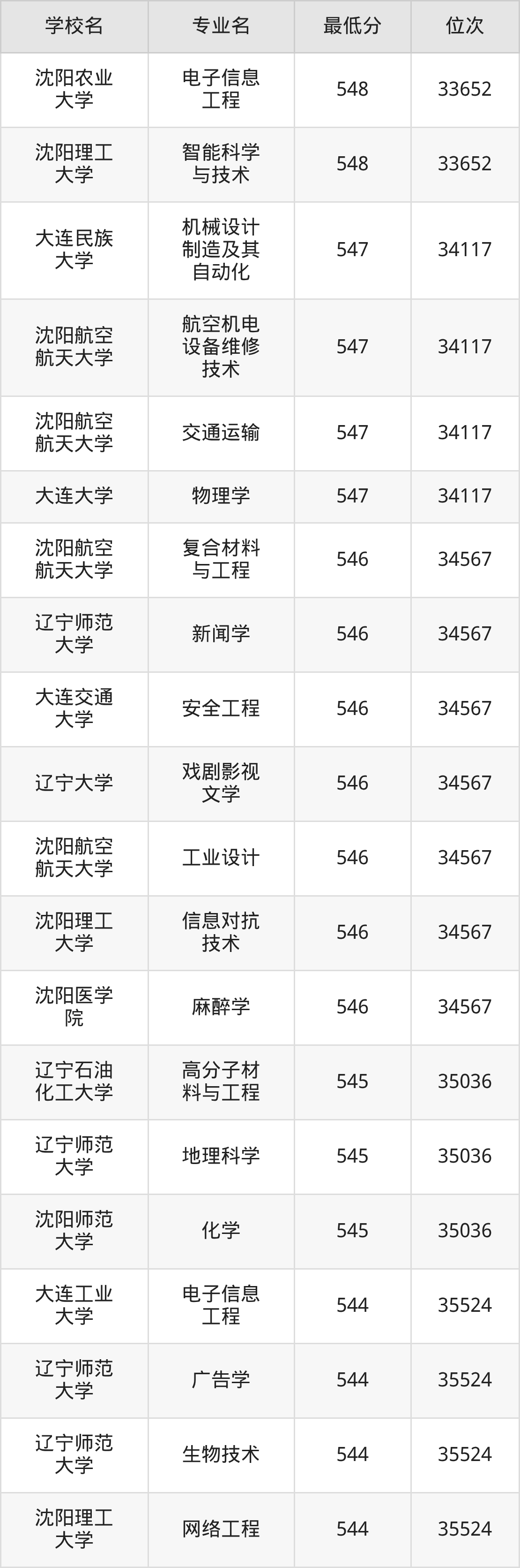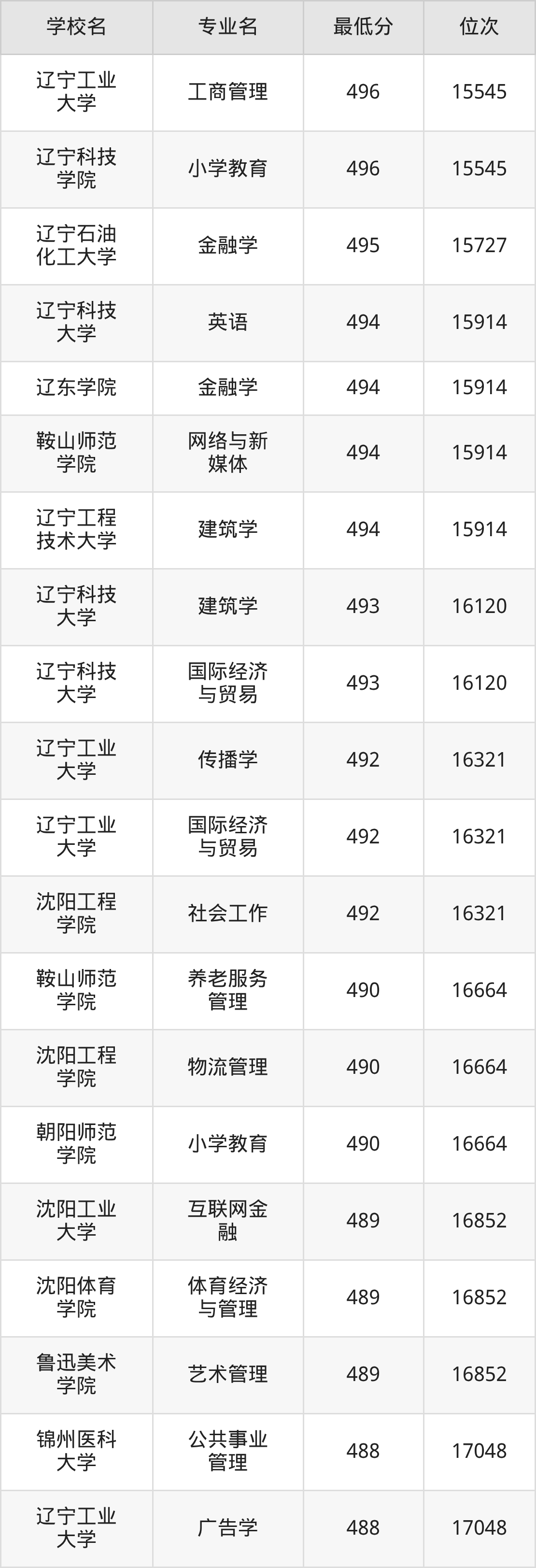 (6)沈阳大学:2025年公办本科分数线532分到555分,位次区间是9530名到6368名,招生专业有8个,最低为金融学、最高为法学。