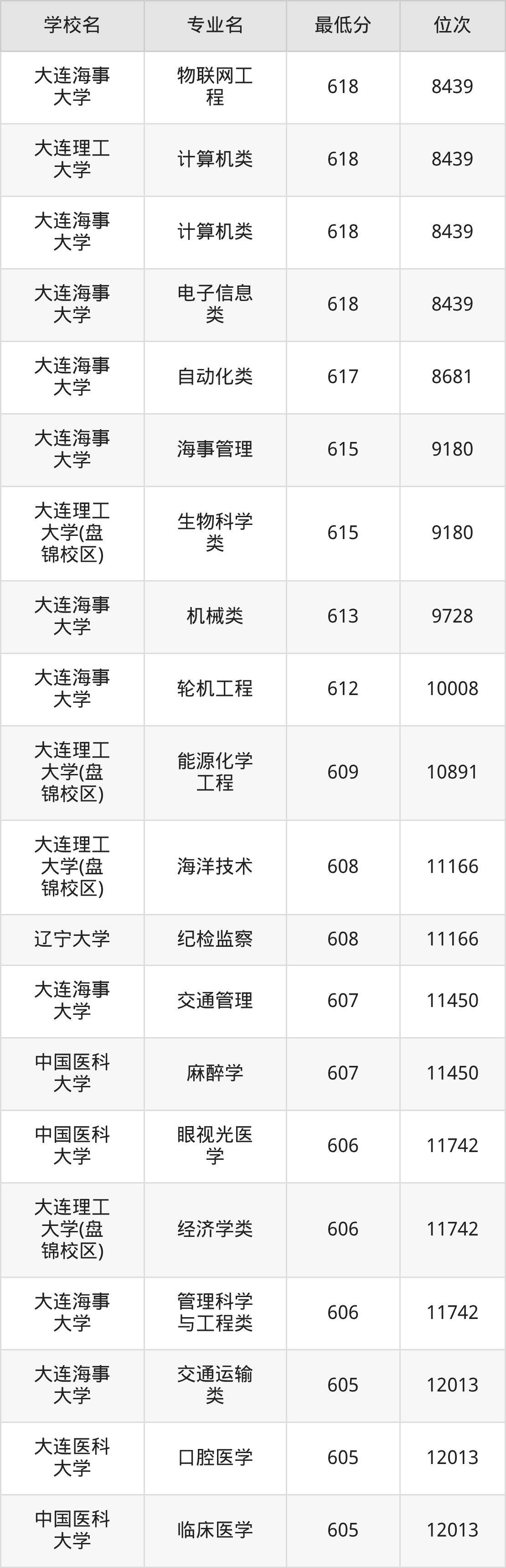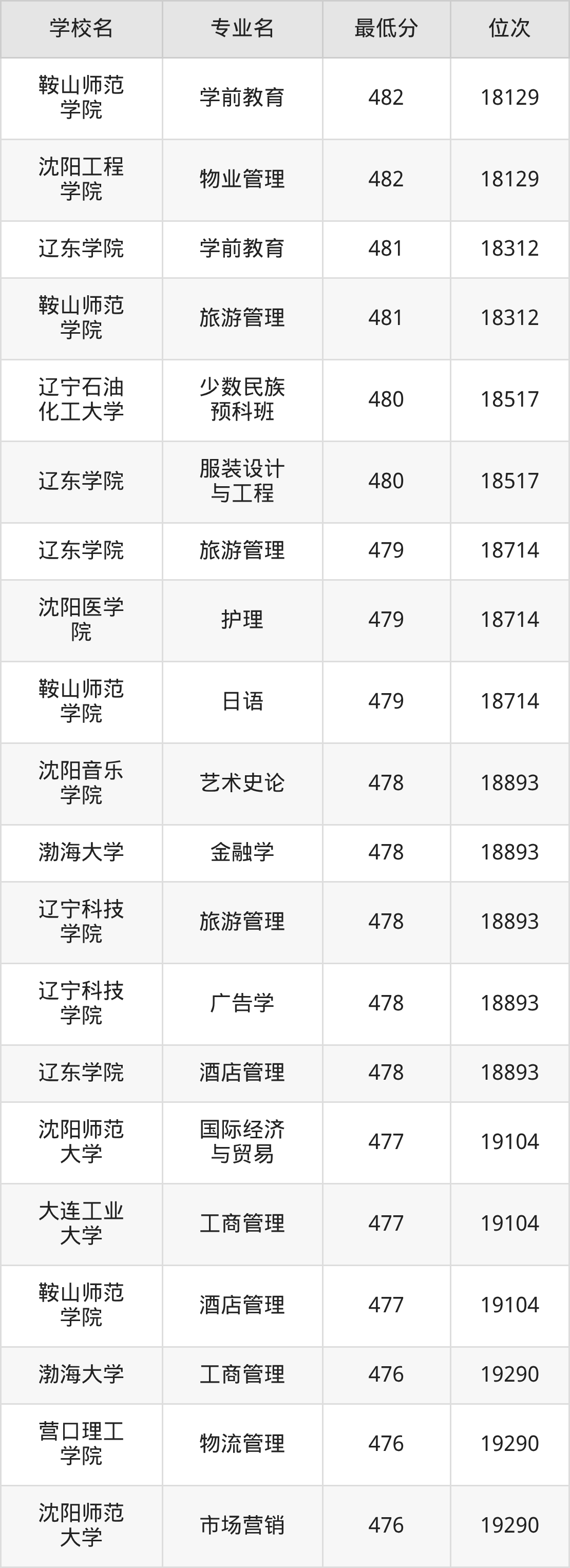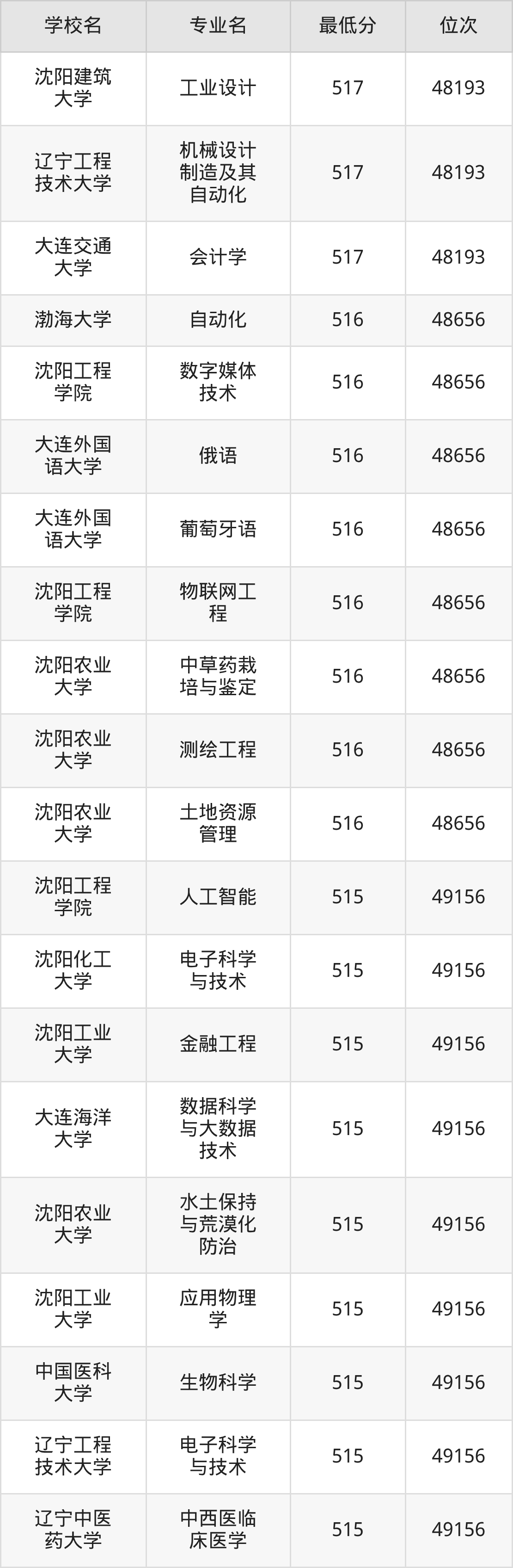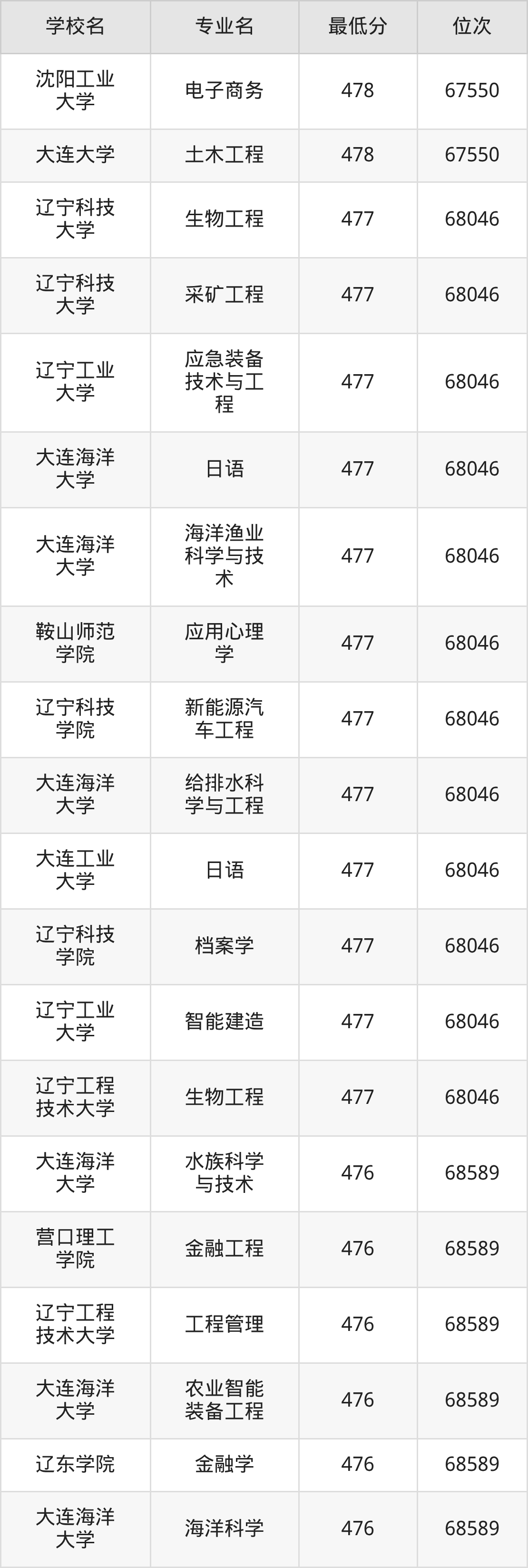 (1)大连工业大学:2025年公办本科分数线477分到515分,位次区间是19104名到12329名,招生专业有8个,最低为工商管理、最高为英语。