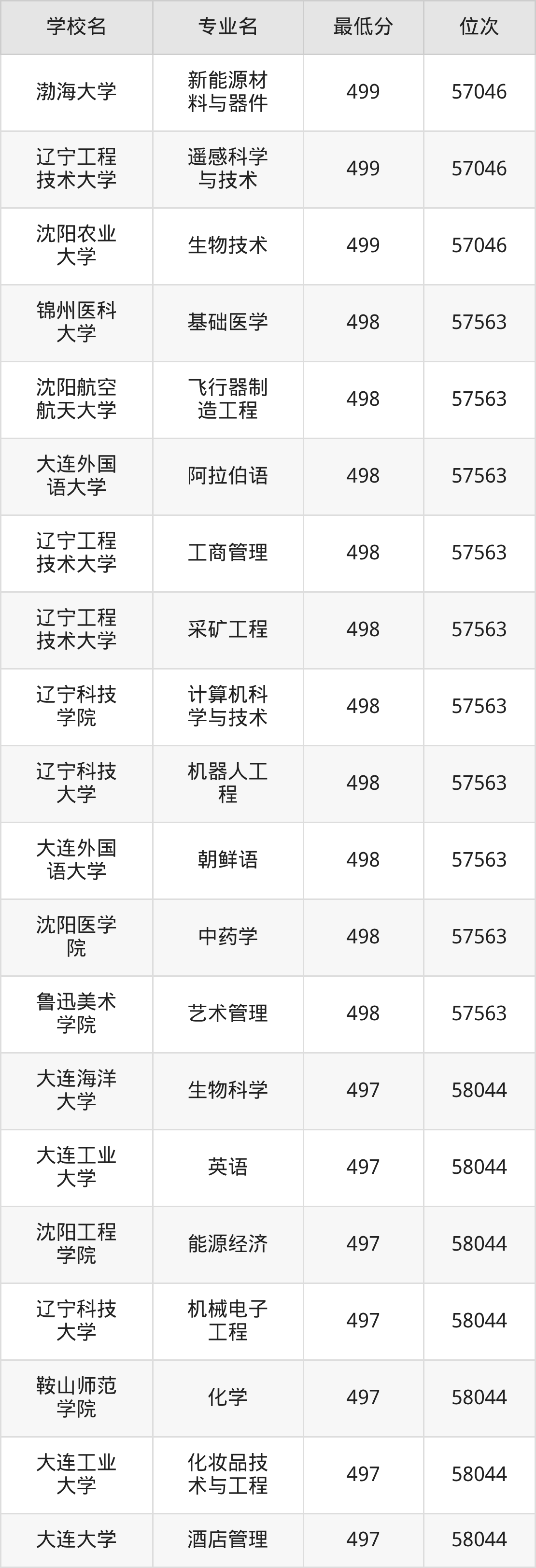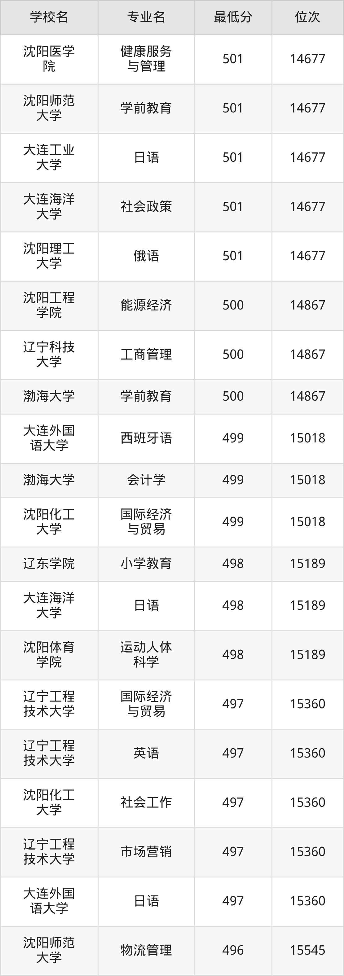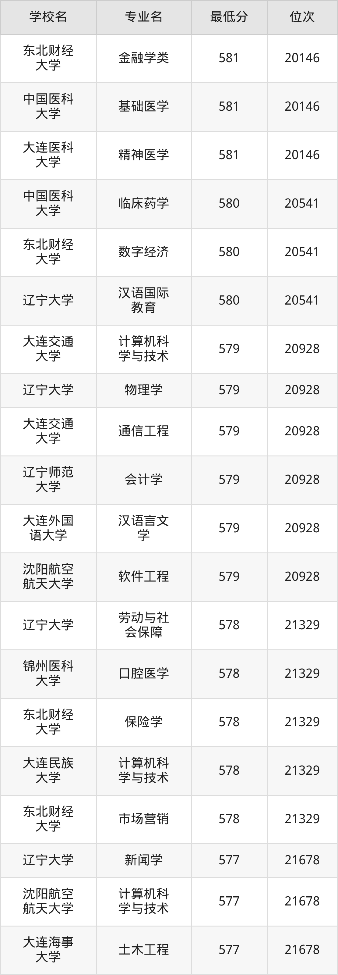 (4)大连外国语大学:2025年公办本科分数线497分到571分,位次区间是15360名到4523名,招生专业有26个,最低为日语、最高为汉语言文学。
