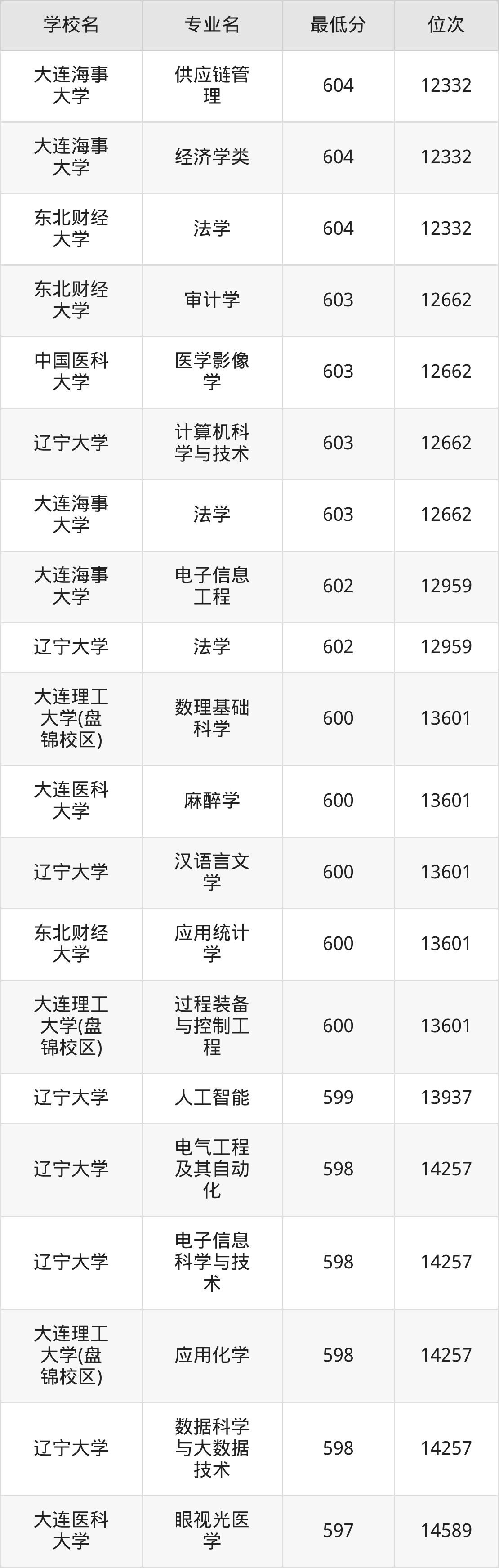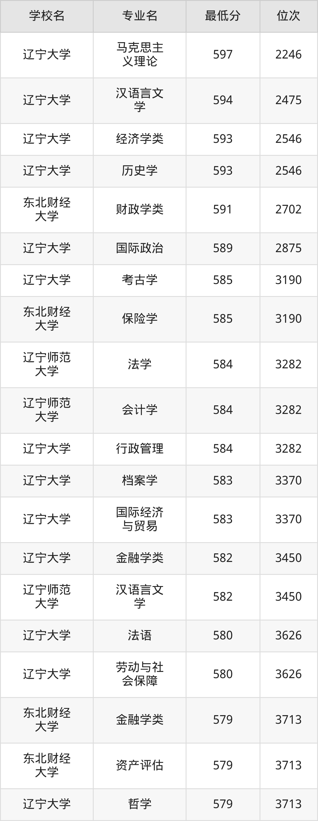 (2)东北财经大学:2025年公办本科分数线555分到606分,位次区间是6368名到1643名,招生专业有14个,最低为工商管理、最高为审计学。