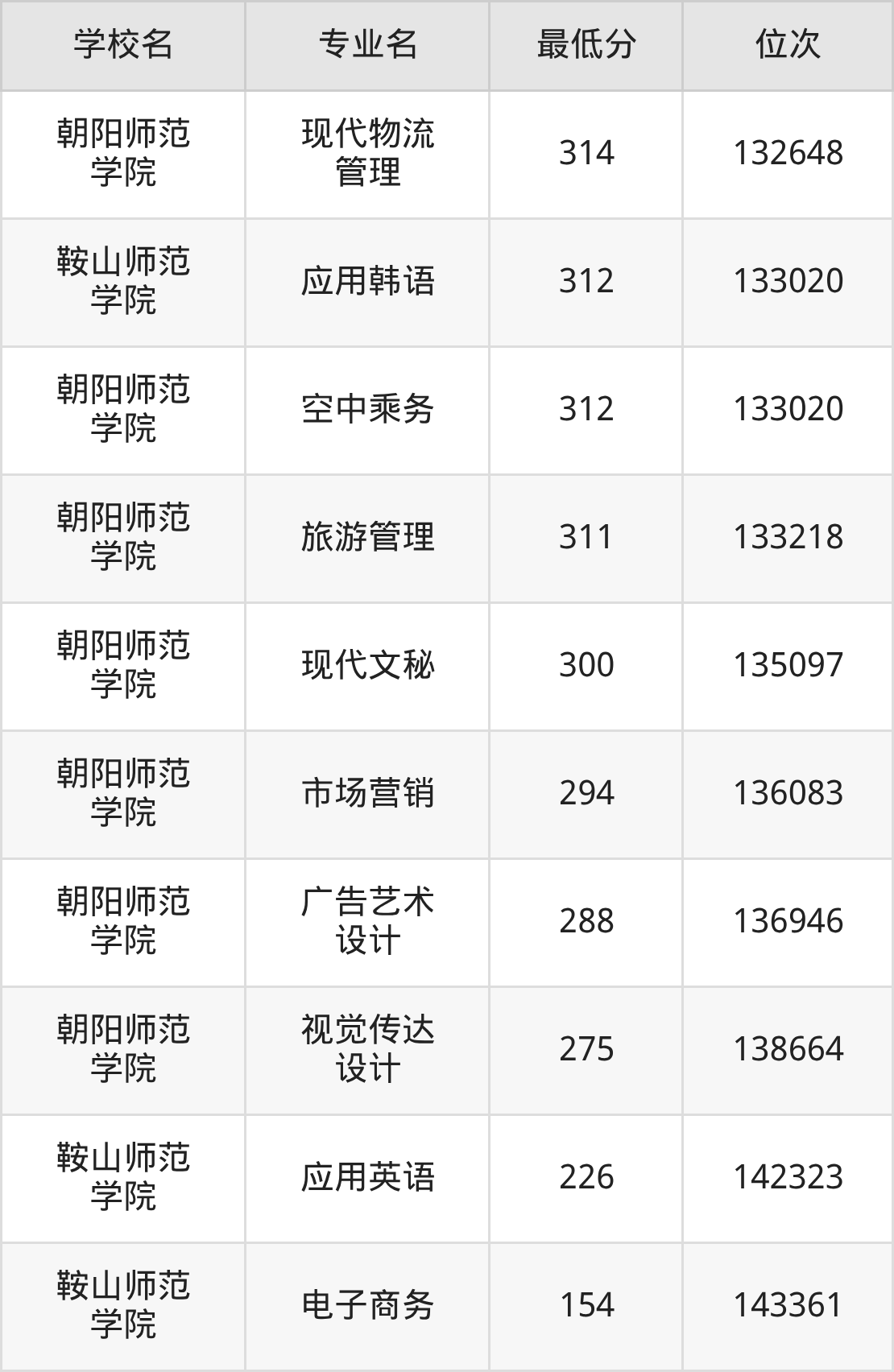 2025年辽宁公办本科物理类最低录取分数线是154分,位次排名是143361名,对应收分最低的是鞍山师范学院(电子商务专业)。录取分数线最高的是大连理工大学人工智能专业,2025年最低分659分、位次是1496名。