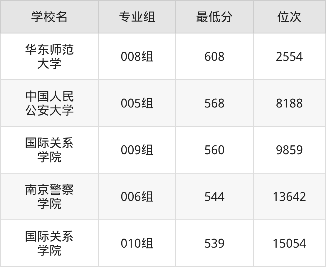 (4)南京警察学院:2025年国家专项计划分数线544分,位次是13642名,招生专业组有1个,最低为006组。