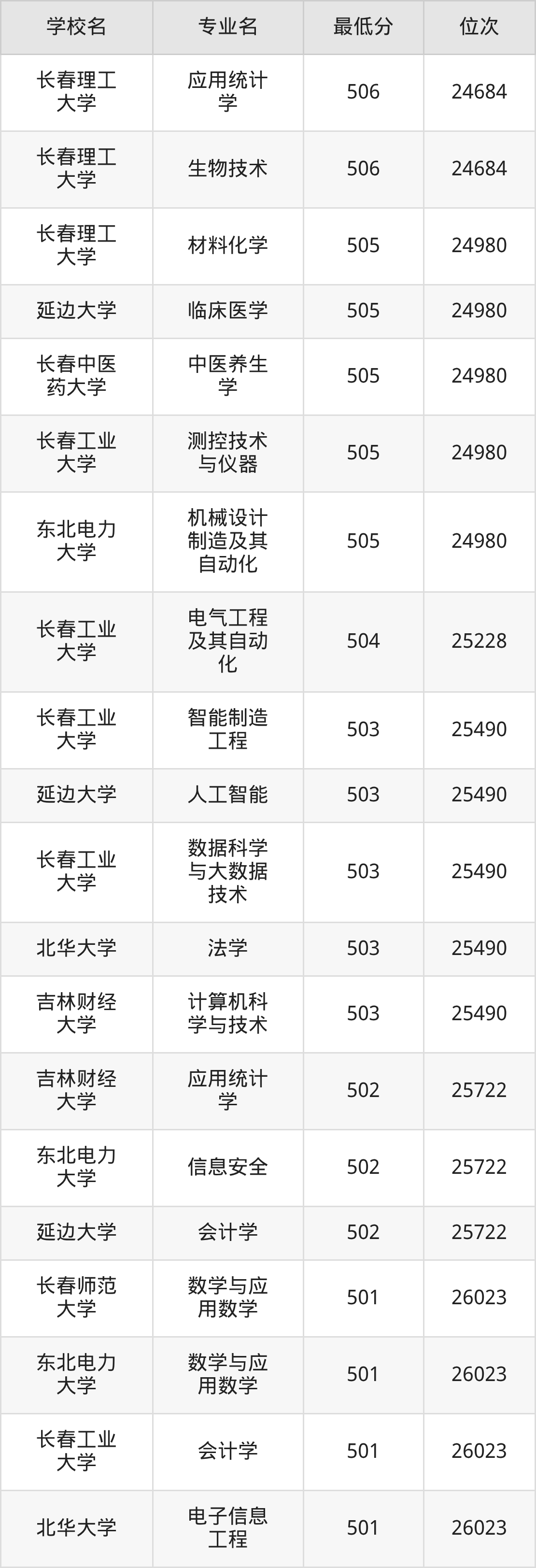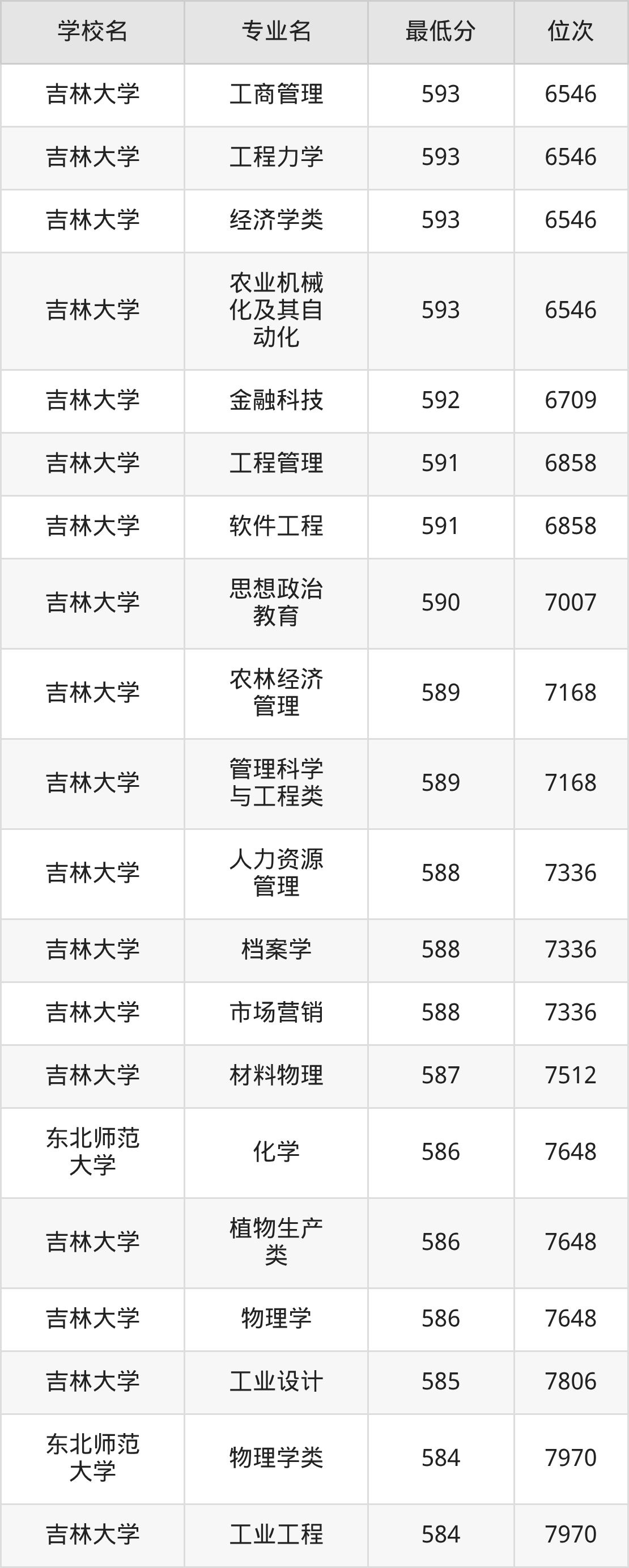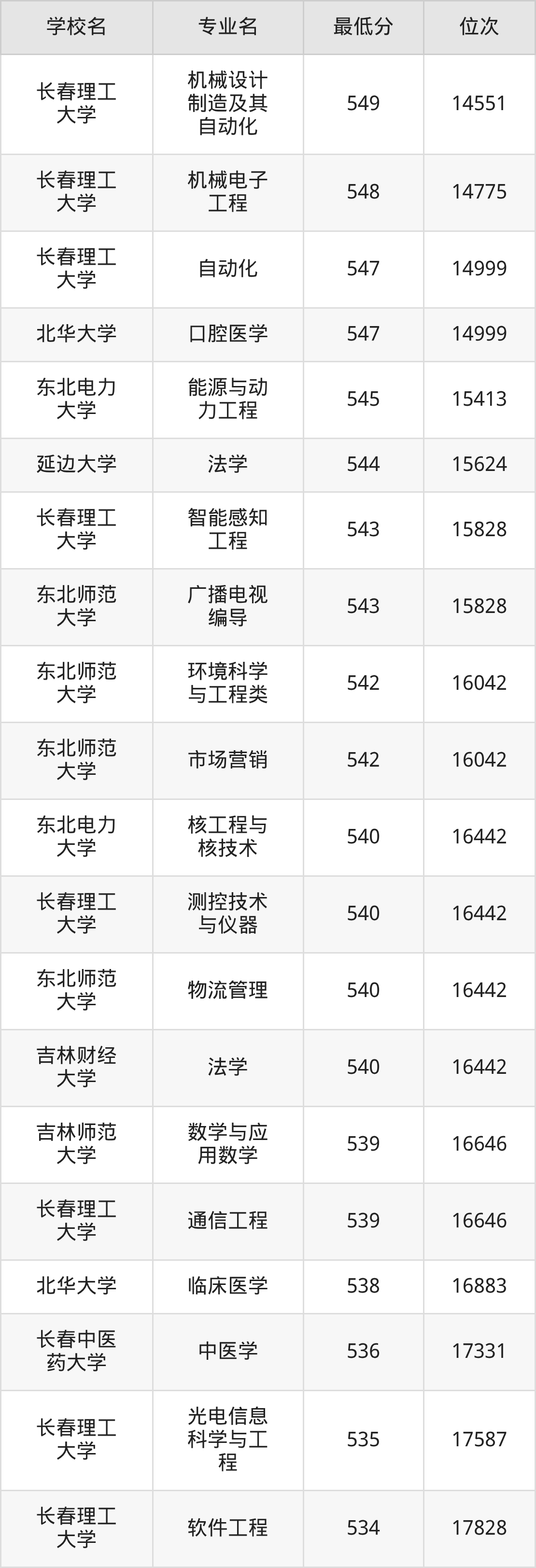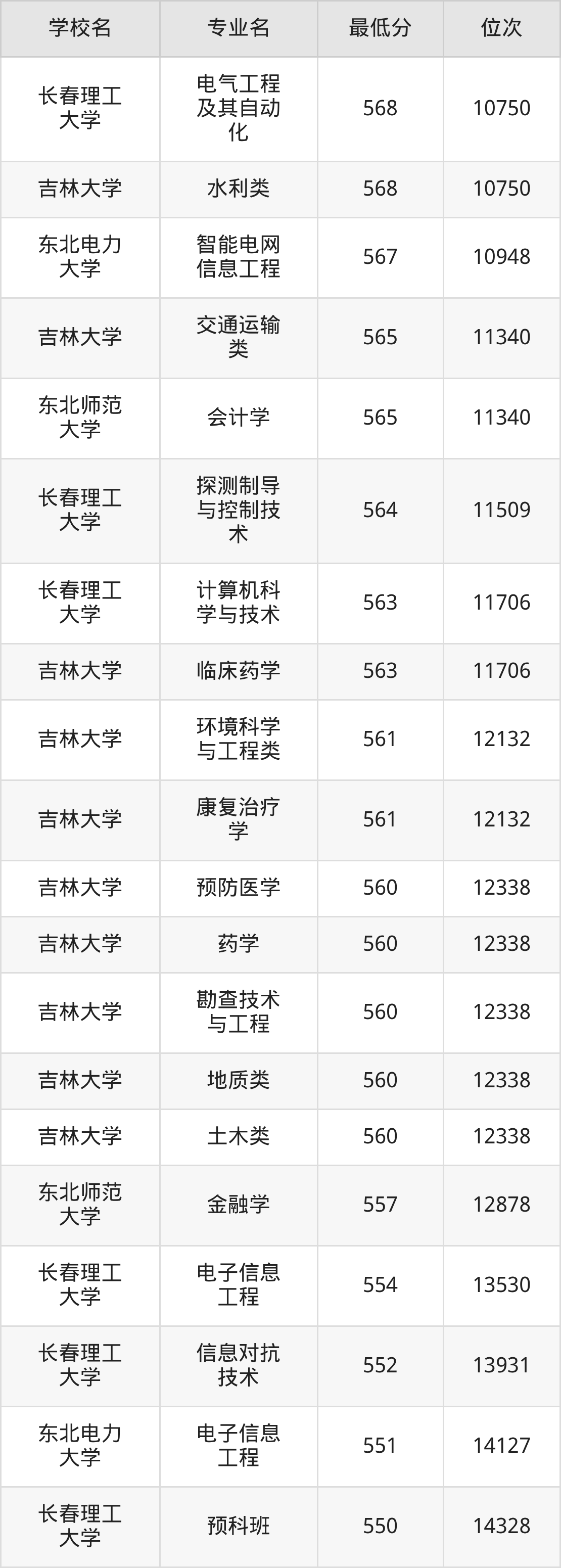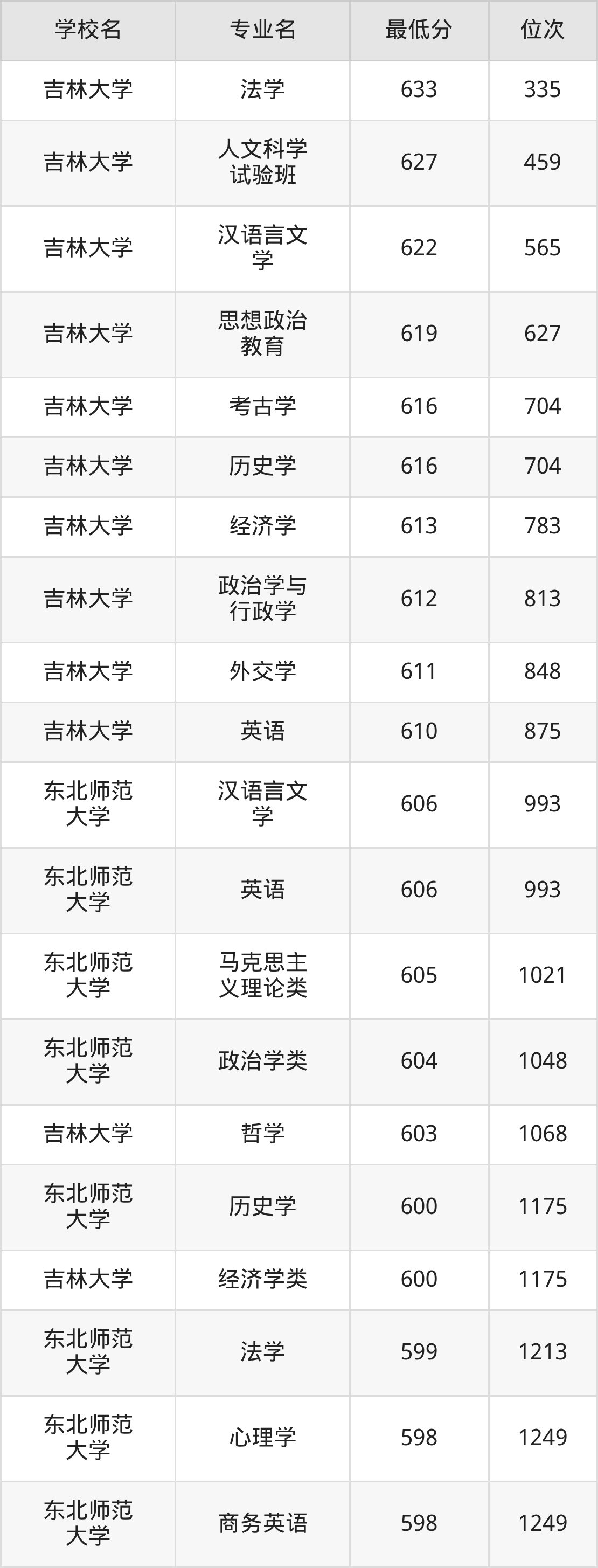 二、吉林公办本科录取分数线(历史类)