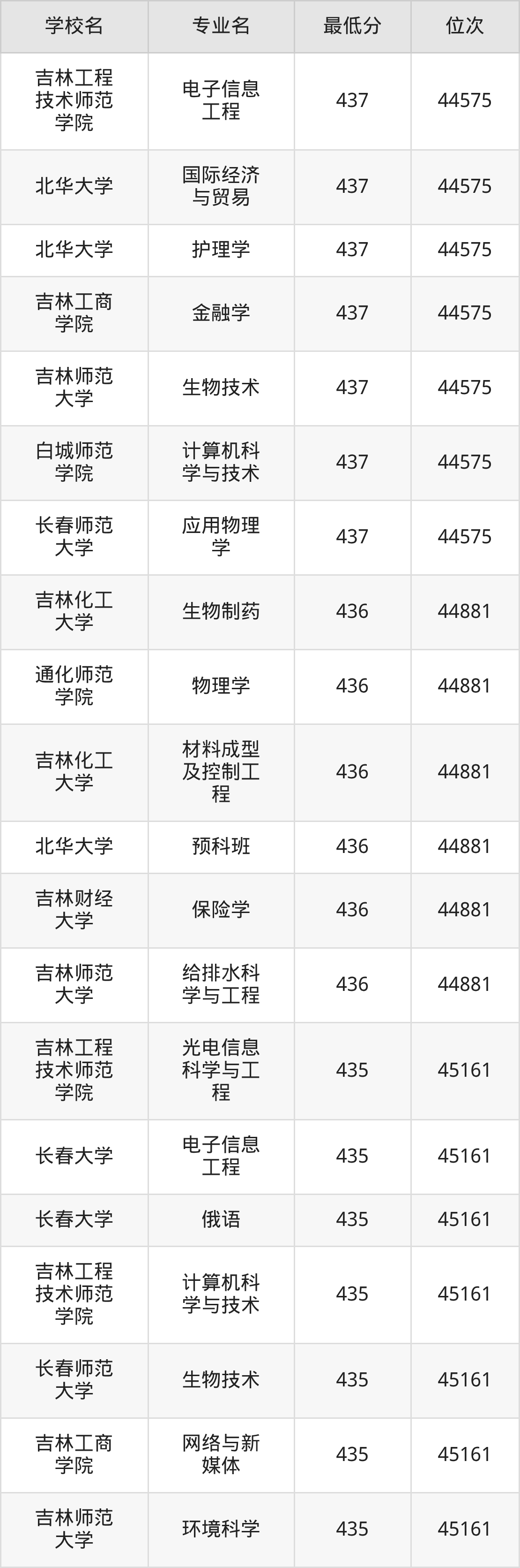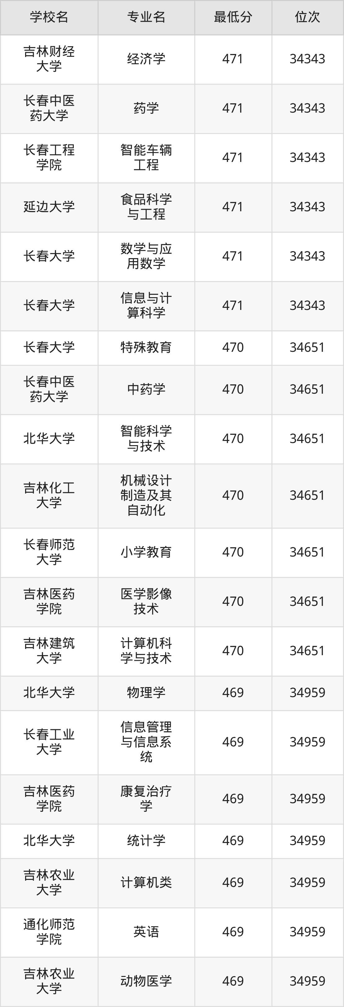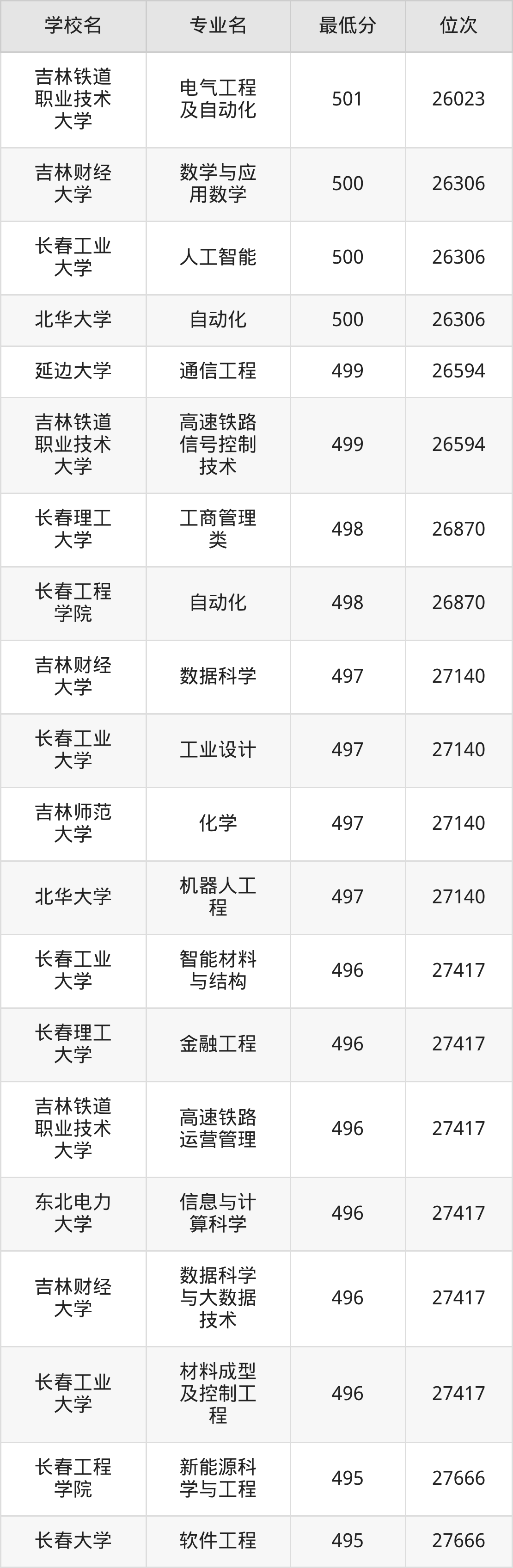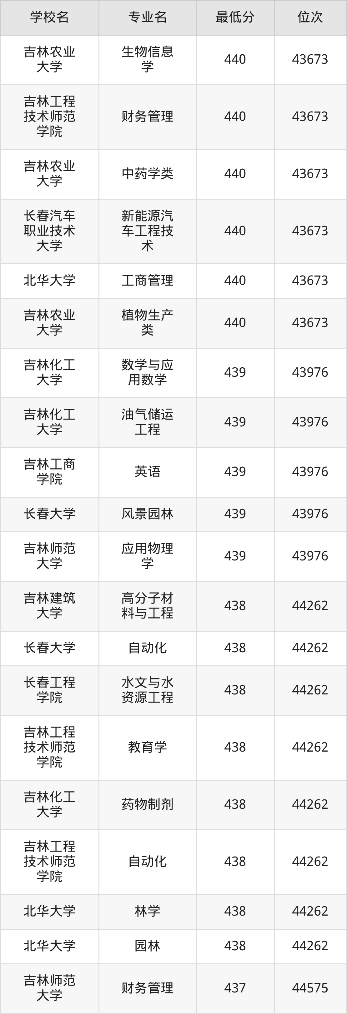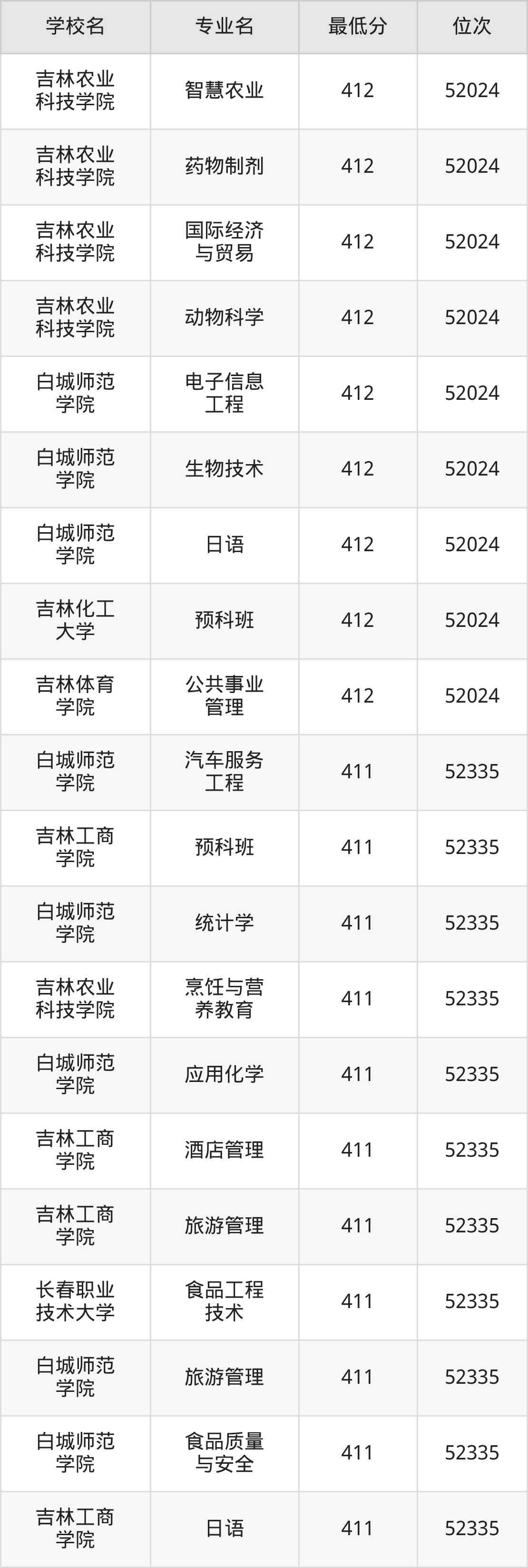 (4)吉林财经大学:2025年公办本科分数线421分到540分,位次区间是49343名到16442名,招生专业有39个,最低为朝鲜语、日语、最高为法学。