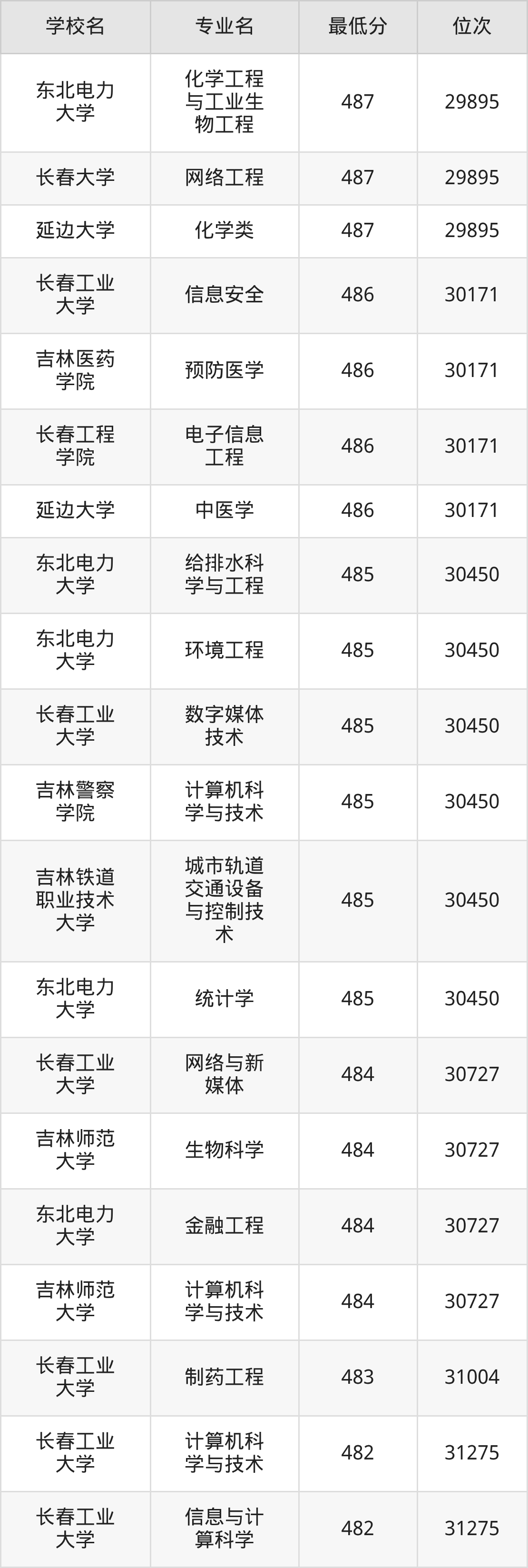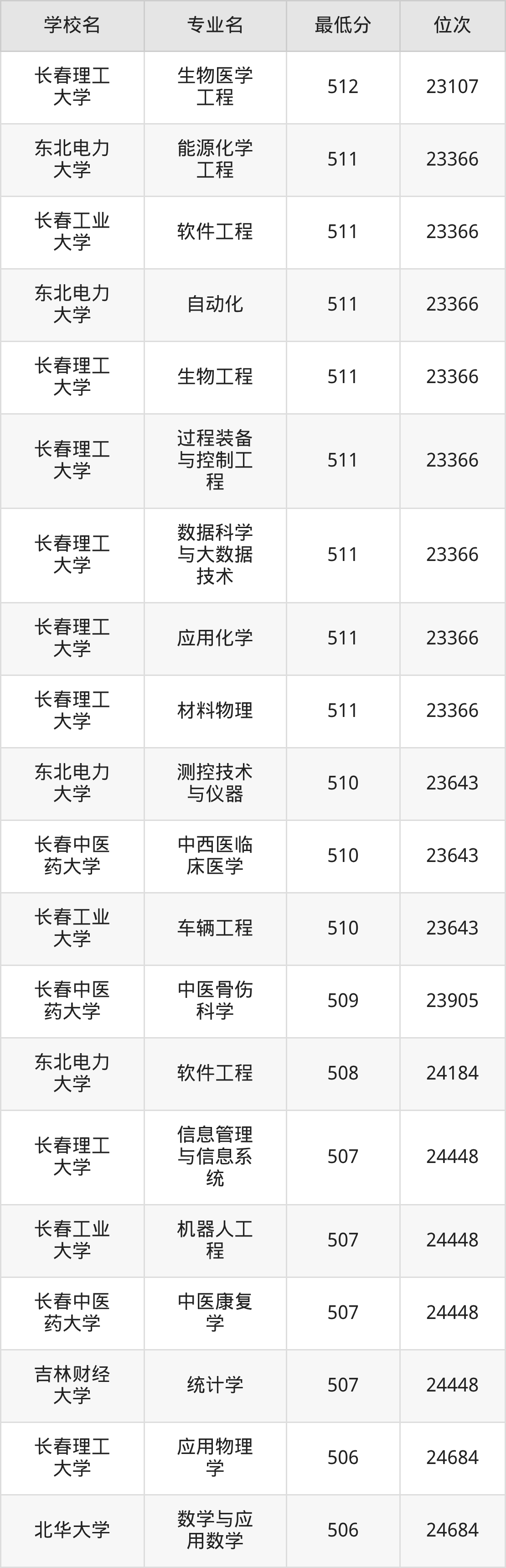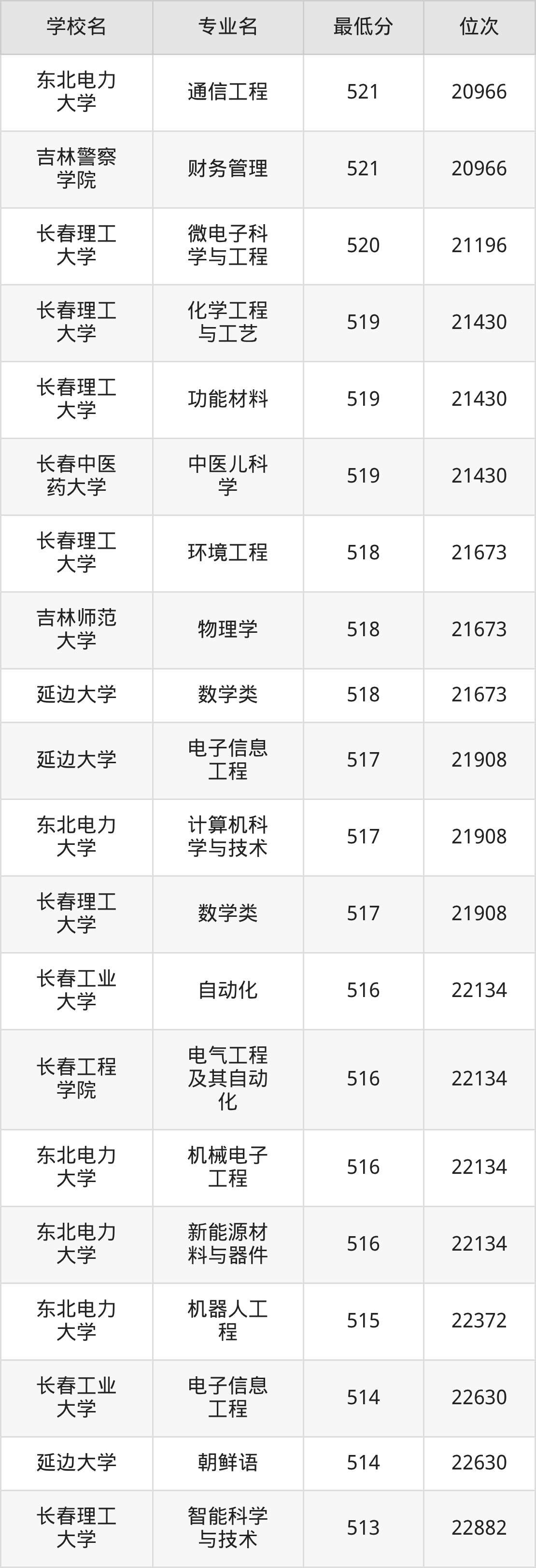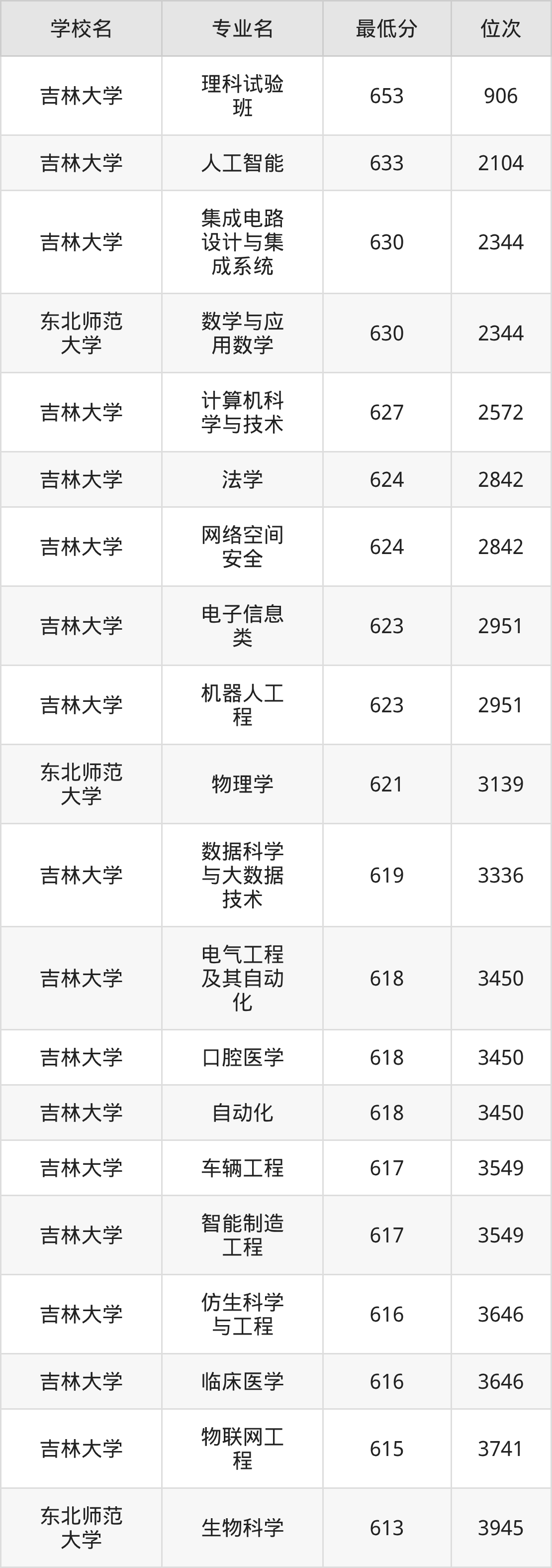 一、吉林公办本科录取分数线(物理类)
