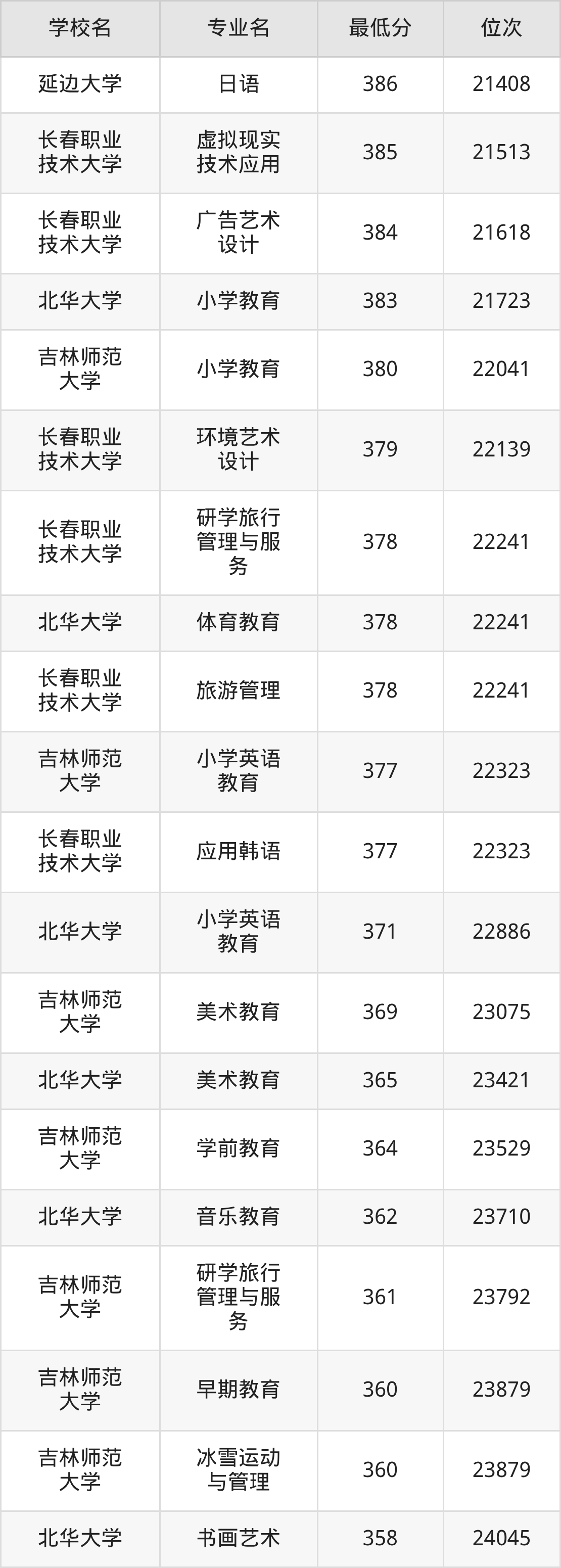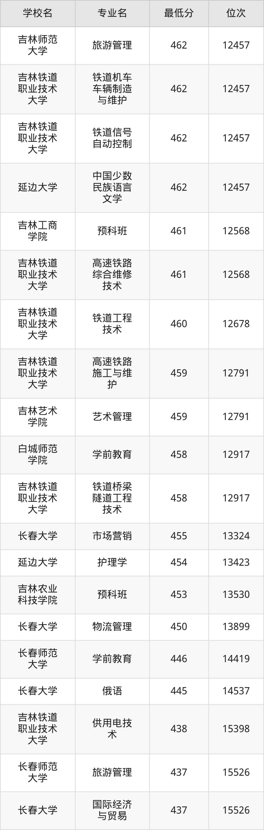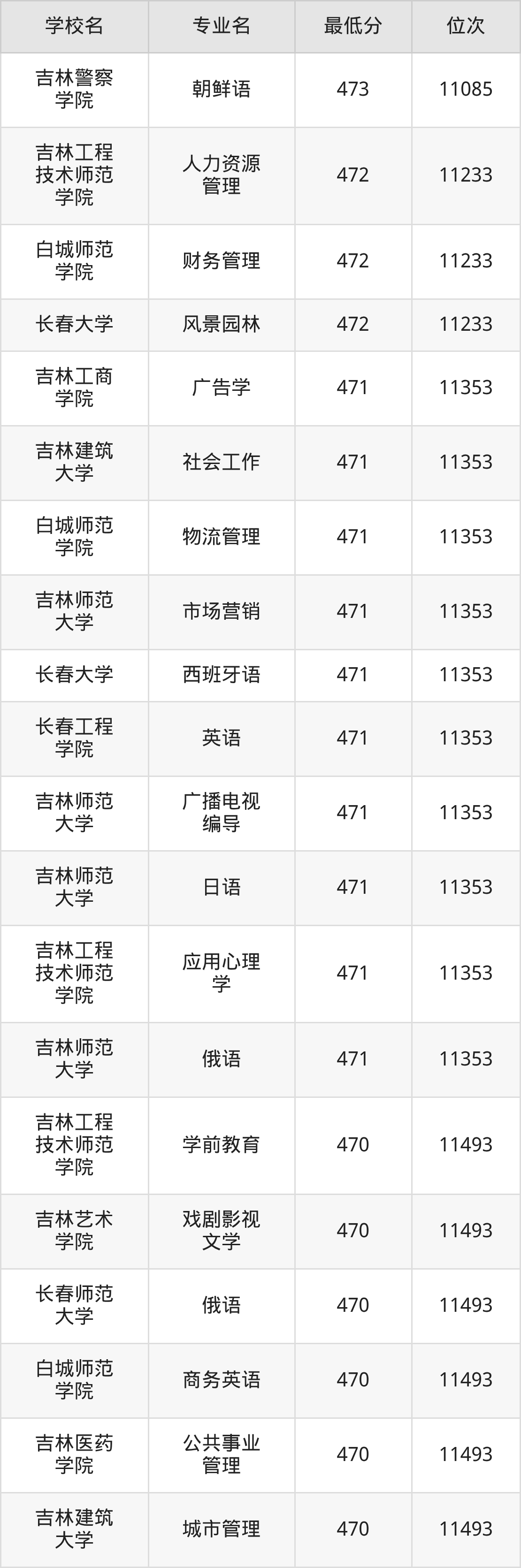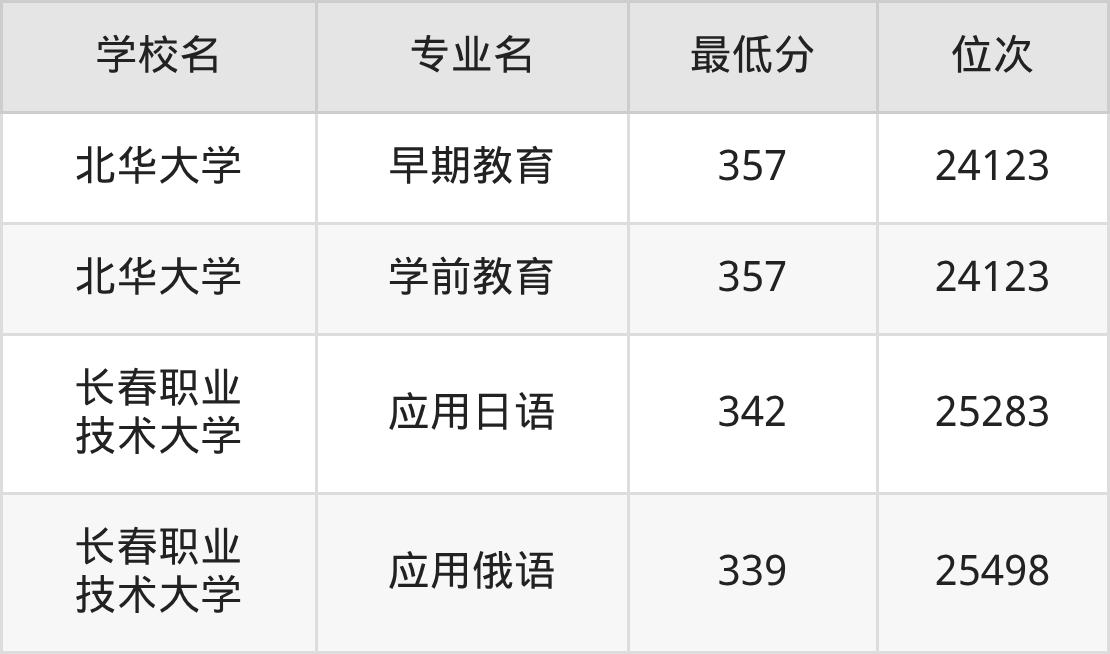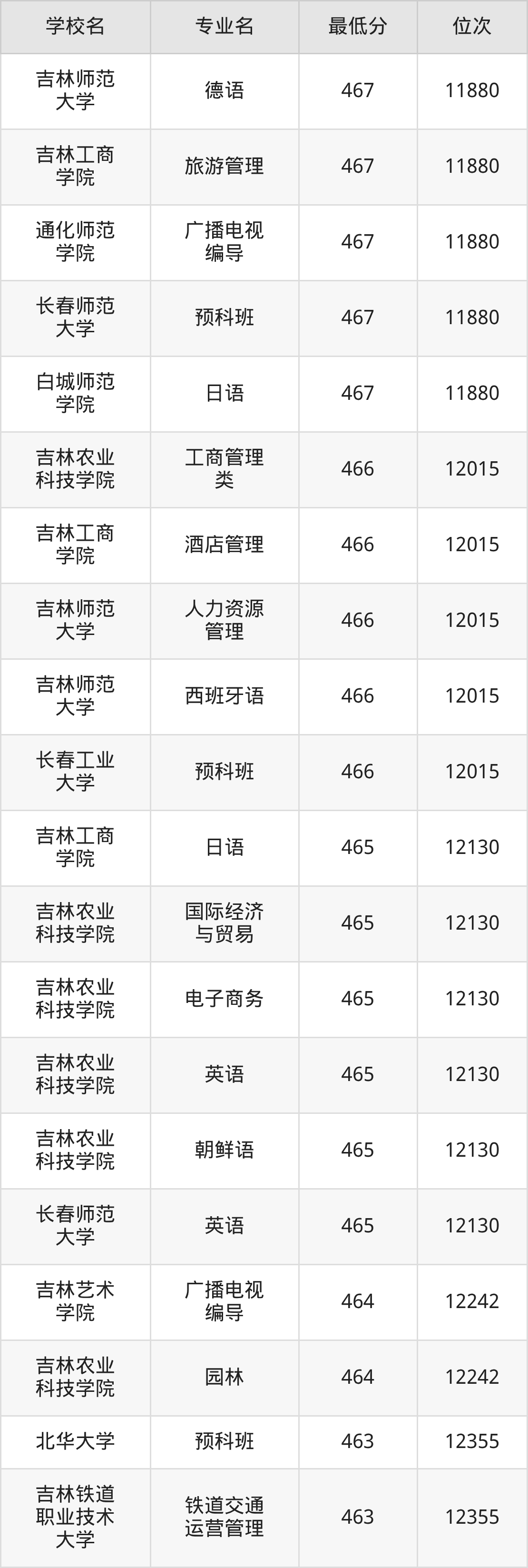 (6)吉林艺术学院:2025年公办本科分数线459分到470分,位次区间是12791名到11493名,招生专业有3个,最低为艺术管理、最高为戏剧影视文学。