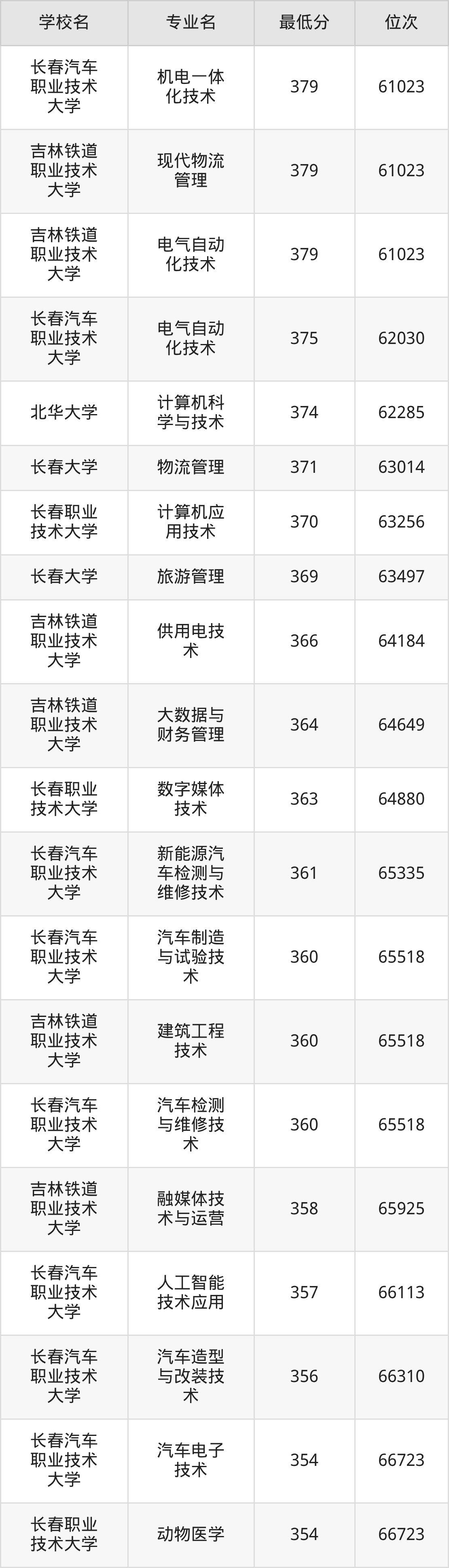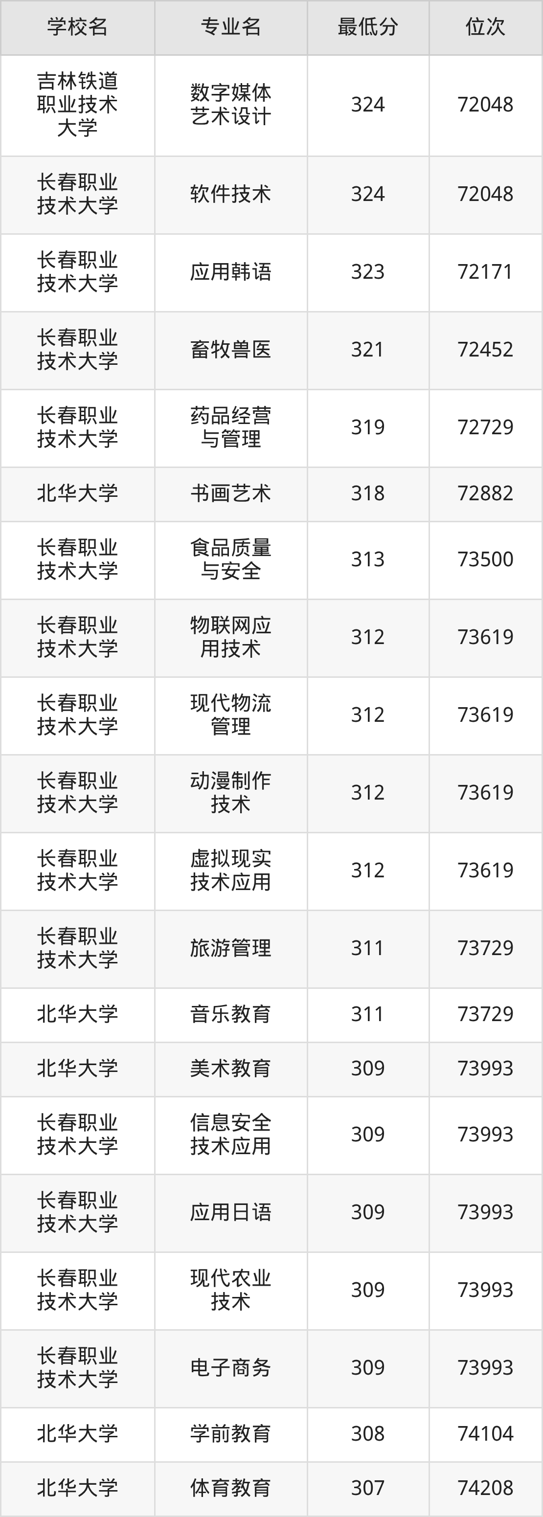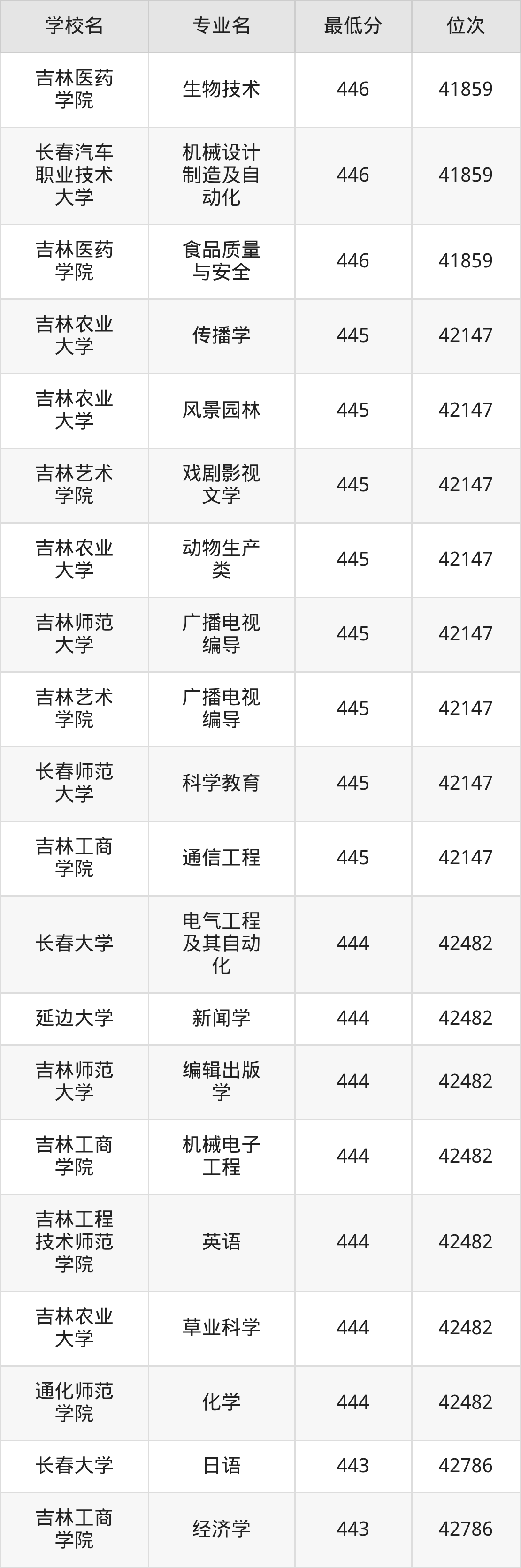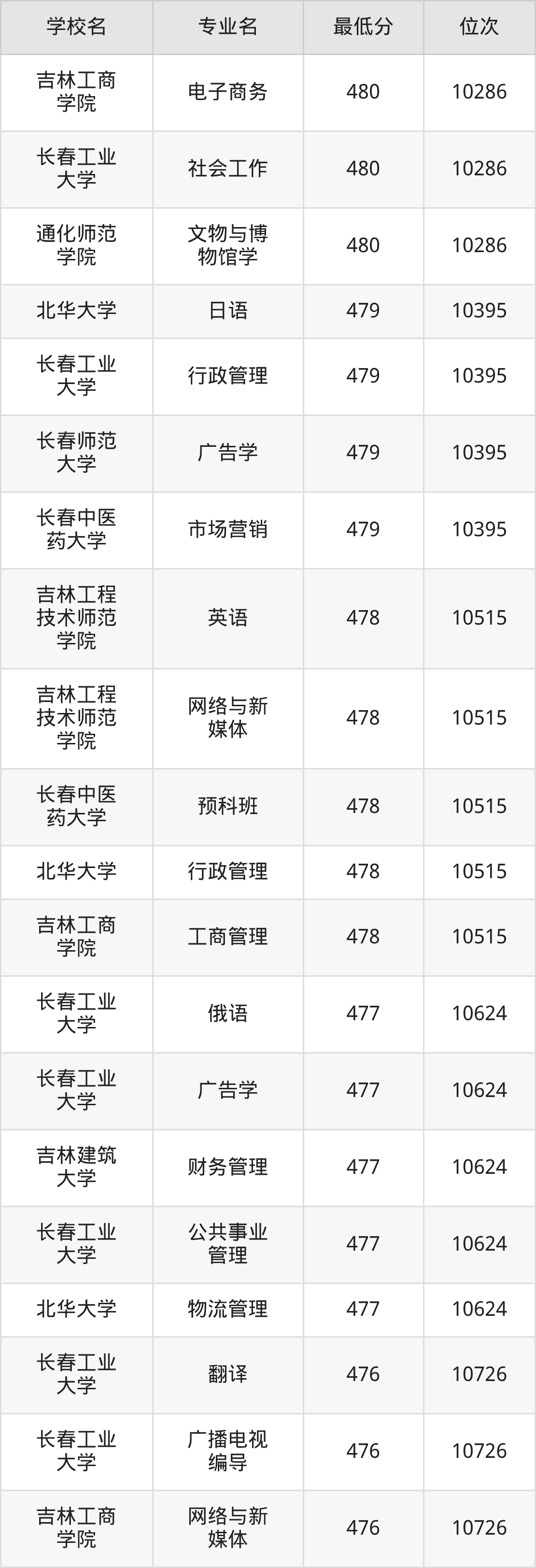 (6)吉林艺术学院:2025年公办本科分数线459分到470分,位次区间是12791名到11493名,招生专业有3个,最低为艺术管理、最高为戏剧影视文学。
