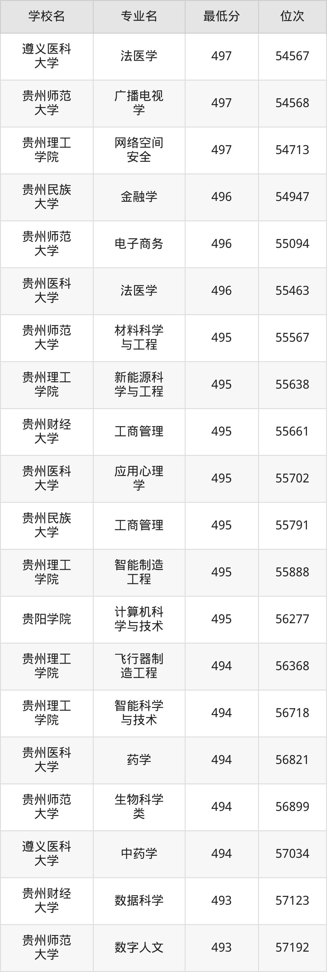(3)贵州医科大学:2025年公办本科分数线513分到550分,位次区间是17366名到8429名,招生专业有5个,最低为市场营销、最高为法学。