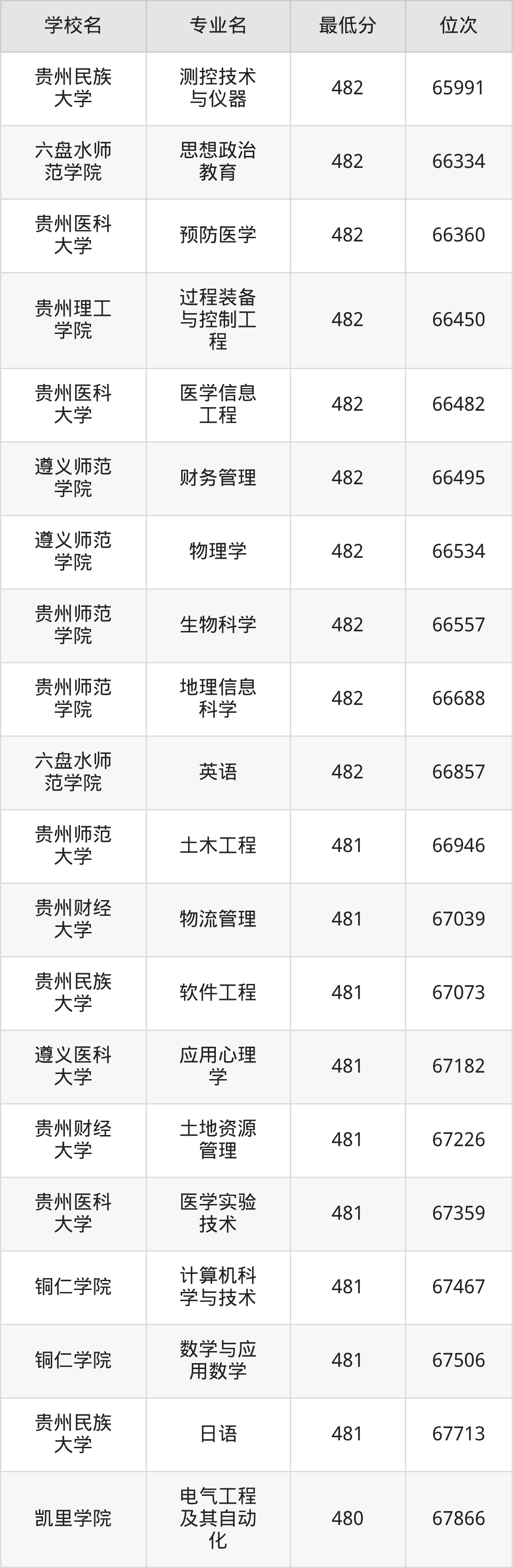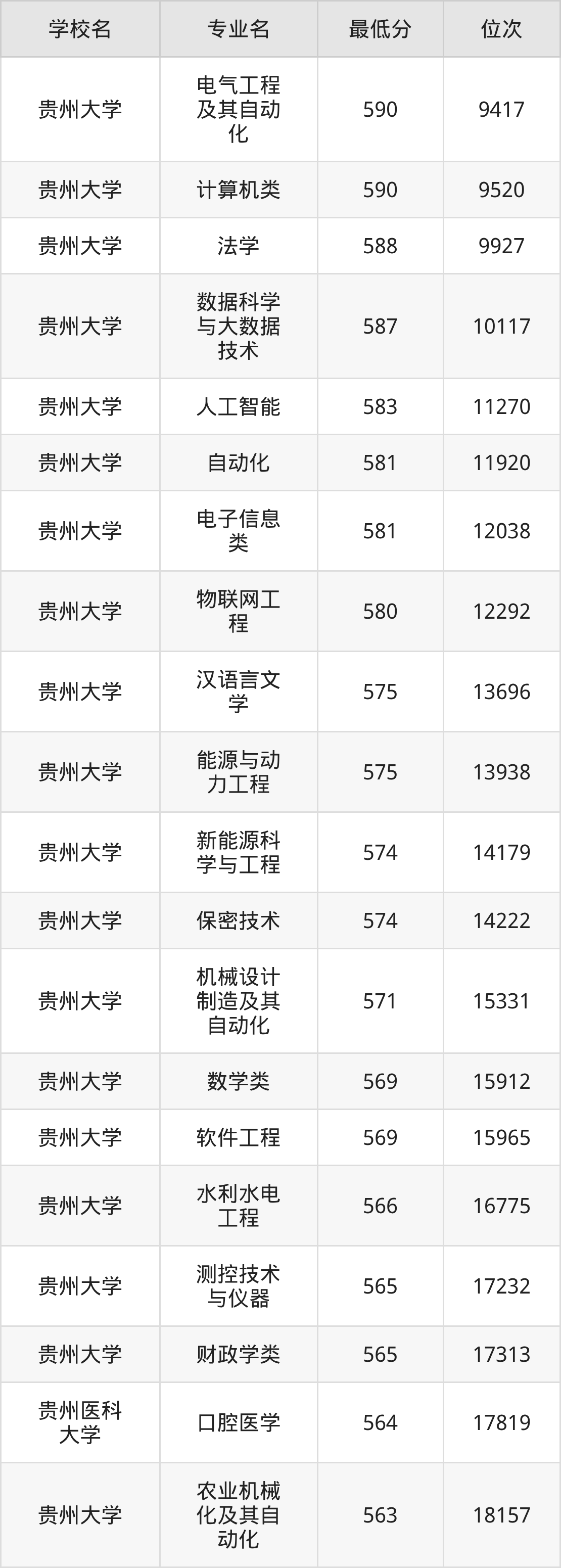 一、贵州公办本科录取分数线(物理类)