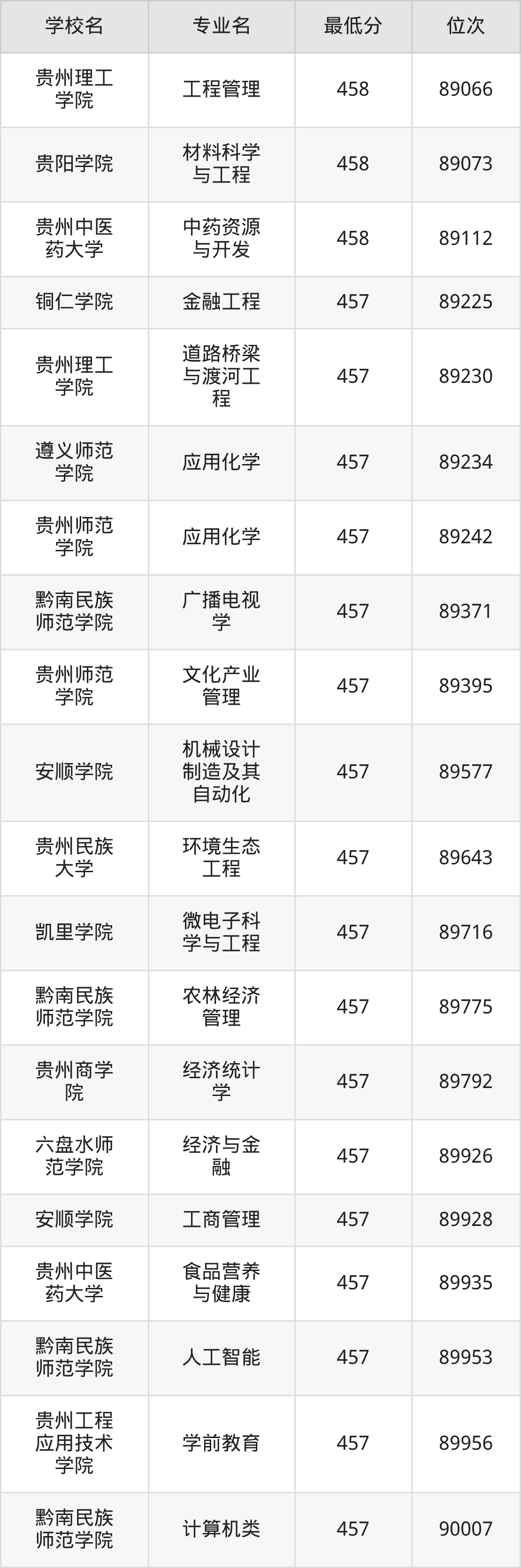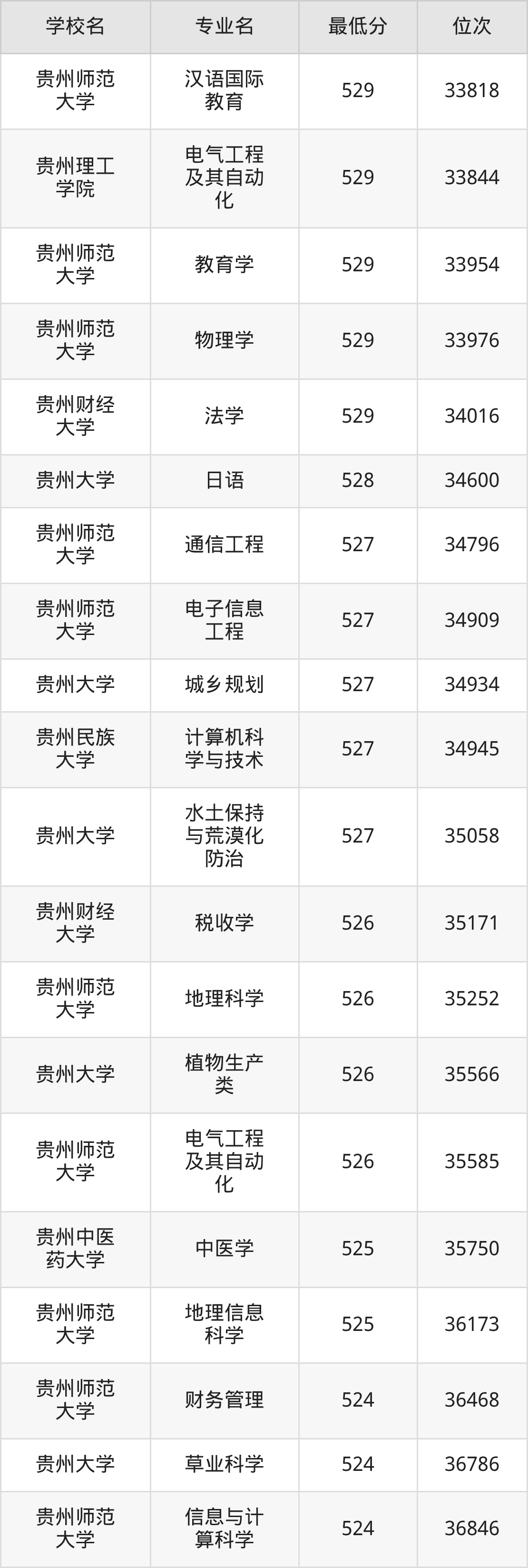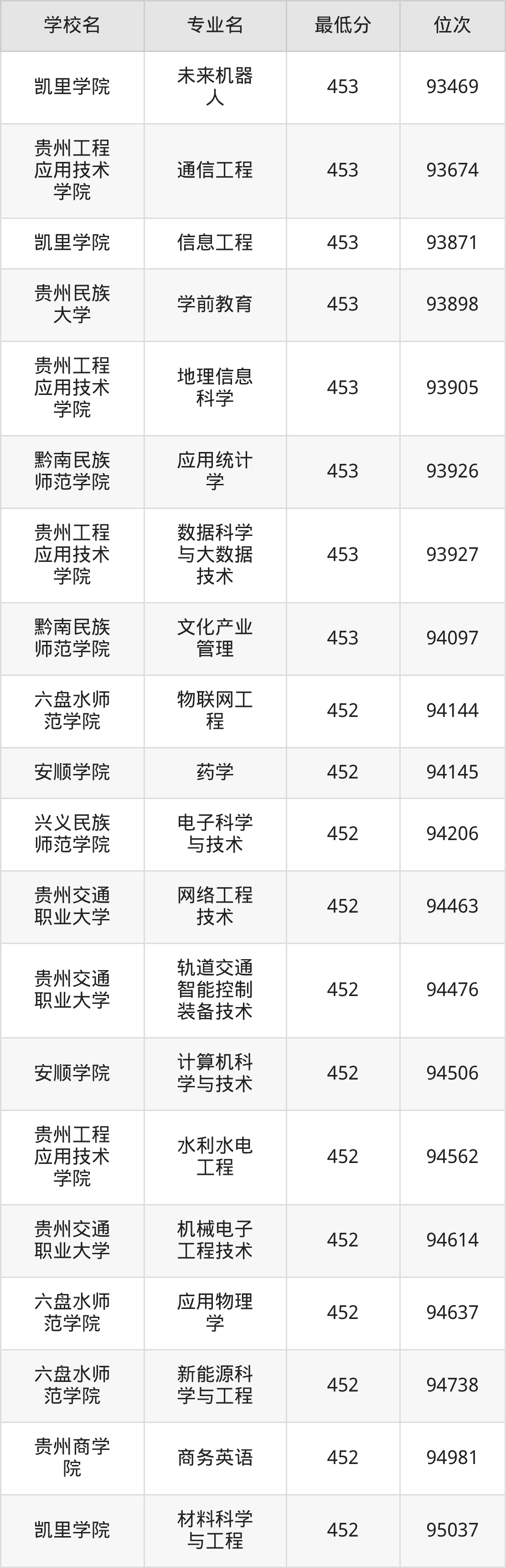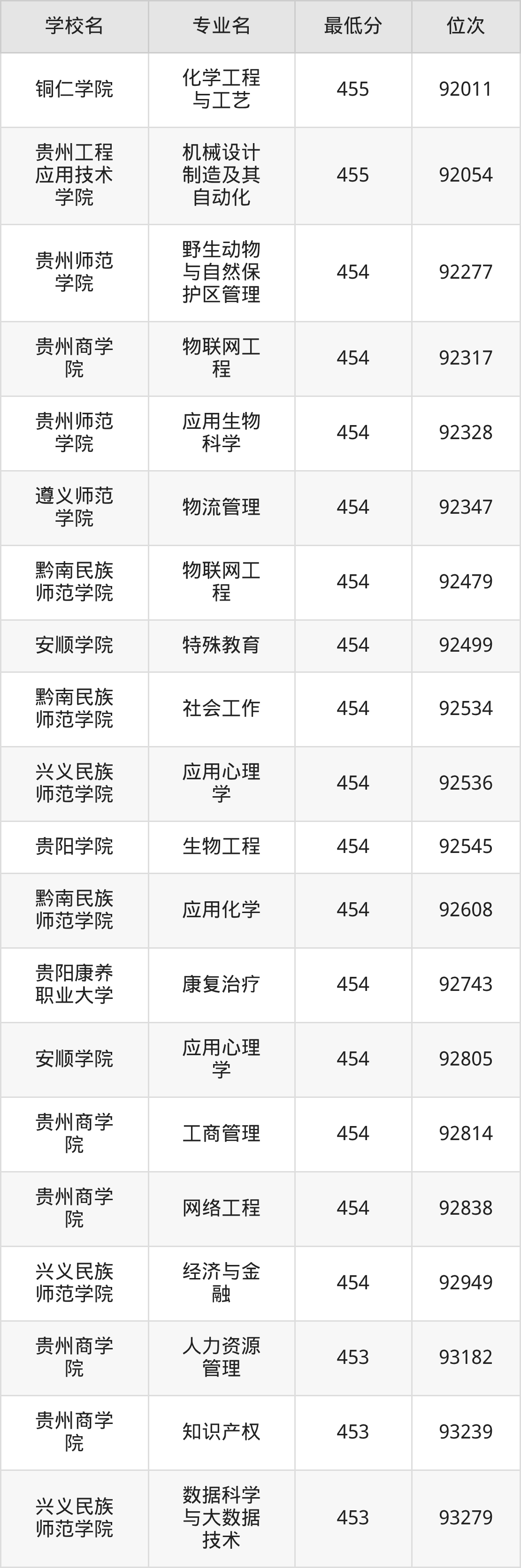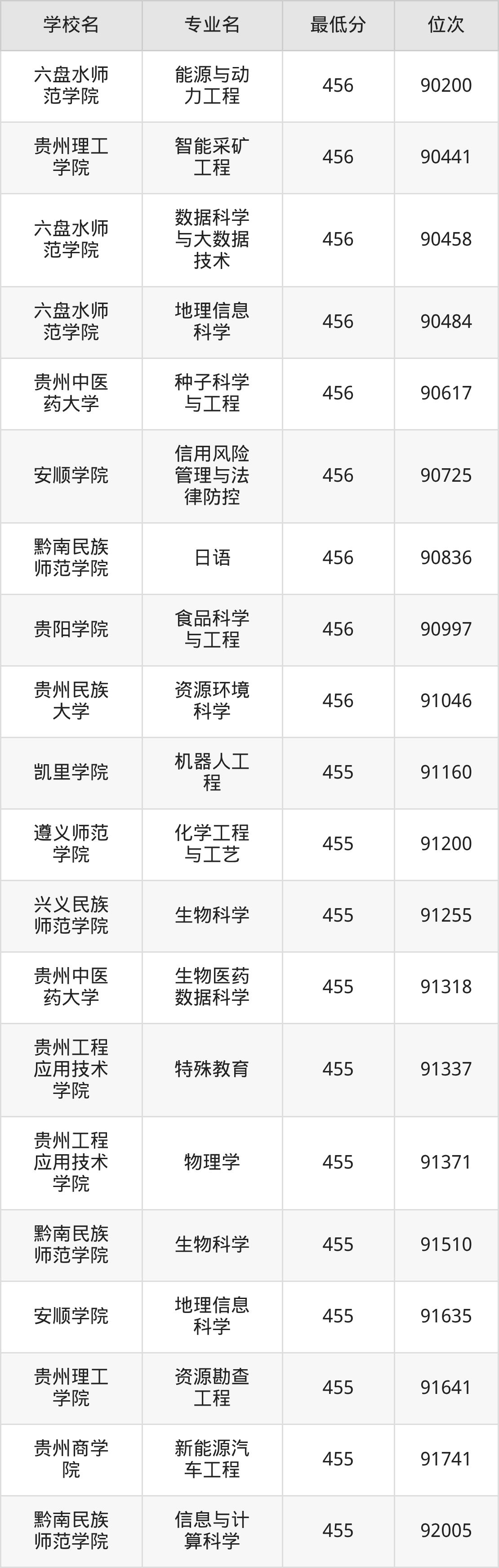 (2)贵州理工学院:2025年公办本科分数线455分到529分,位次区间是91641名到33844名,招生专业有38个,最低为资源勘查工程、最高为电气工程及其自动化。