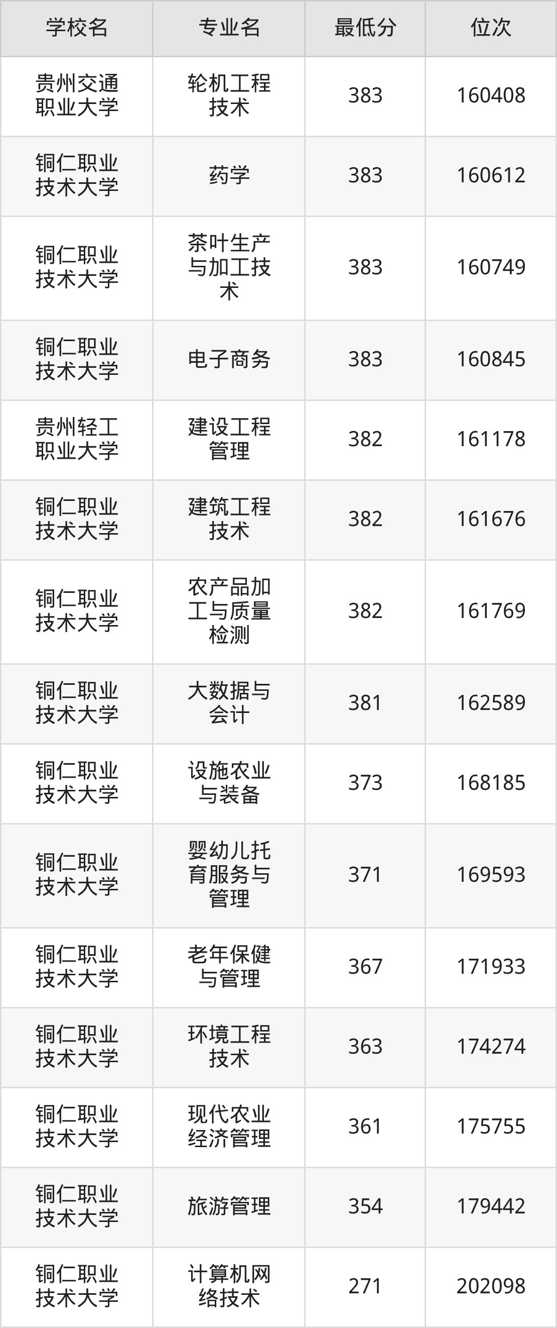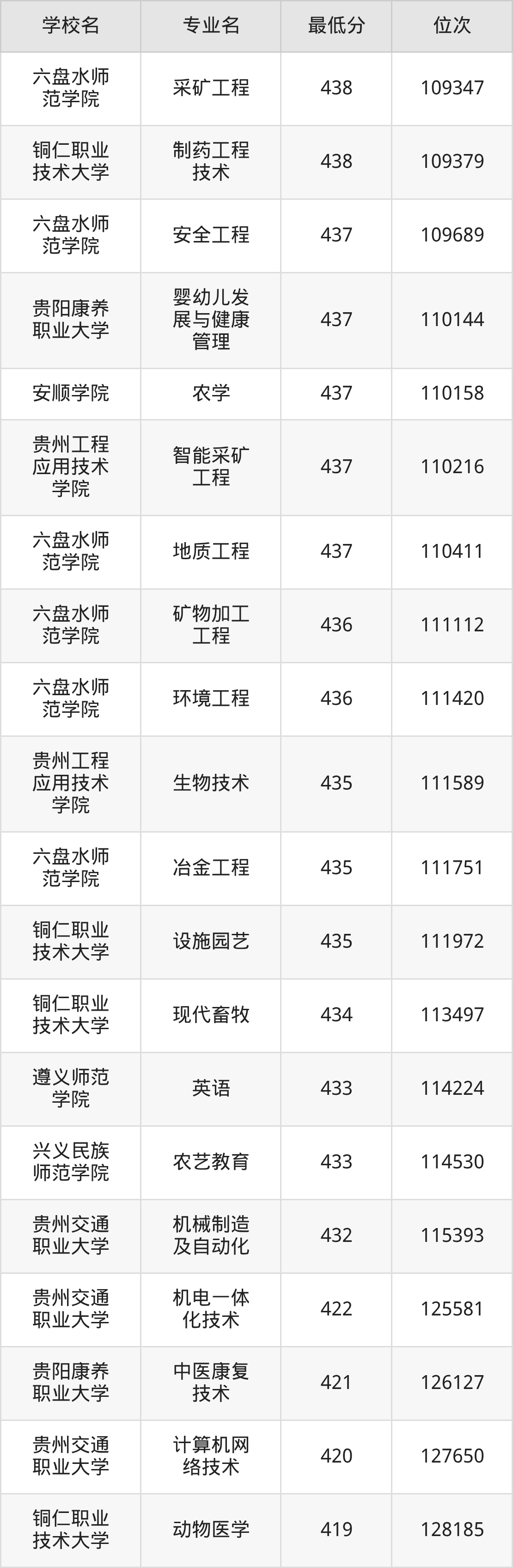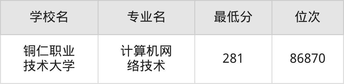 (1)铜仁职业技术大学:2025年公办本科分数线281分到487分,位次区间是86870名到26832名,招生专业有25个,最低为计算机网络技术、最高为设施园艺。