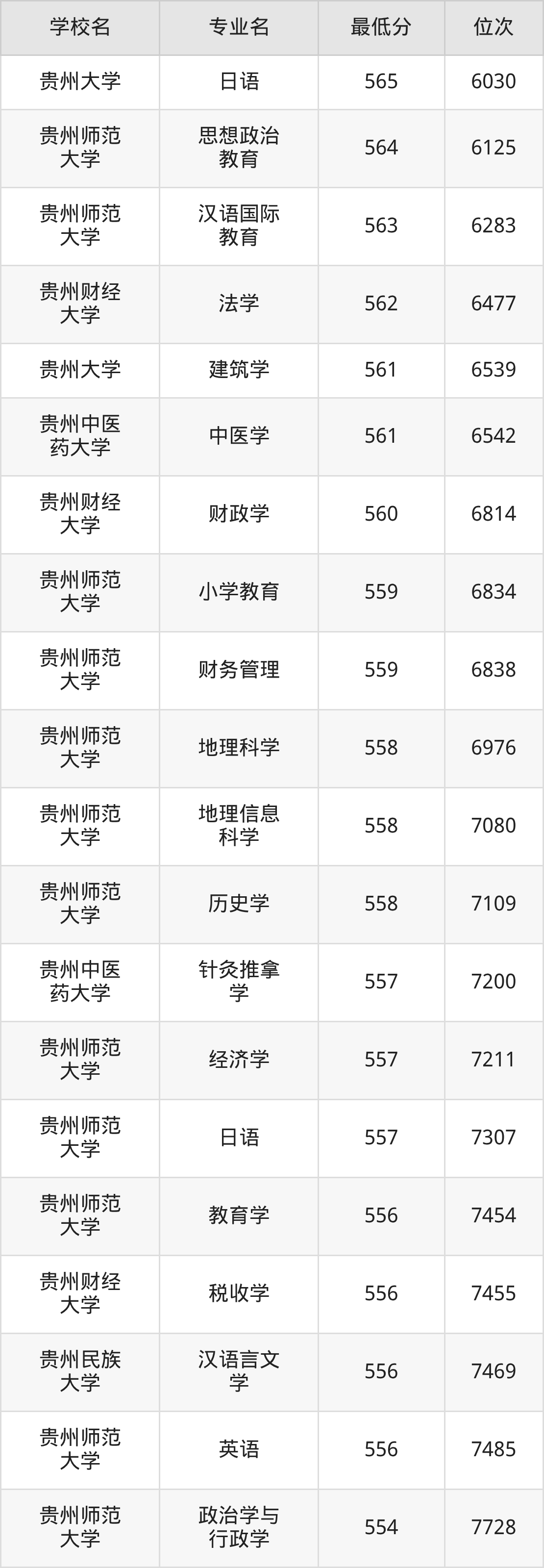本文整理贵州公办本科学校名单及录取分数线汇总,包括各专业最低分,供2026届高考生查阅。