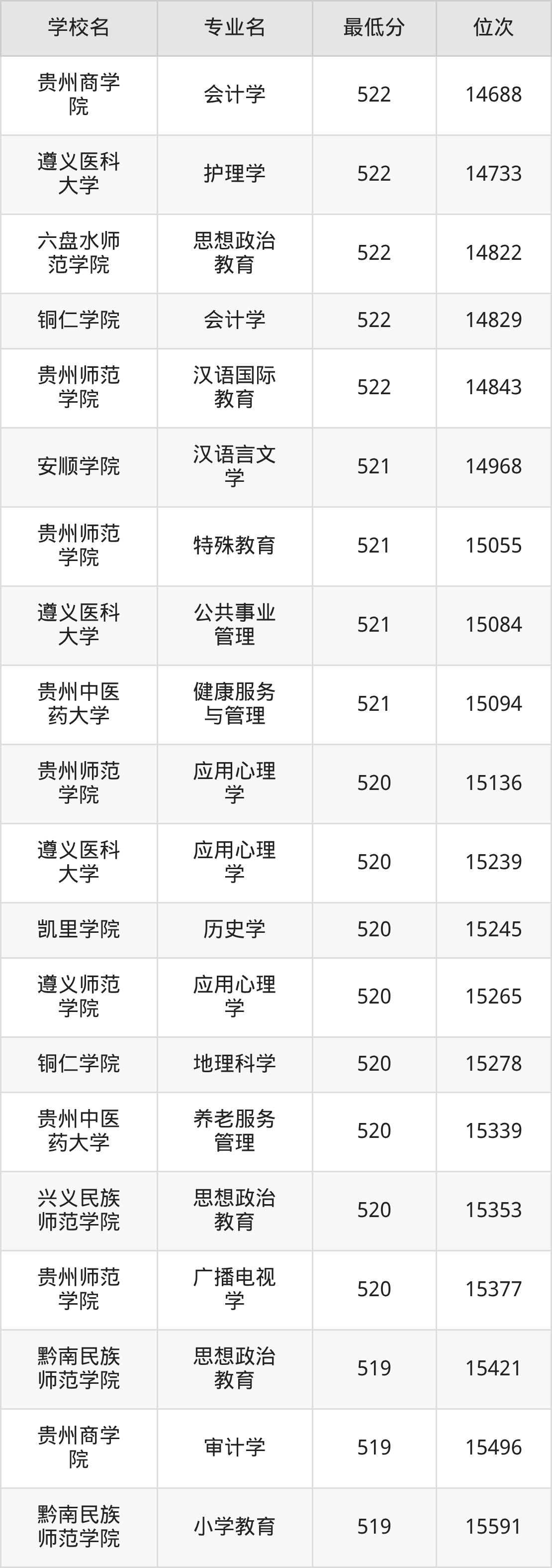 二、贵州公办本科录取分数线(历史类)