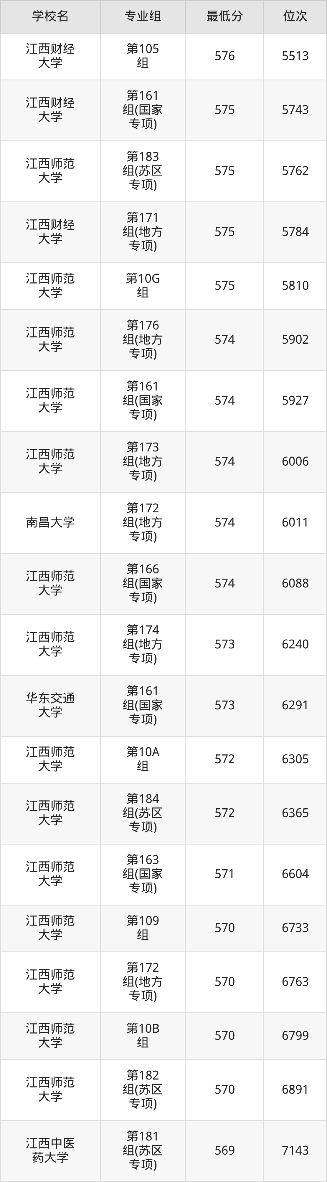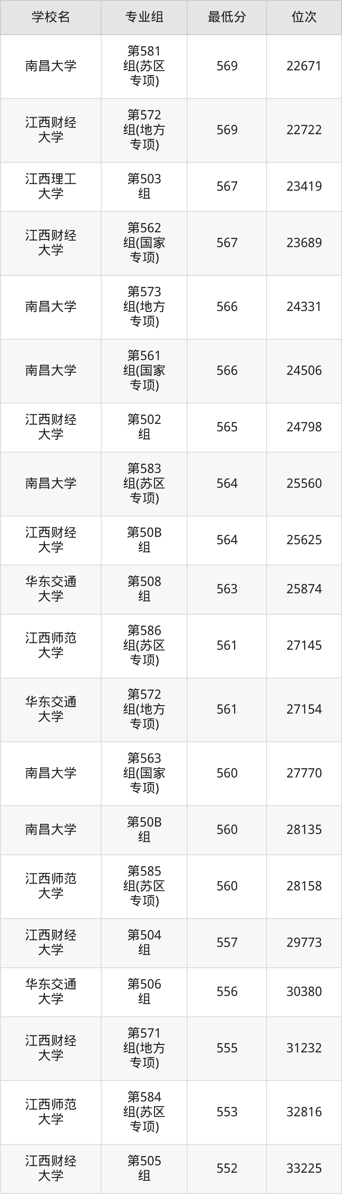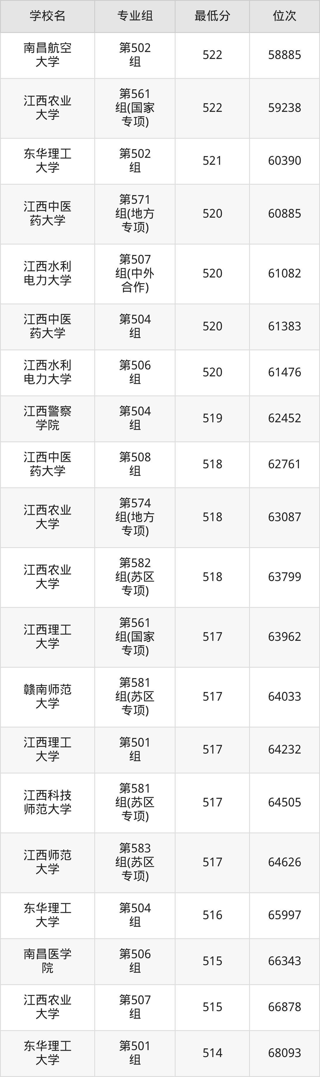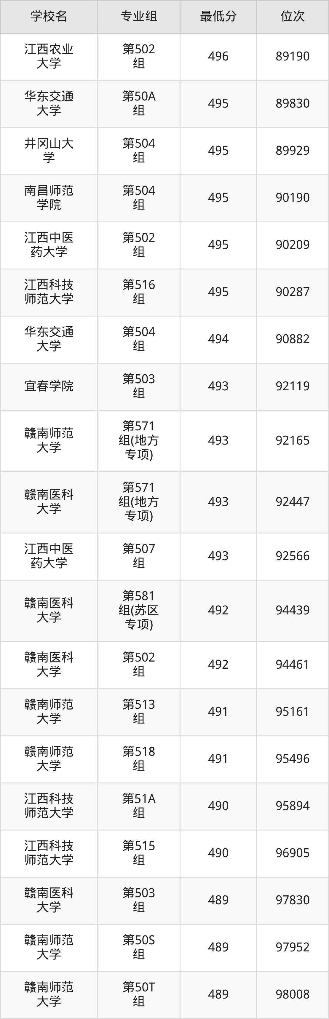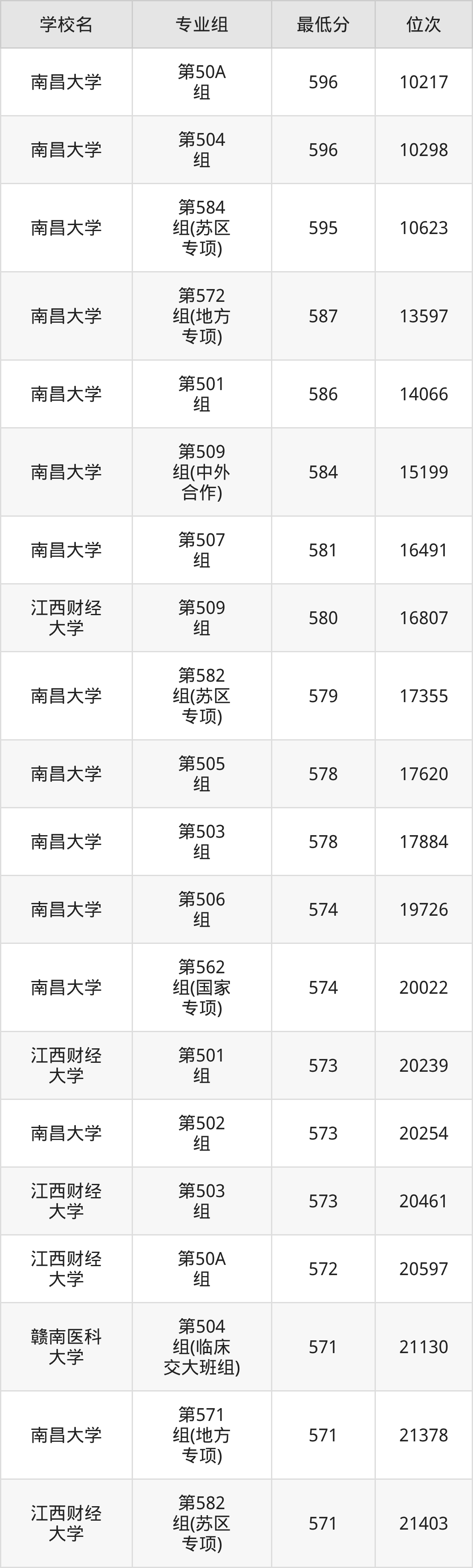 (6)赣南医科大学:2025年公办本科分数线485分到571分,位次区间是102444名到21130名,招生专业组有8个,最低为第505组、最高为第504组(临床交大班组)。
