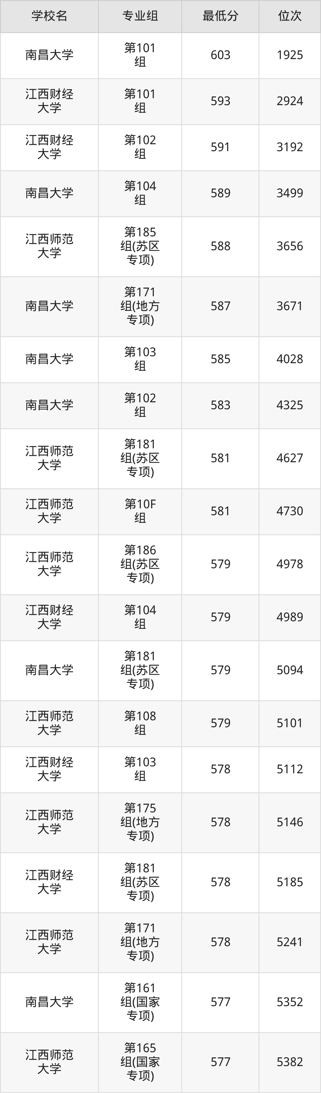 (4)南昌大学:2025年公办本科分数线574分到603分,位次区间是6011名到1925名,招生专业组有8个,最低为第172组(地方专项)、最高为第101组。