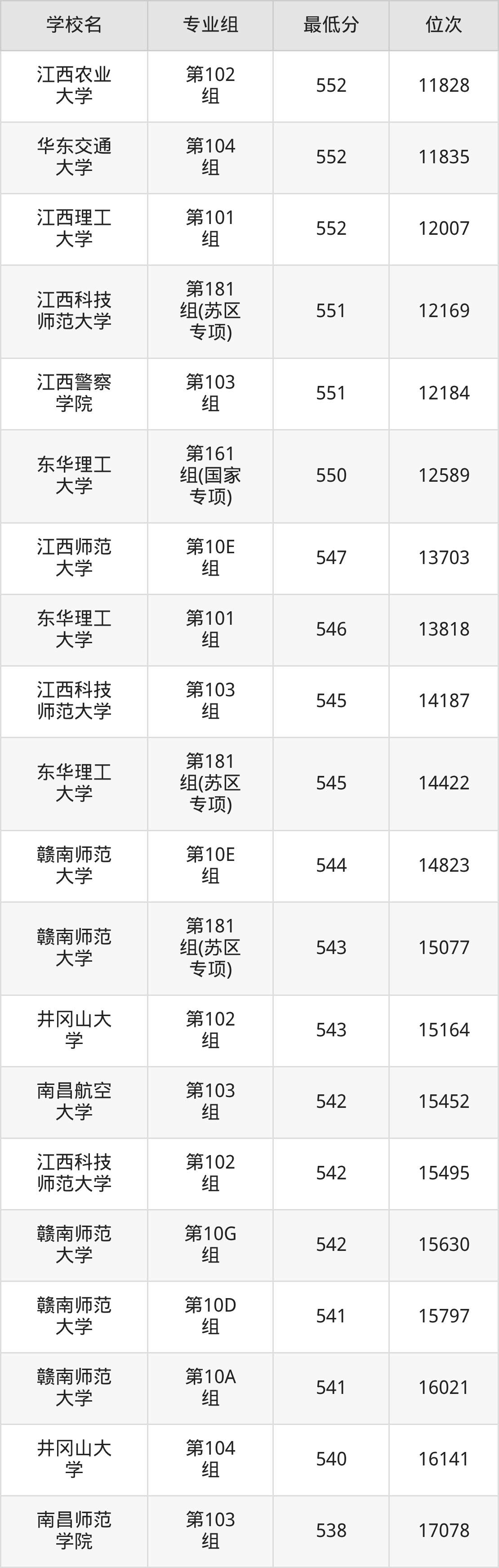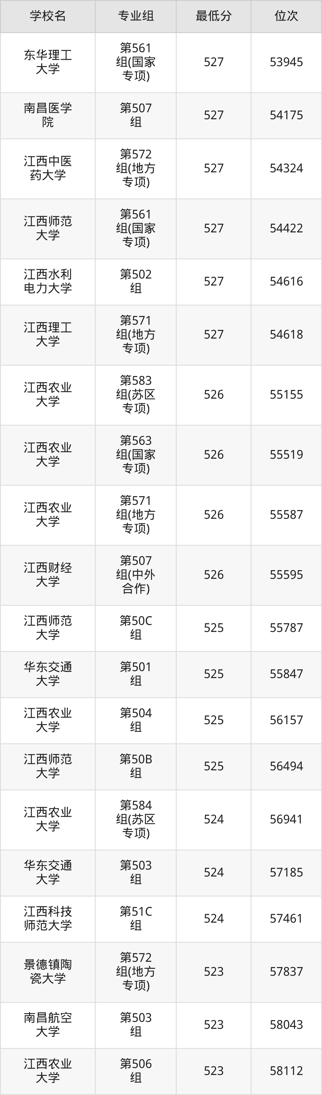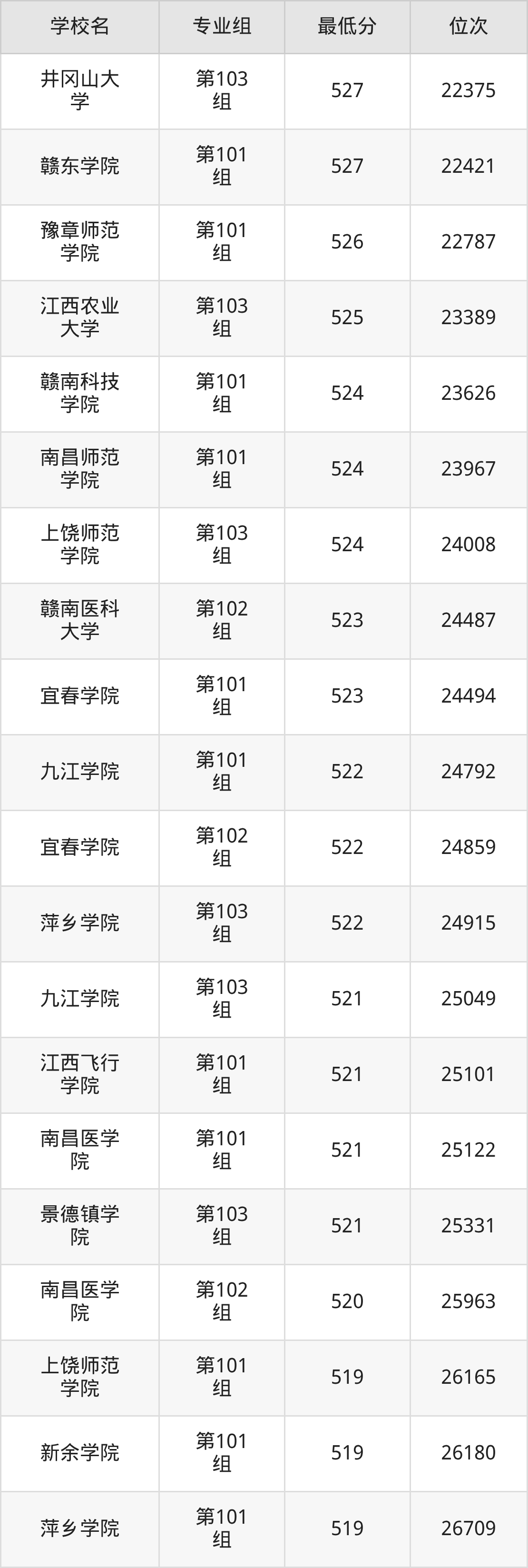 (2)赣南科技学院:2025年公办本科分数线524分,位次是23626名,招生专业组有1个,最低为第101组。