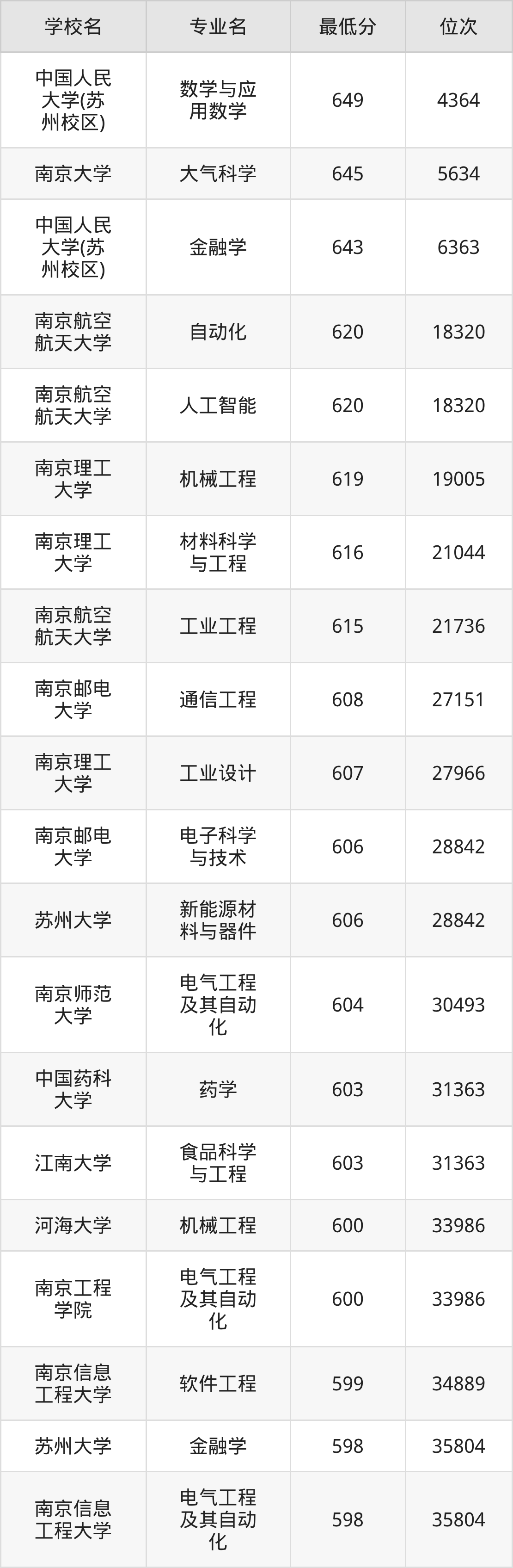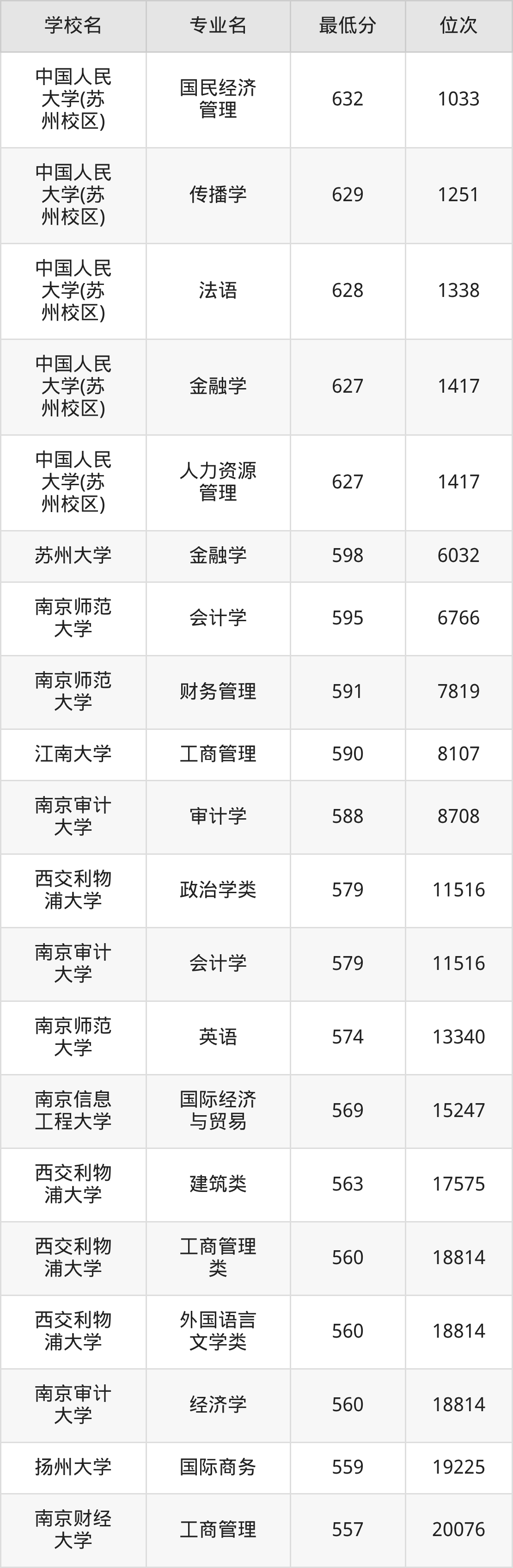 (2)苏州大学:2025年中外合作办学分数线598分,位次是6032名,招生专业有1个,最低为金融学。