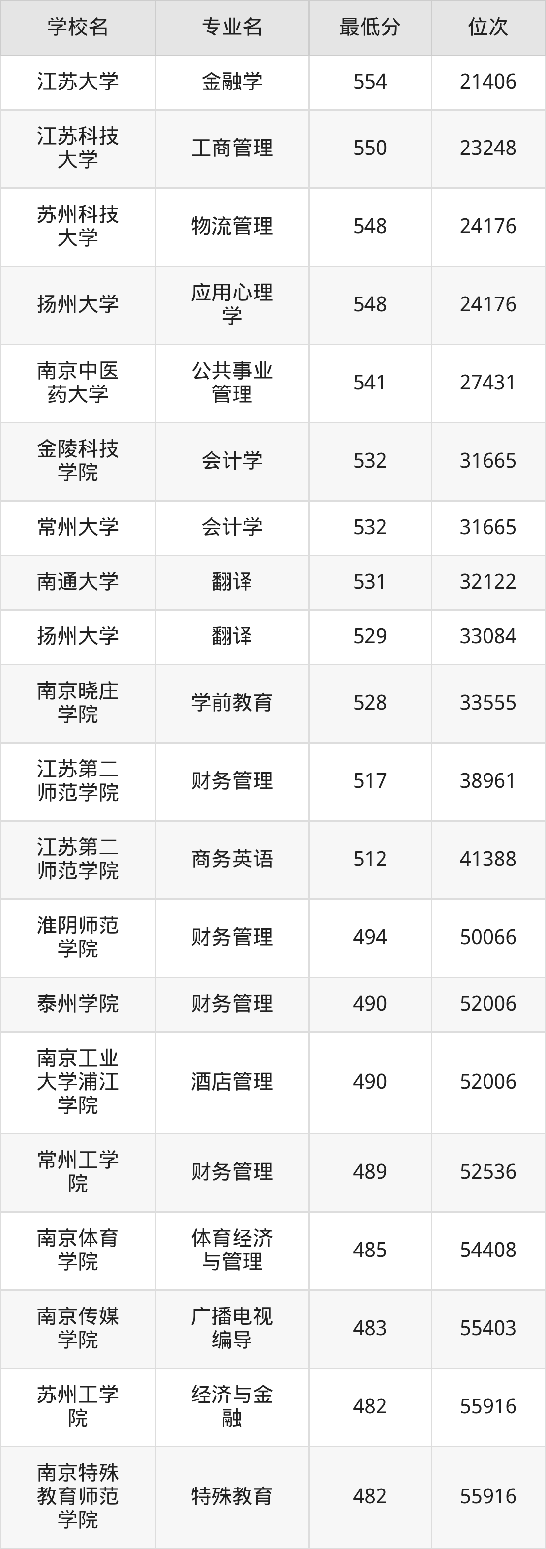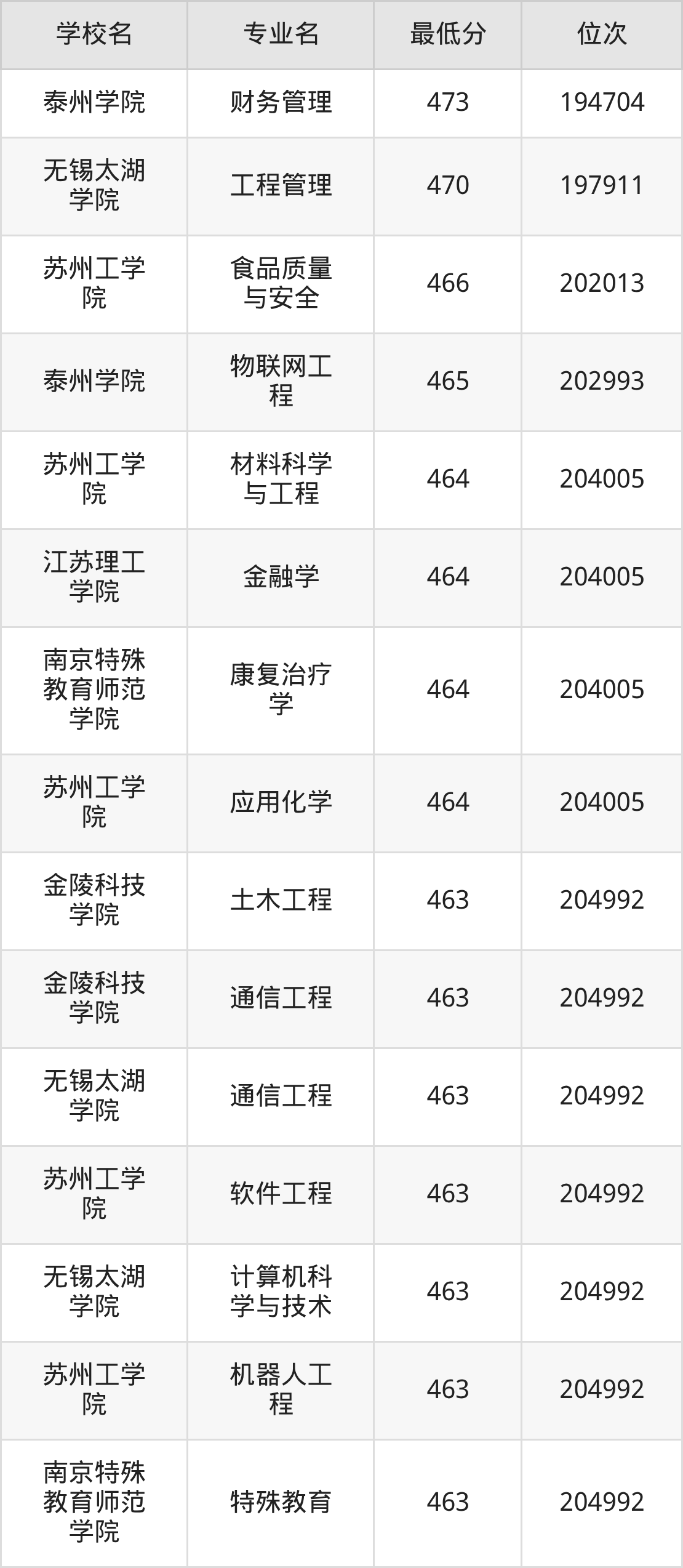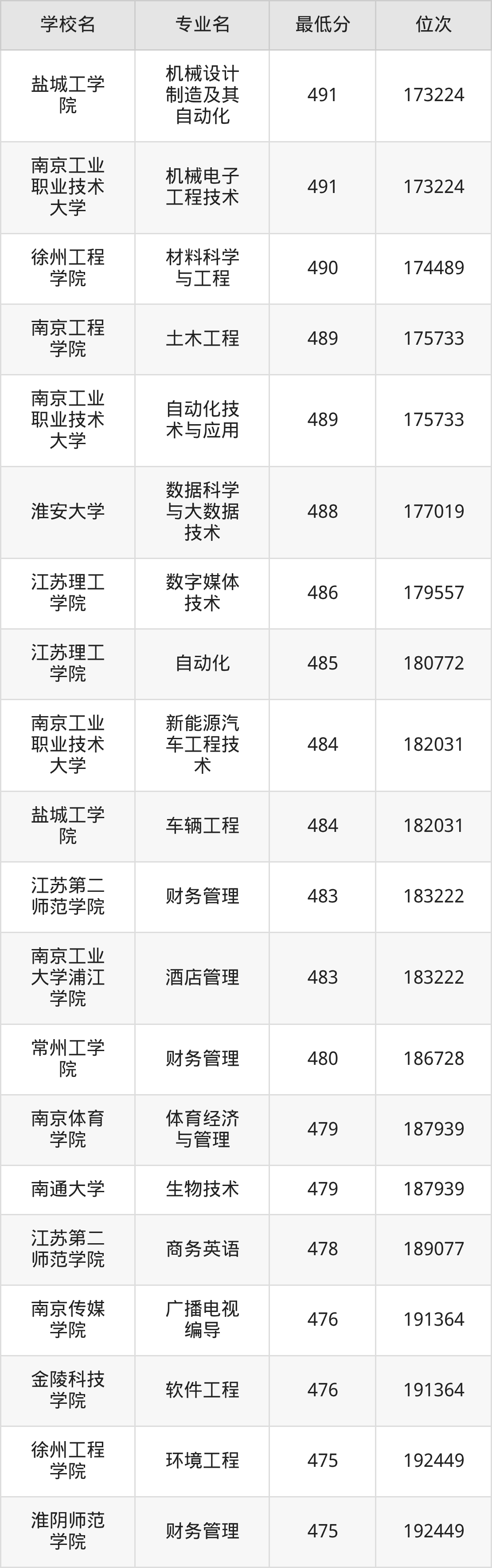 (3)南京工业大学浦江学院:2025年中外合作办学分数线483分,位次是183222名,招生专业有1个,最低为酒店管理。